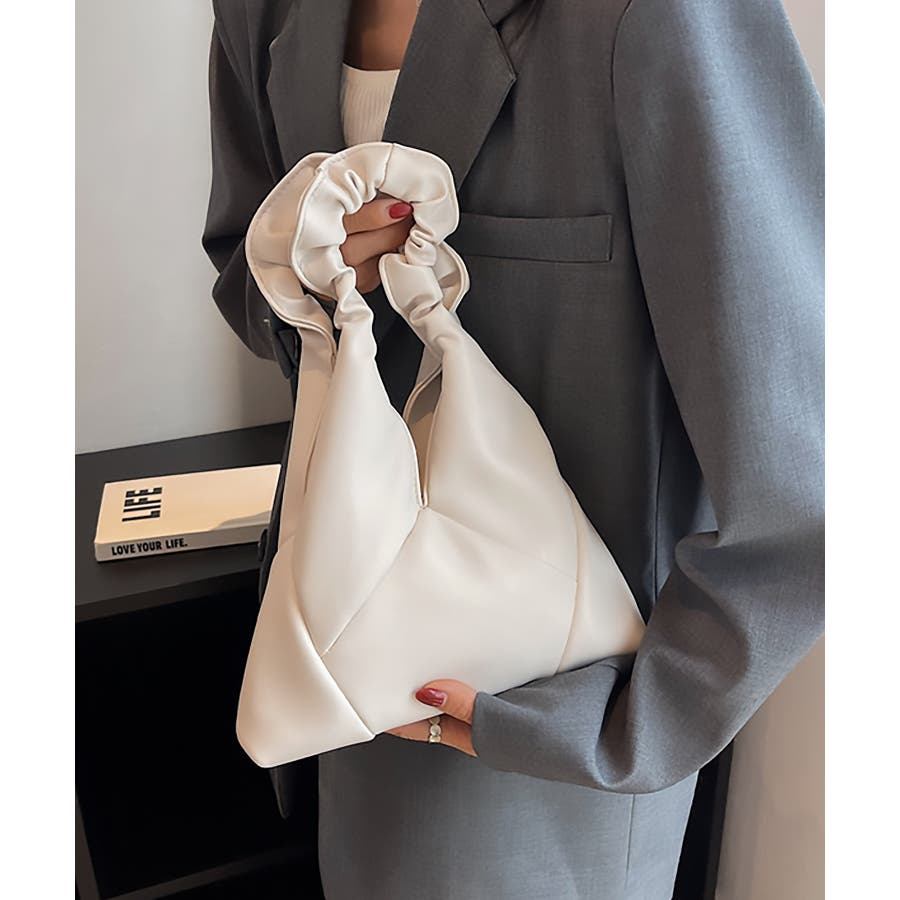 キルティングデザインを落とし込んだトライアングルバッグ。