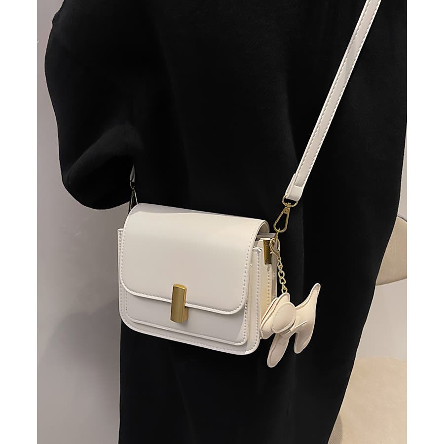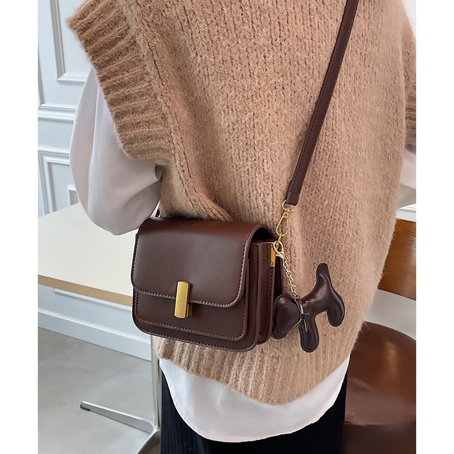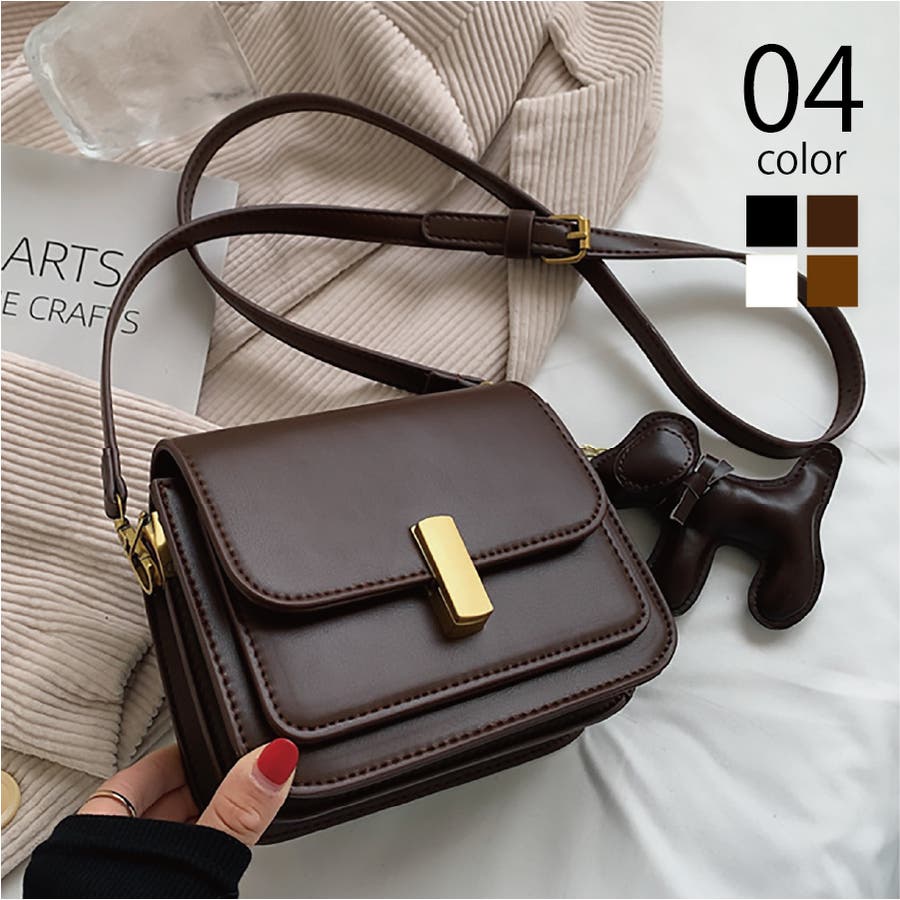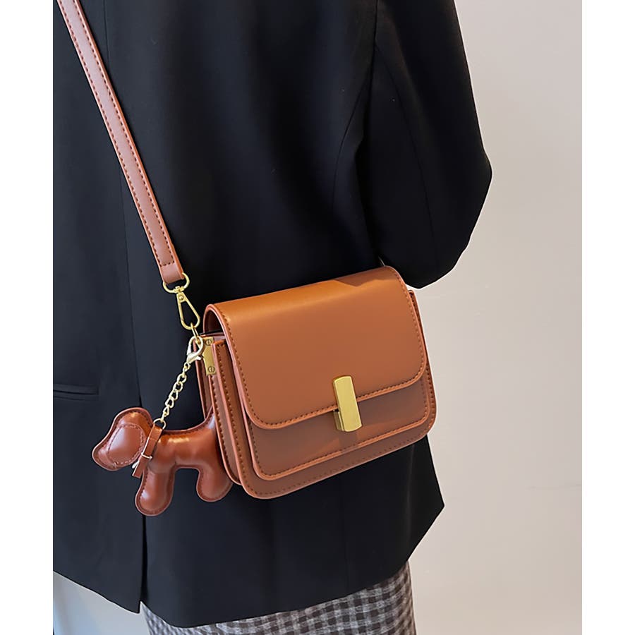 ドッグチャームがアクセントになったアクセ感覚で身につけられるスクエアミニバッグ。