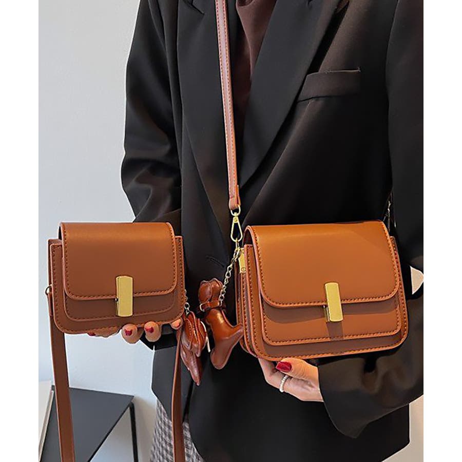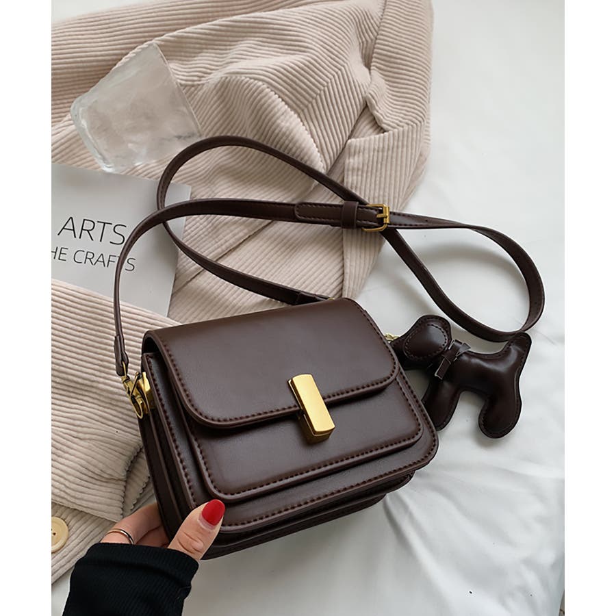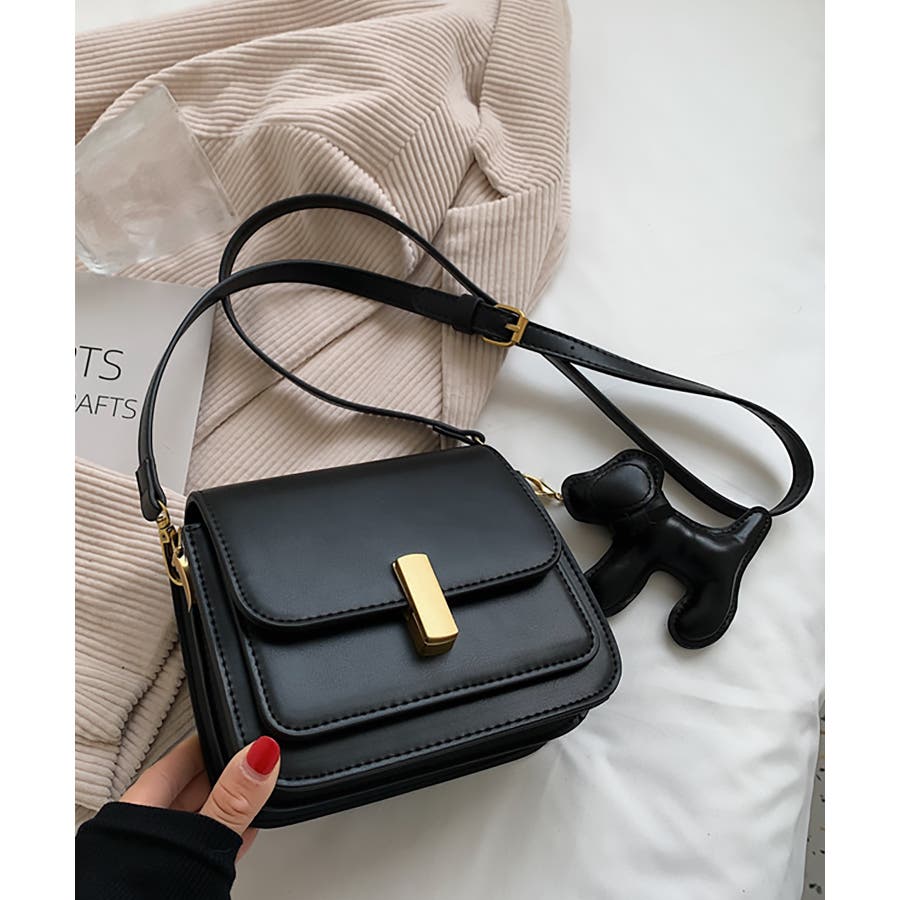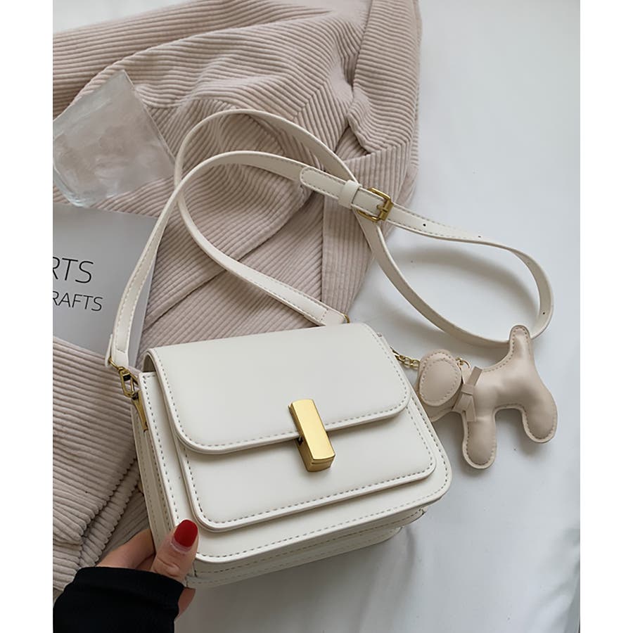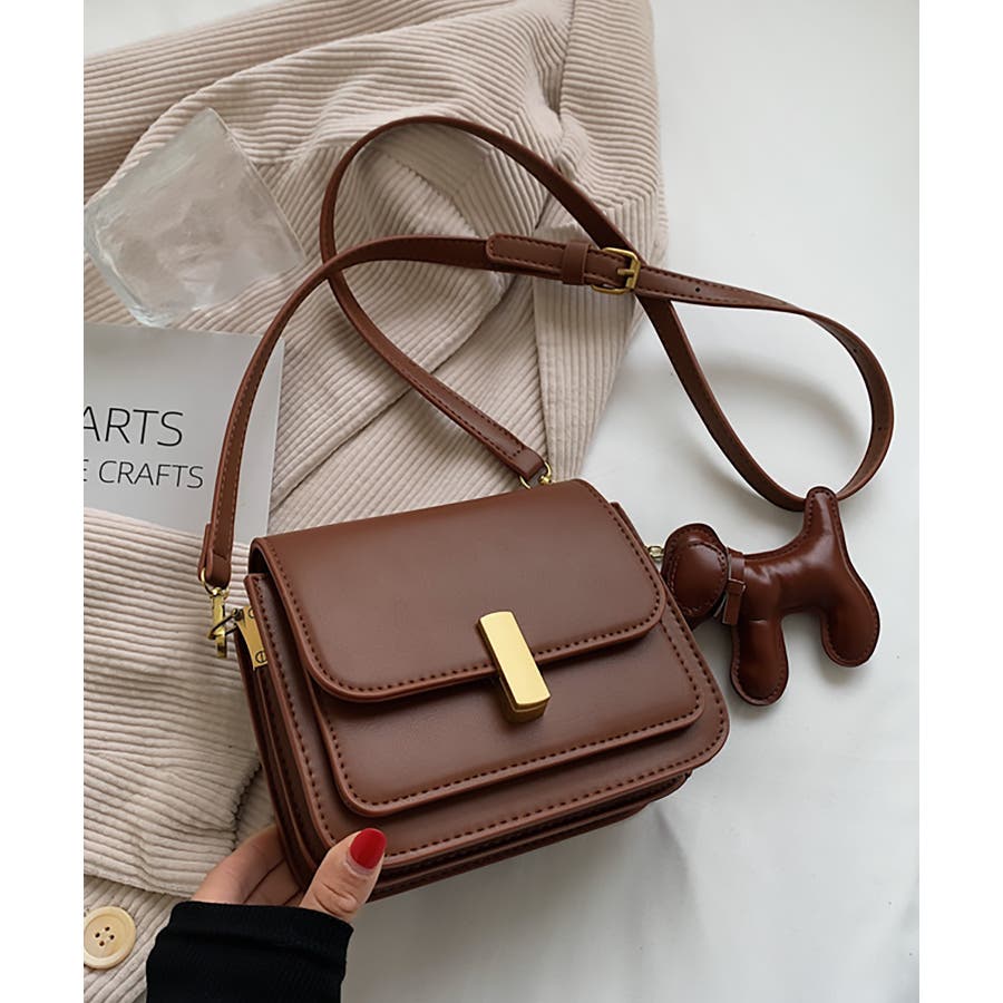ドッグチャームがアクセントになったアクセ感覚で身につけられるスクエアミニバッグ。