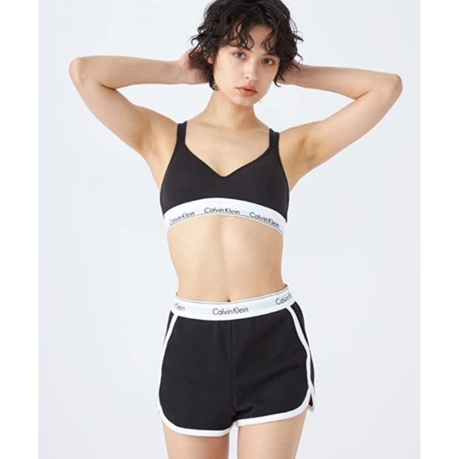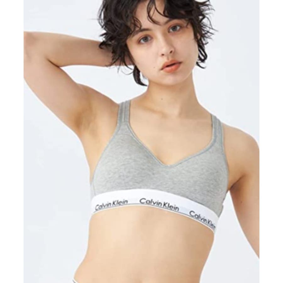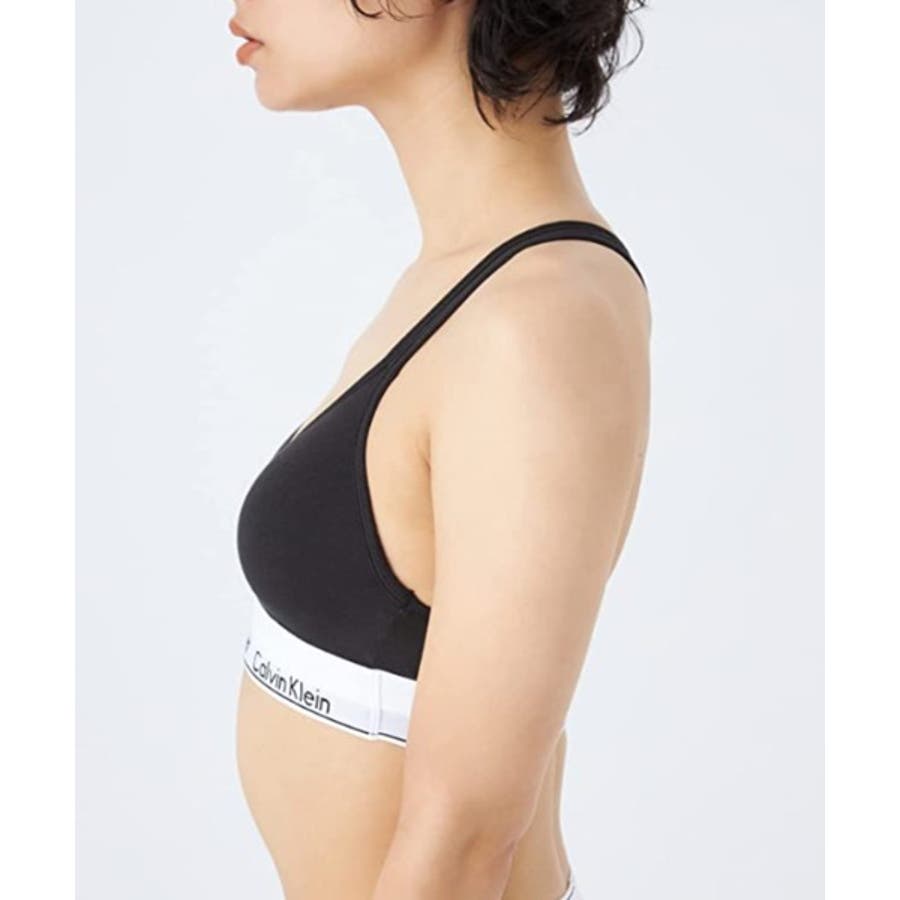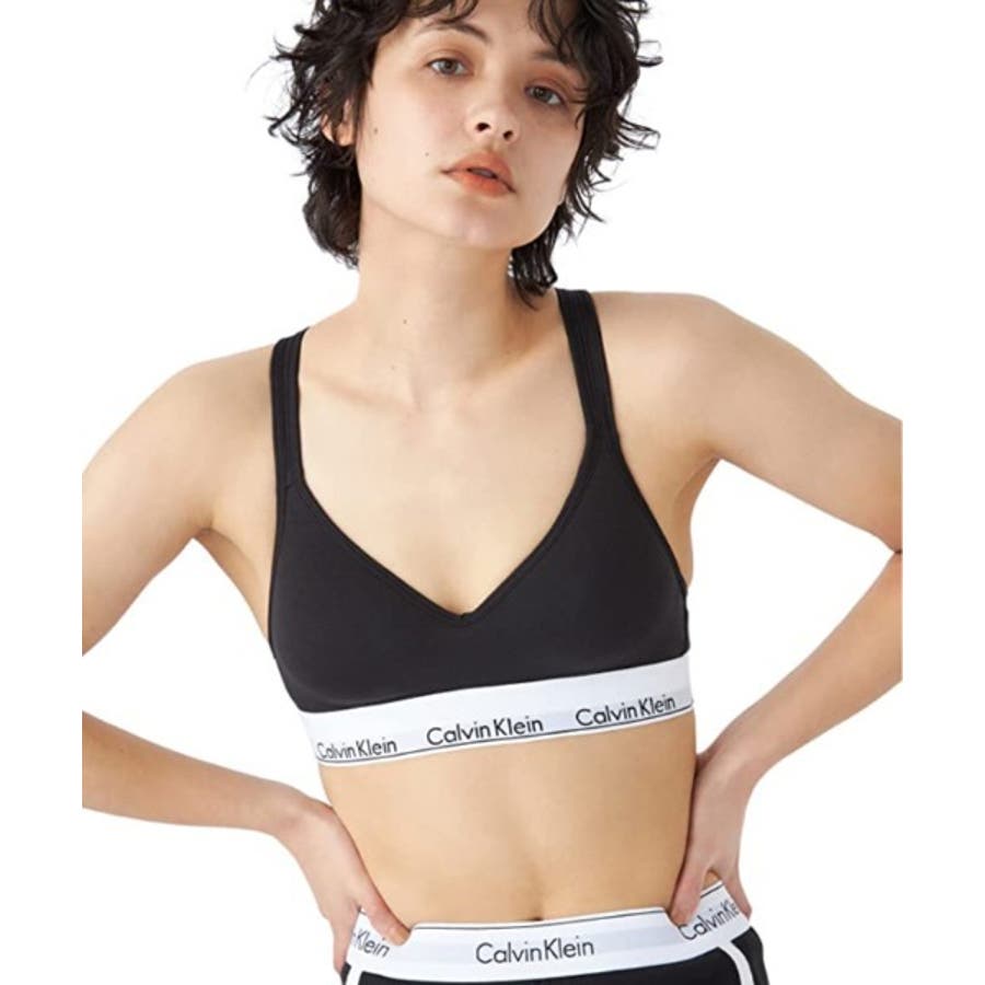 リフトアップ効果のある薄地の裏地付きカップ、クロスバックストラップとバックのカットアウトが特徴のCalvin Klein ブラレット。