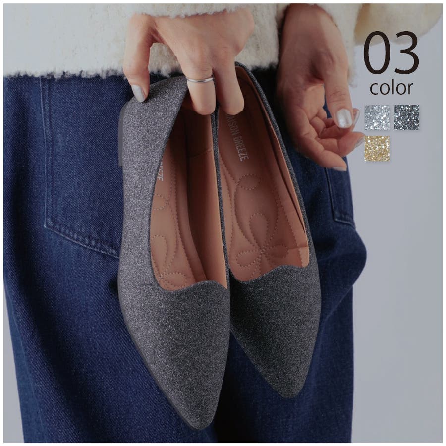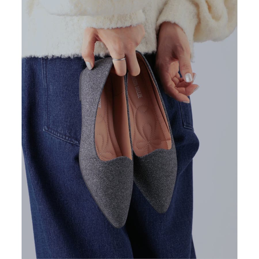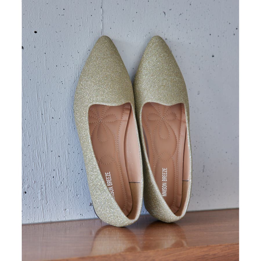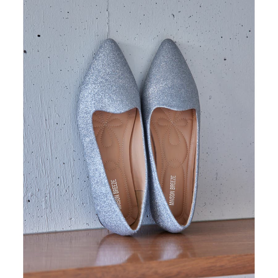 カジュアルダウンした着用もおすすめのトレンド感あふれるグリッターラメのフラットパンプスが入荷◎