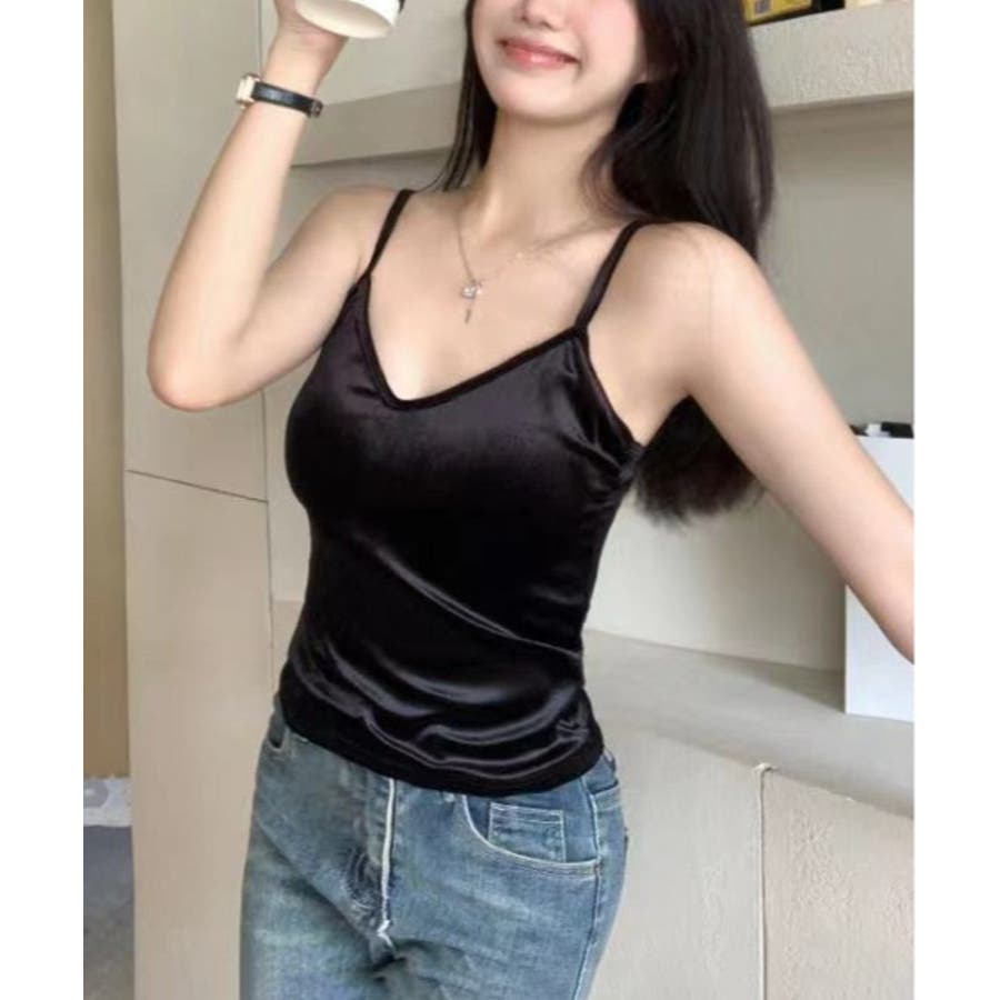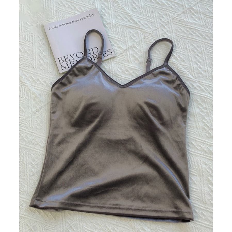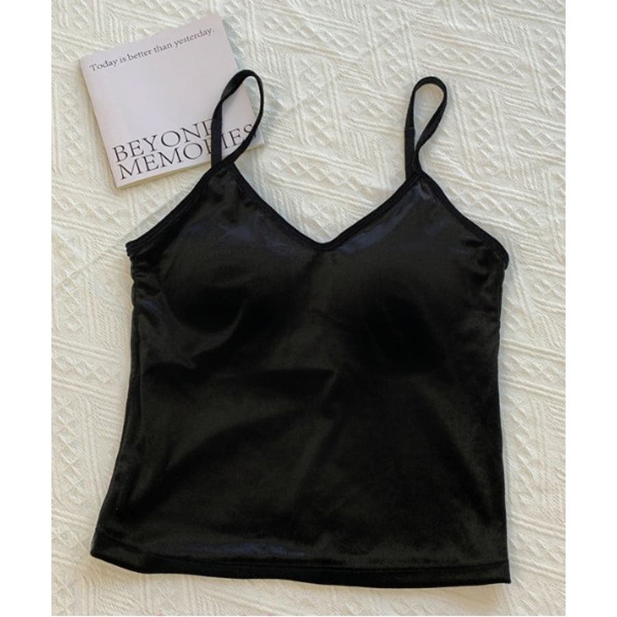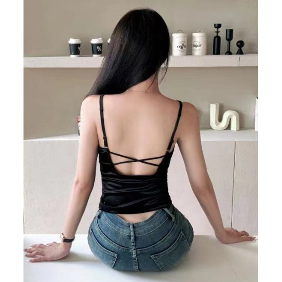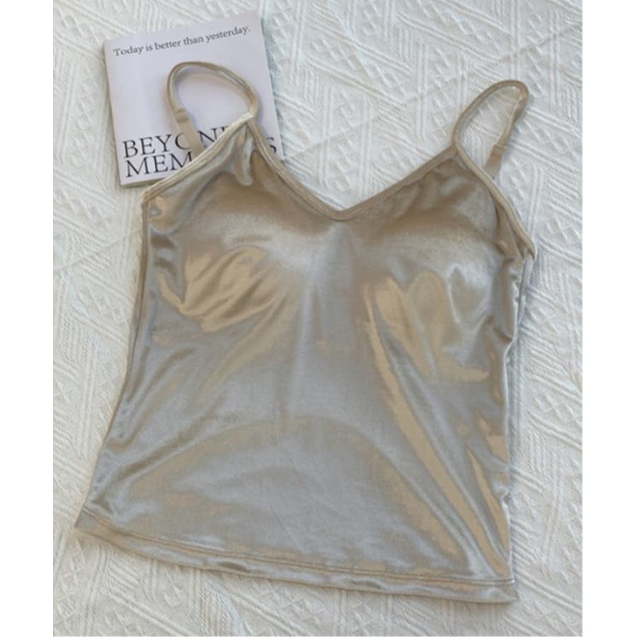 1枚で着られる!便利なカップ付きサテン調のキャミソールインナー