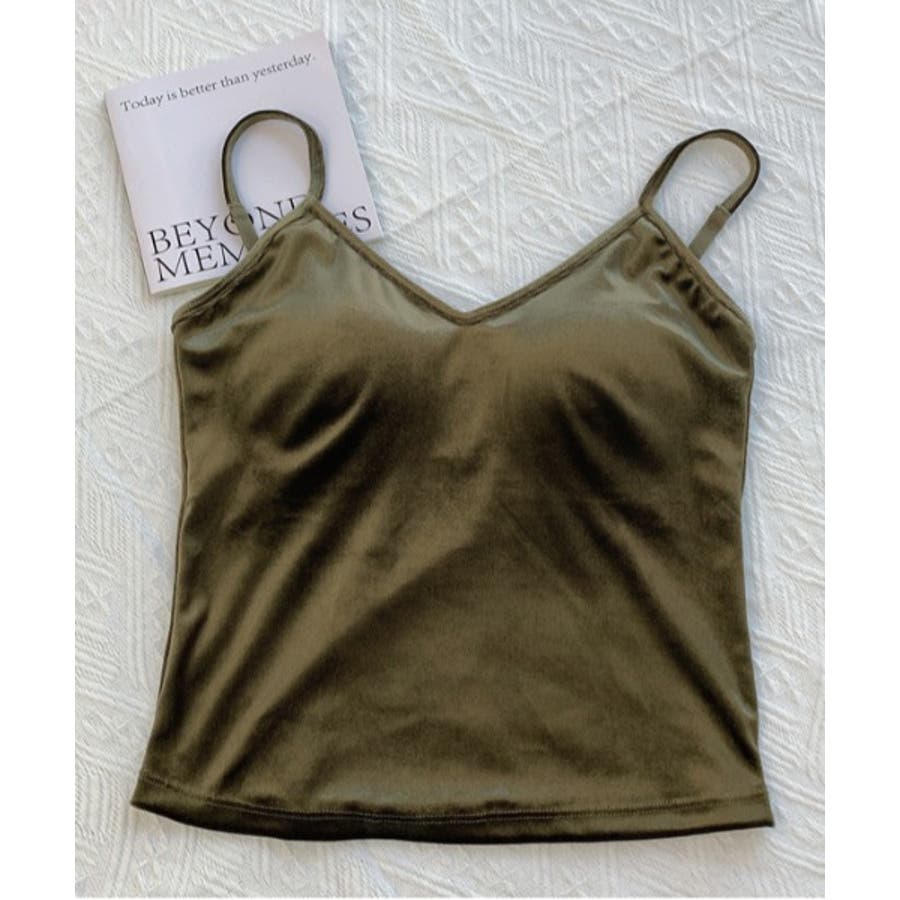 ブラジャーをつけずにコレ1枚で着られる安定感あるカップ付きキャミソール◎