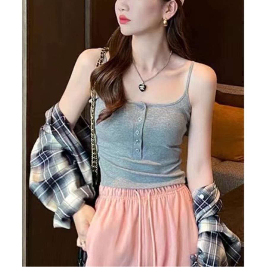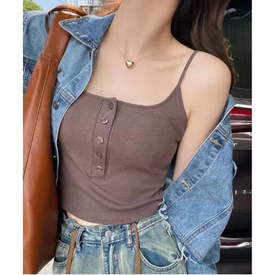 1枚で着られる!便利なカップ付きリブボタンキャミソールインナー