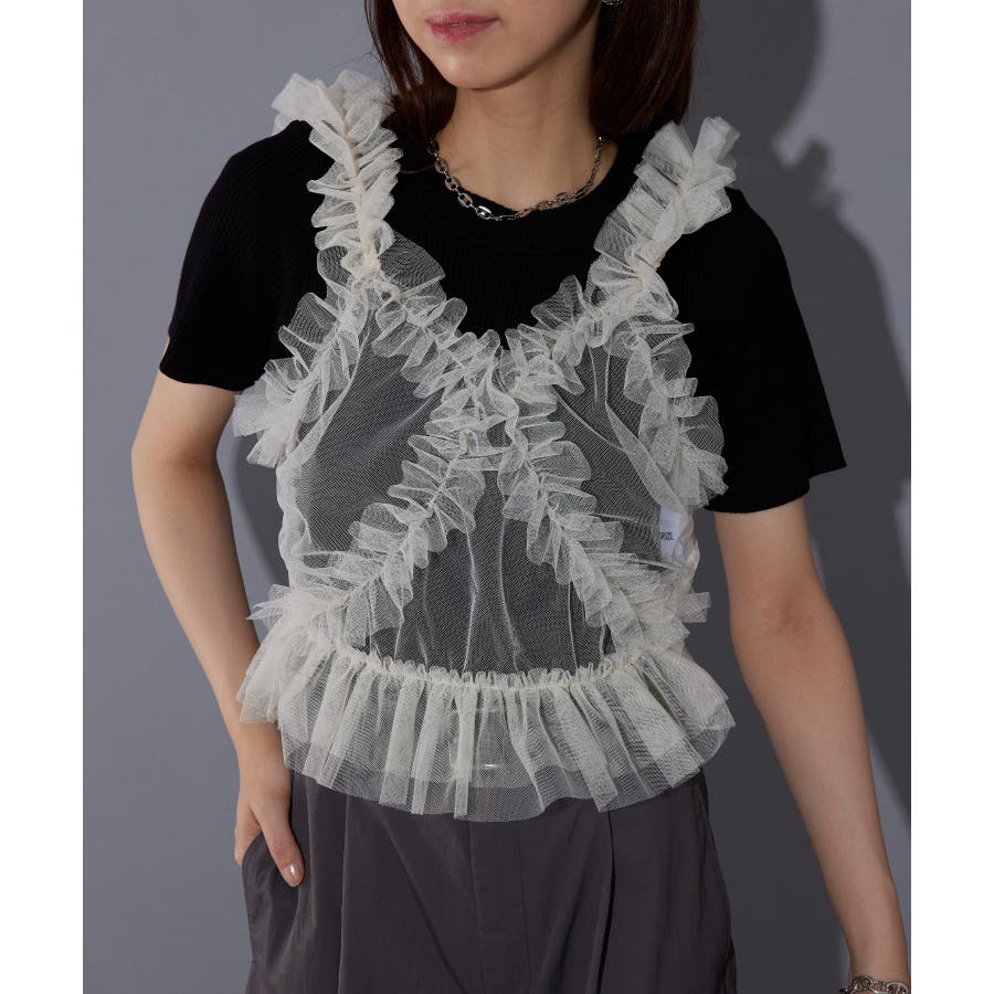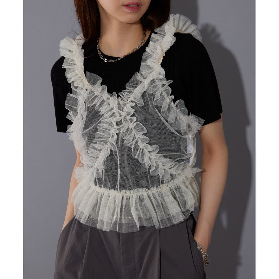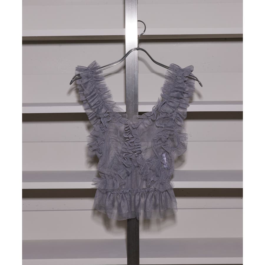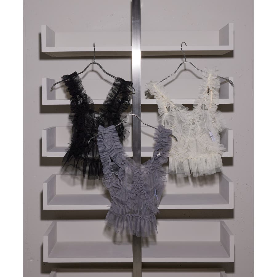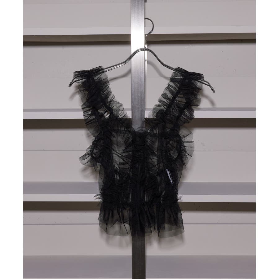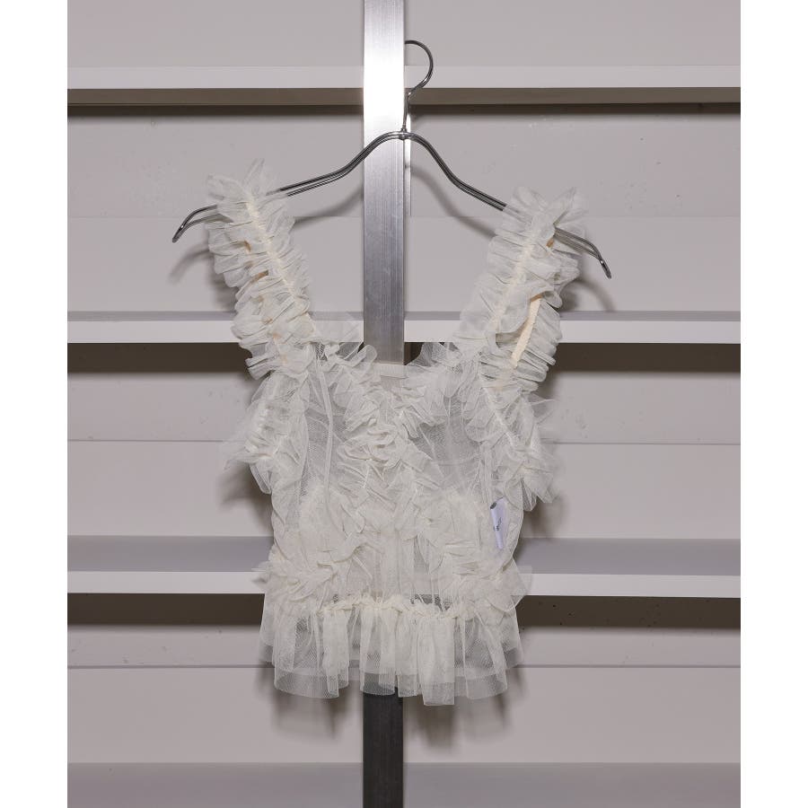 軽やかで透明感のあるチュール素材が印象的な、フリルビスチェ。