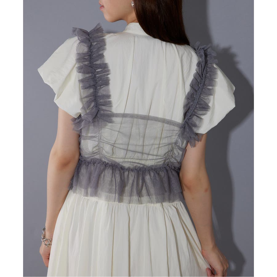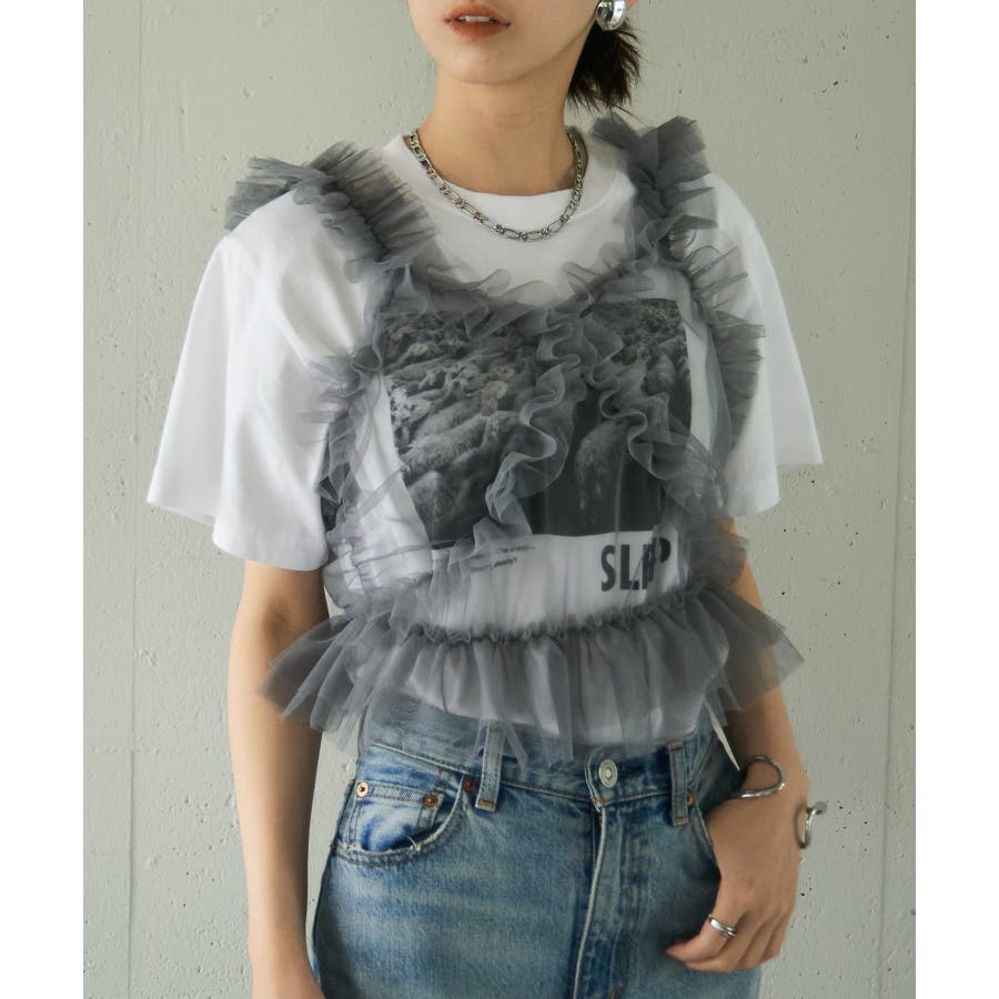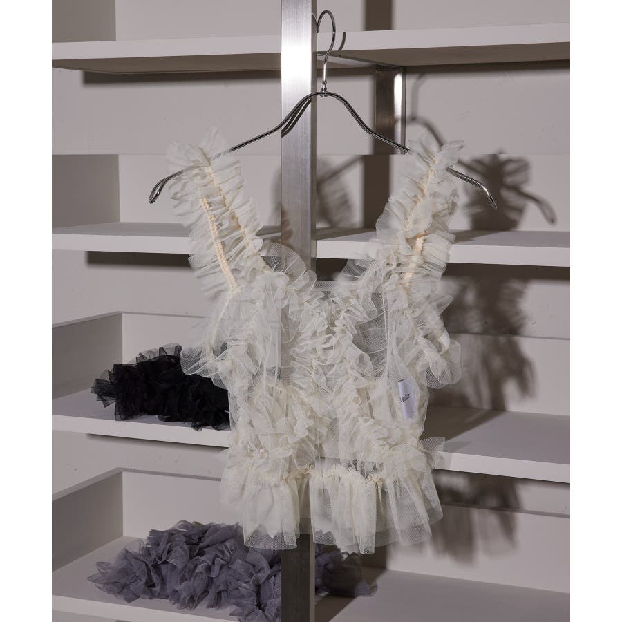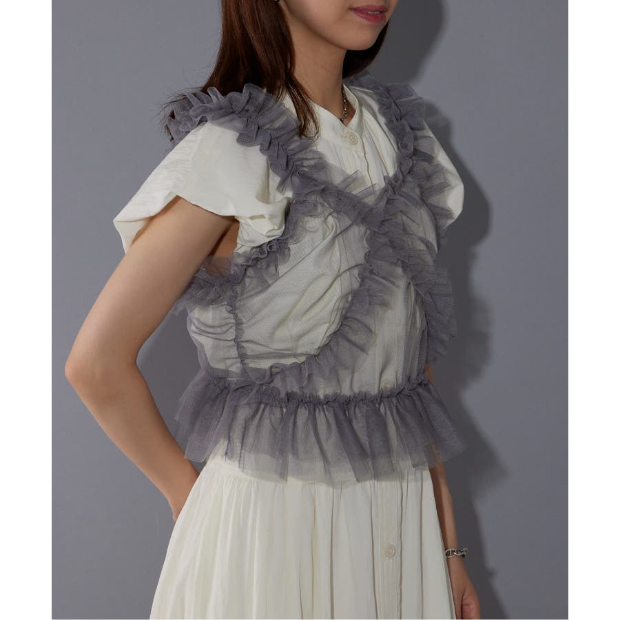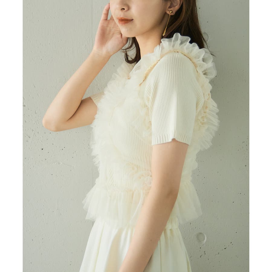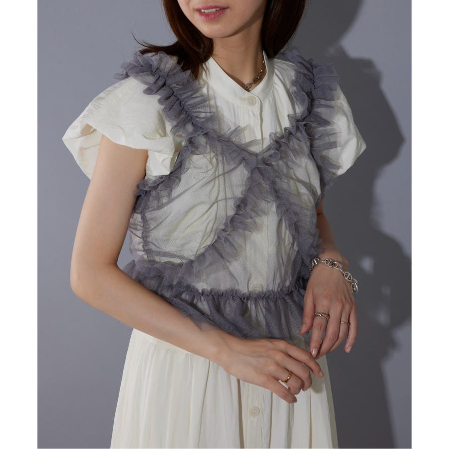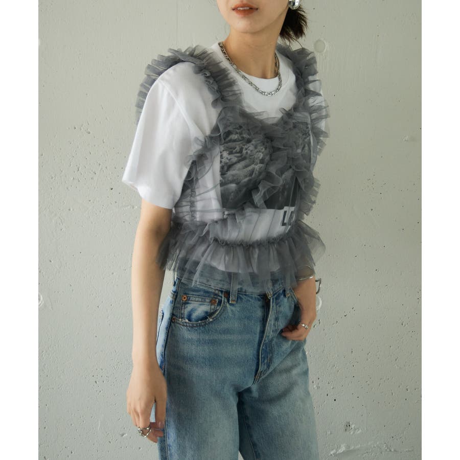 軽やかで透明感のあるチュール素材が印象的な、フリルビスチェ。