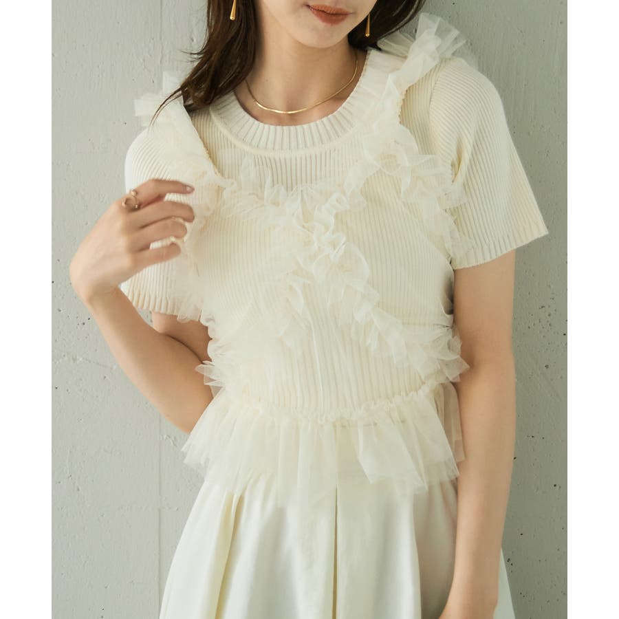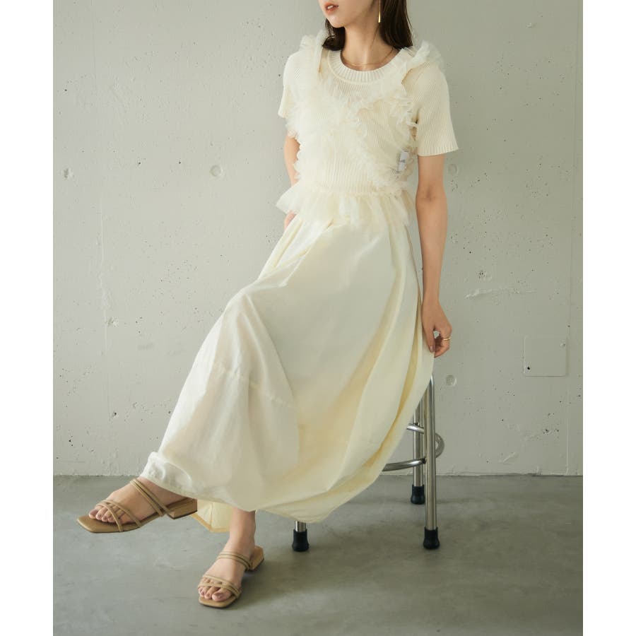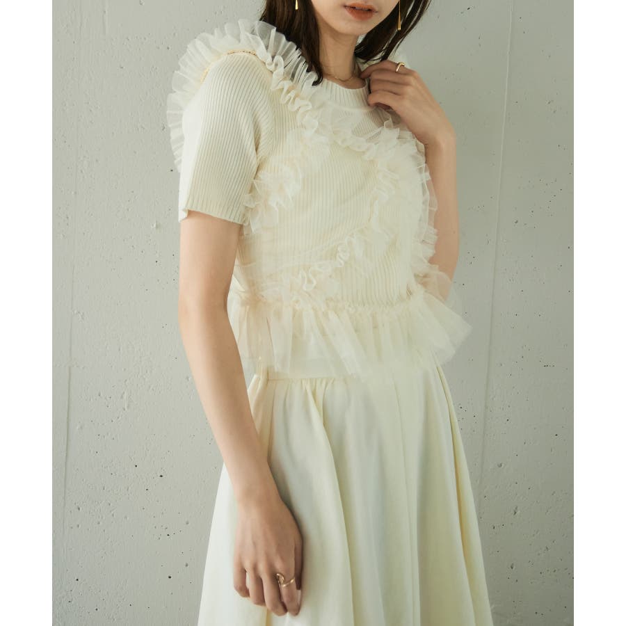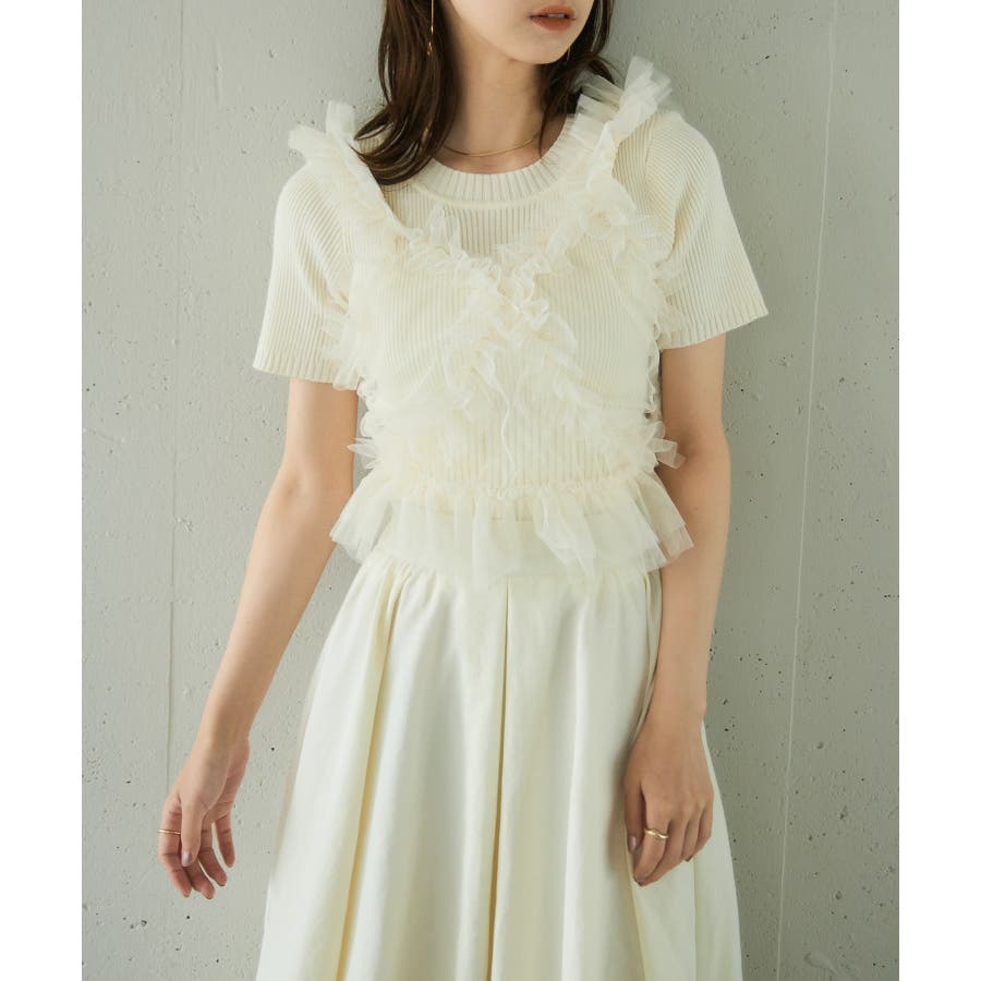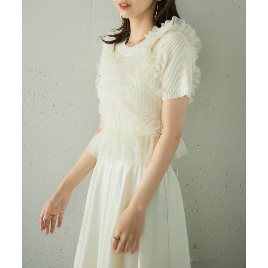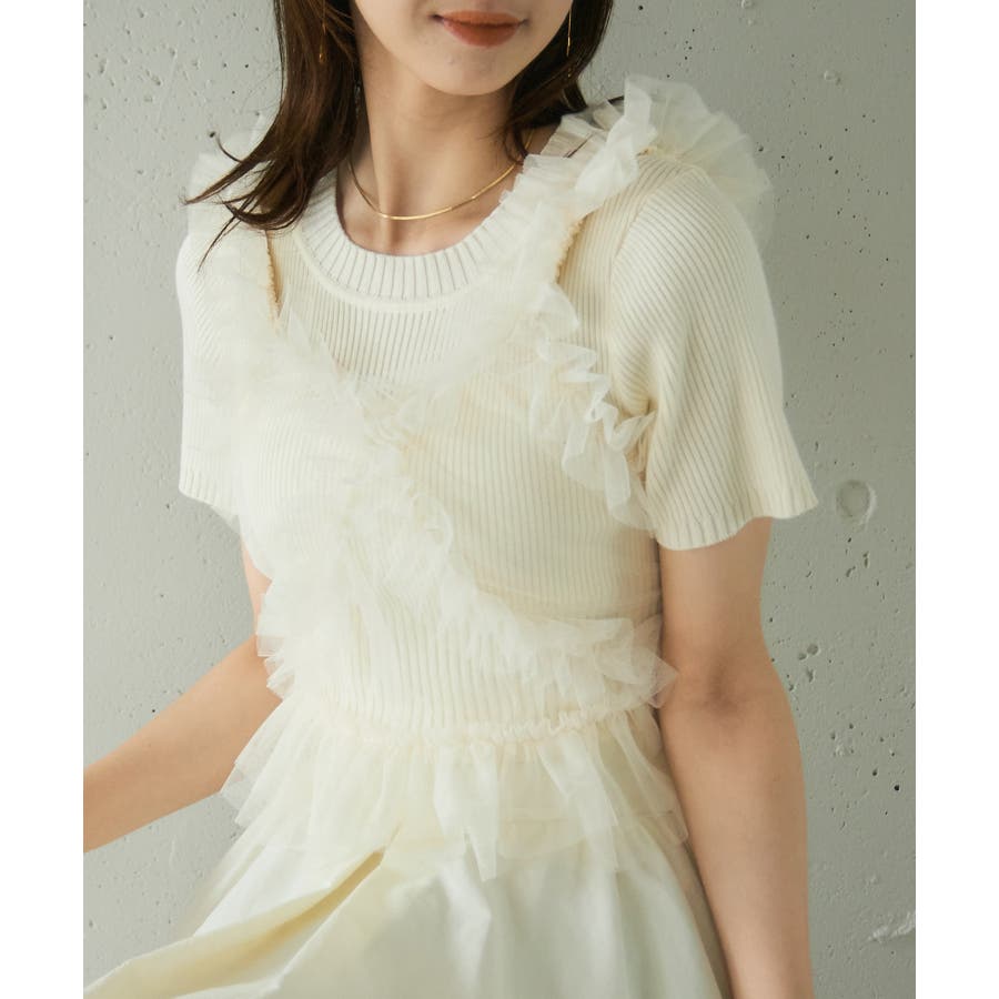 軽やかで透明感のあるチュール素材が印象的な、フリルビスチェ。