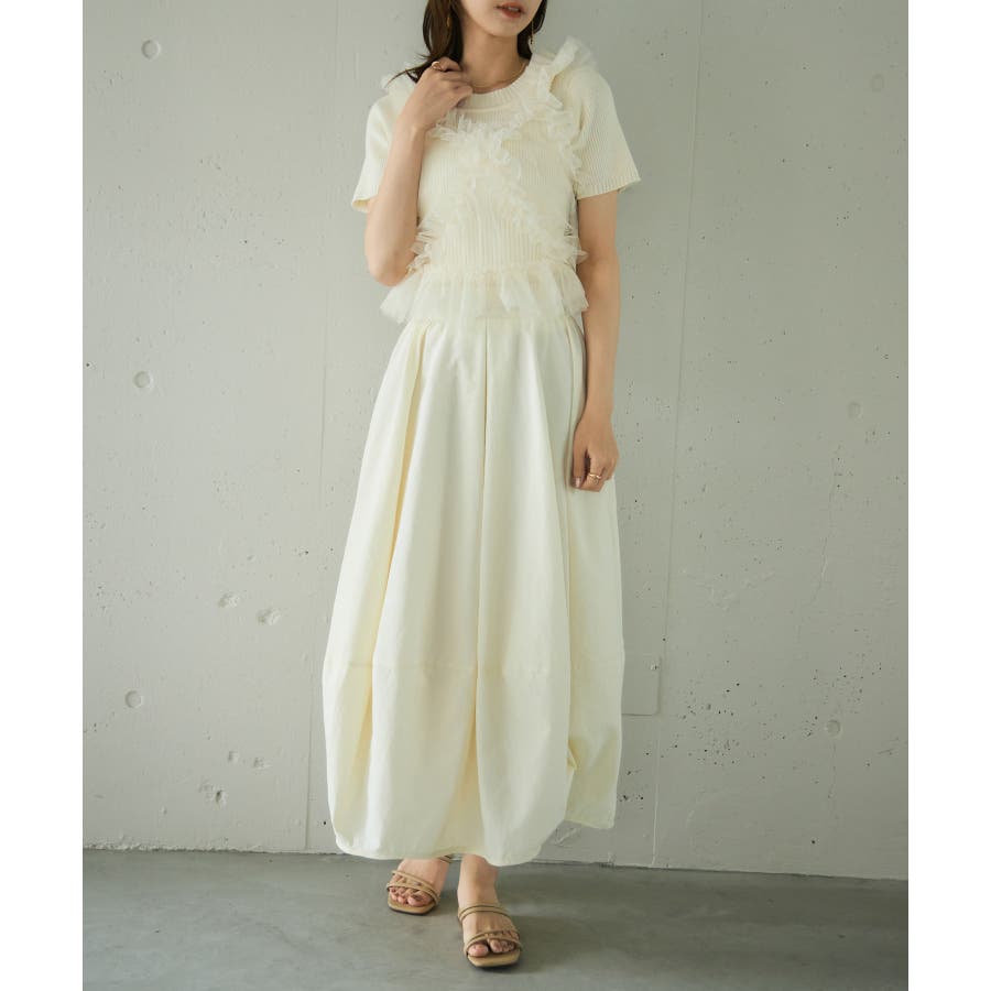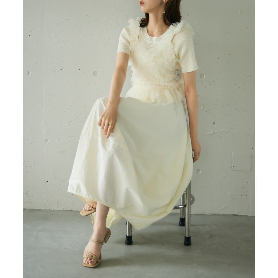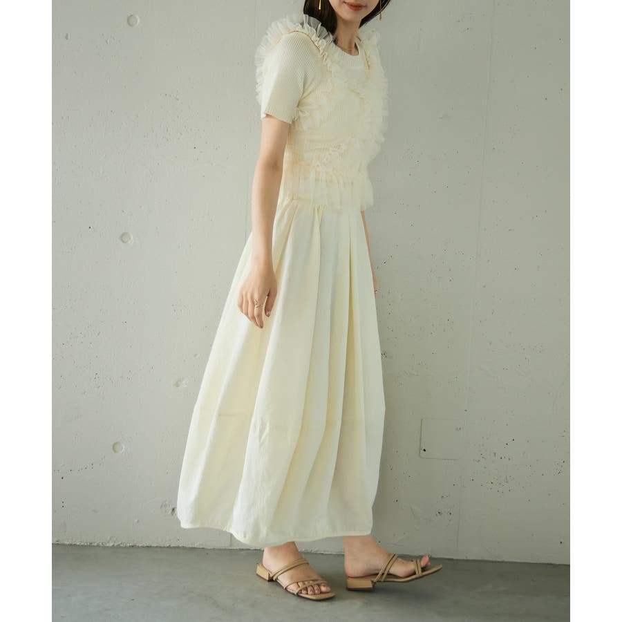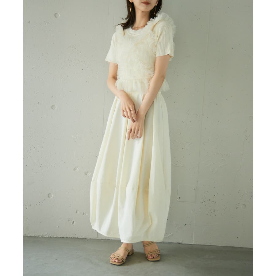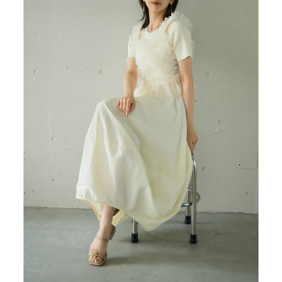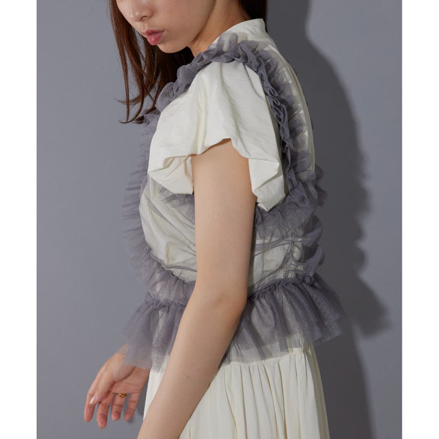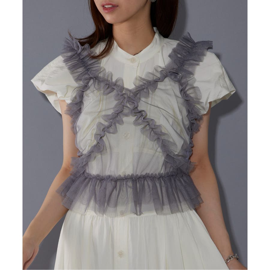 軽やかで透明感のあるチュール素材が印象的な、フリルビスチェ。