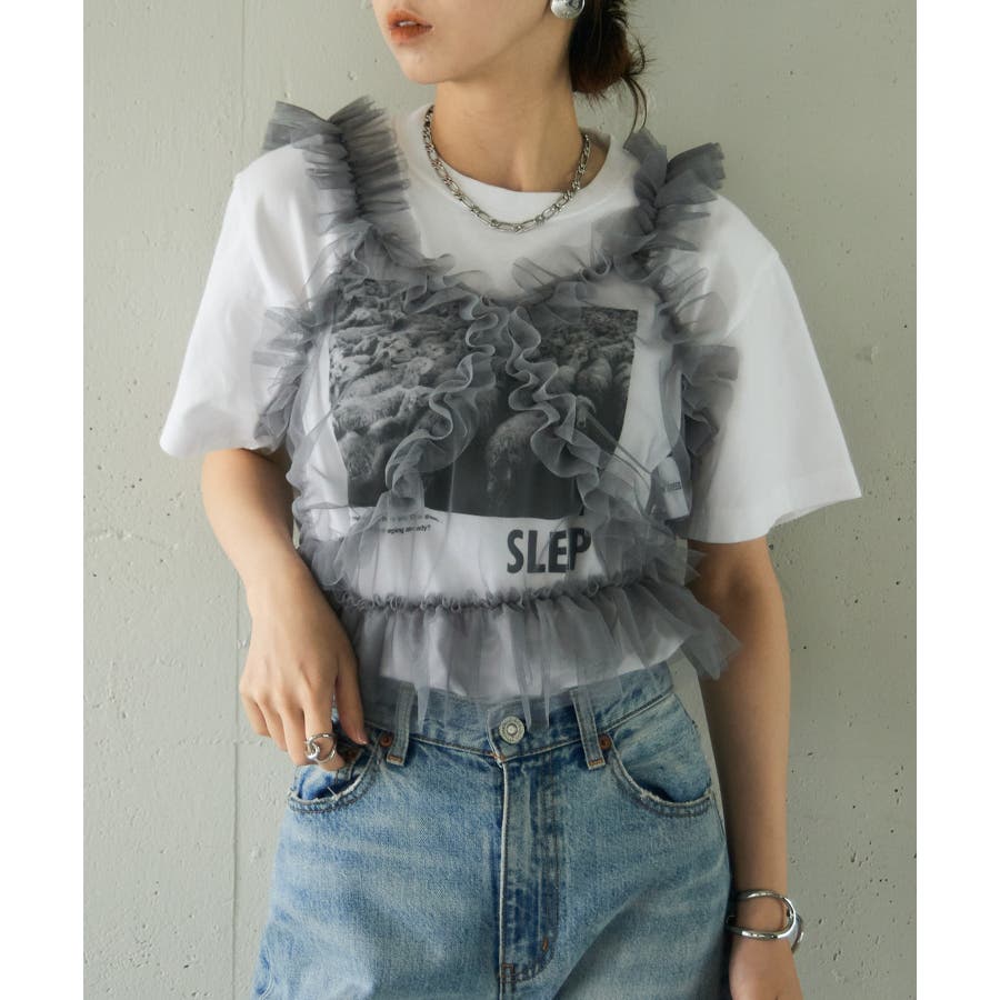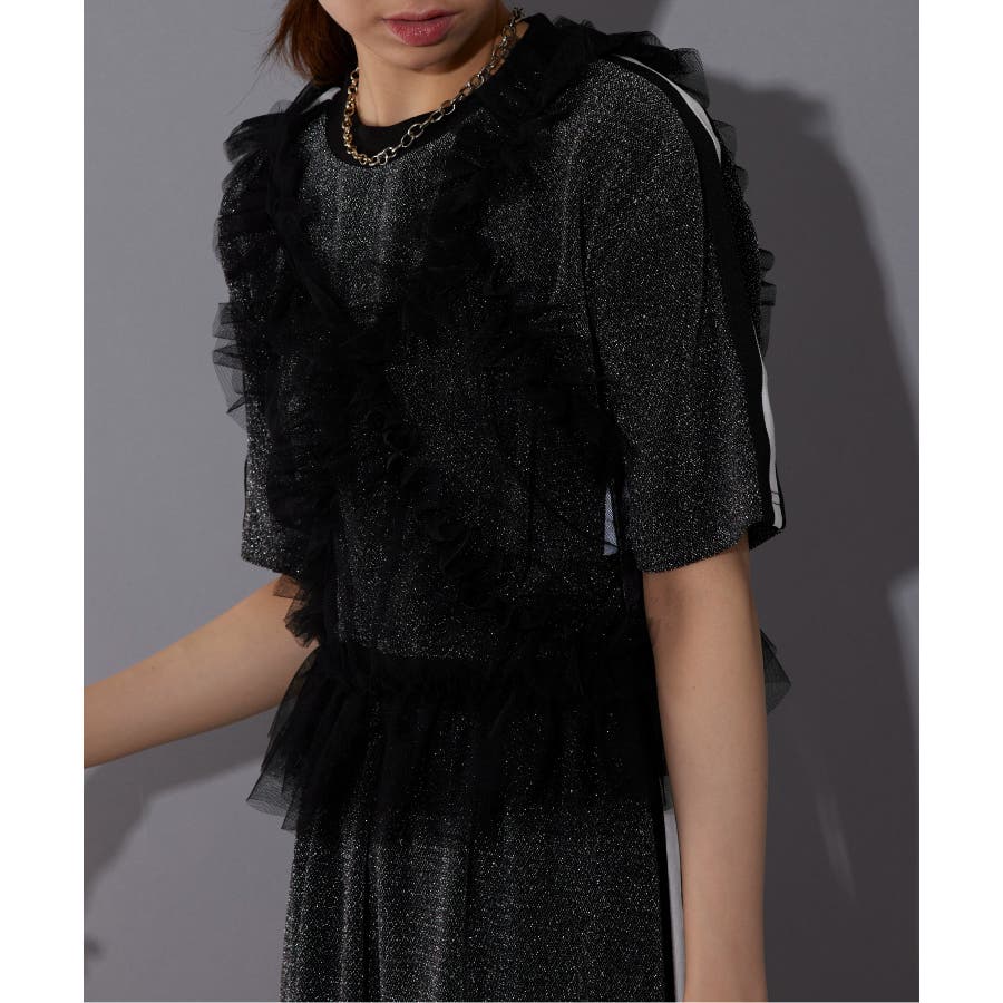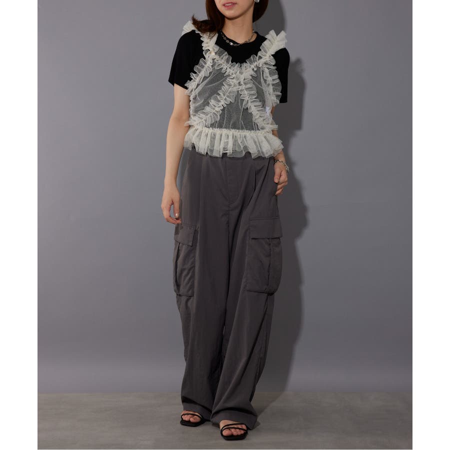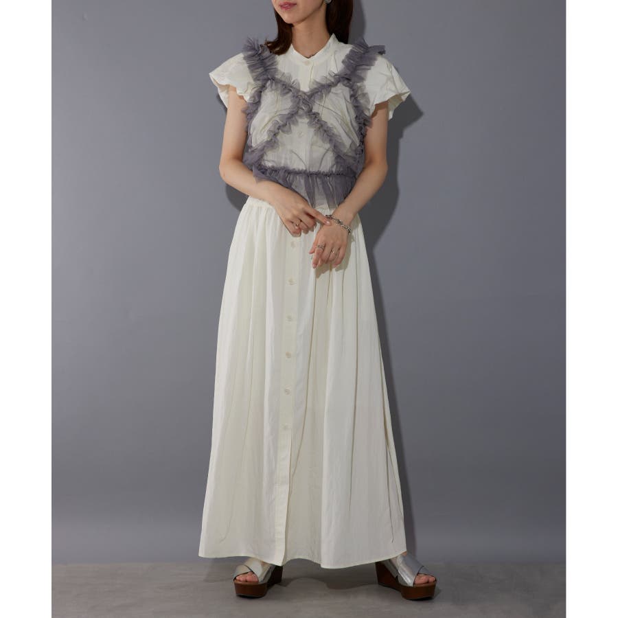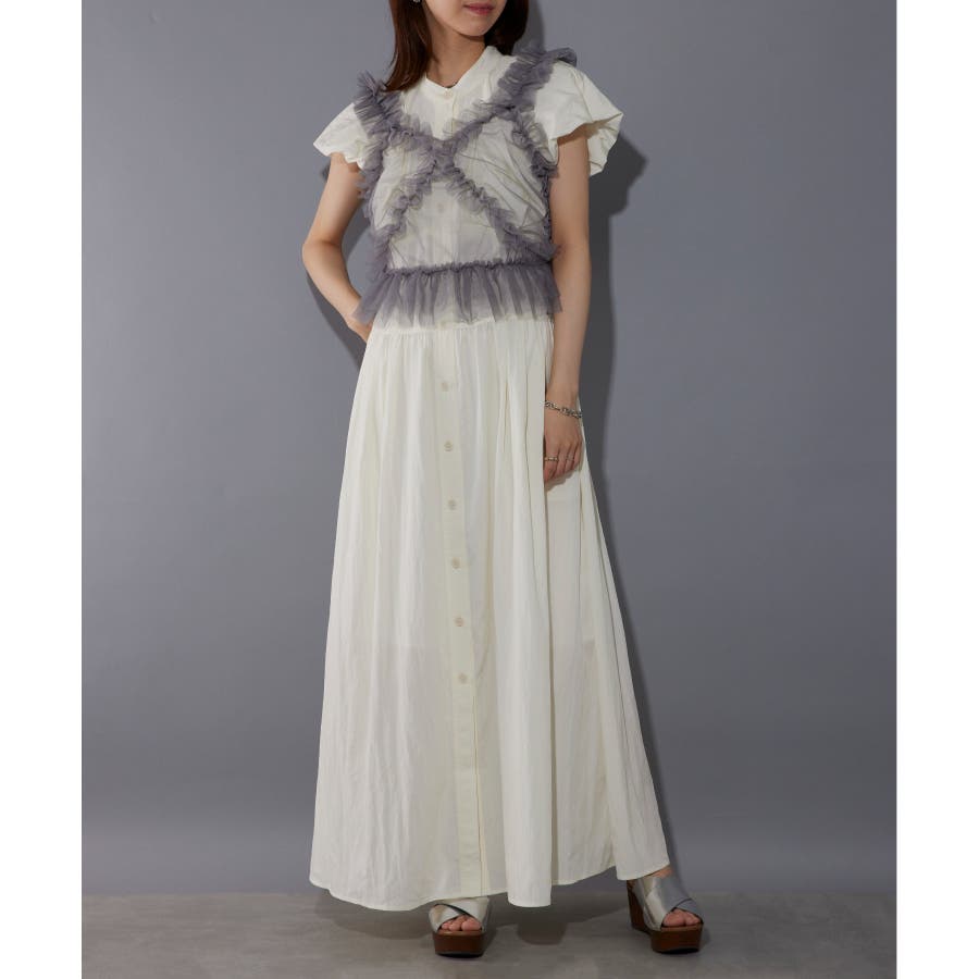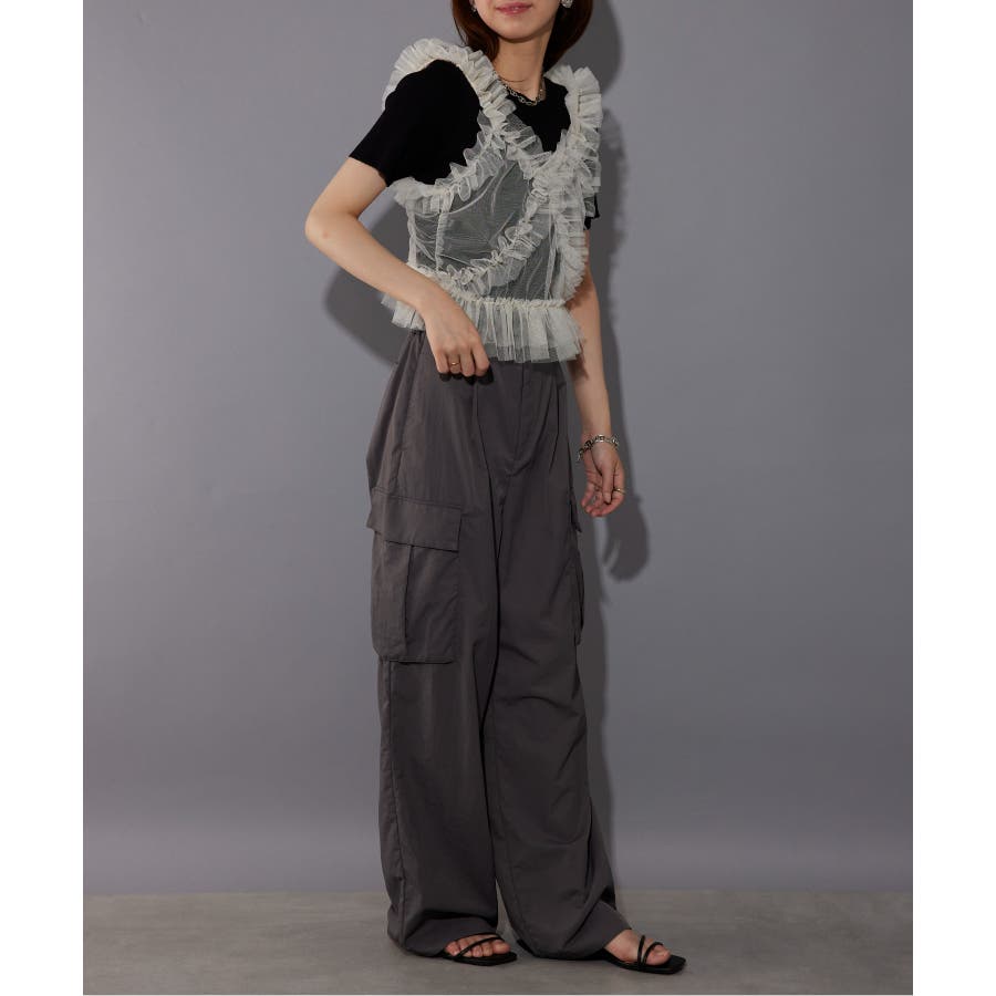 軽やかで透明感のあるチュール素材が印象的な、フリルビスチェ。