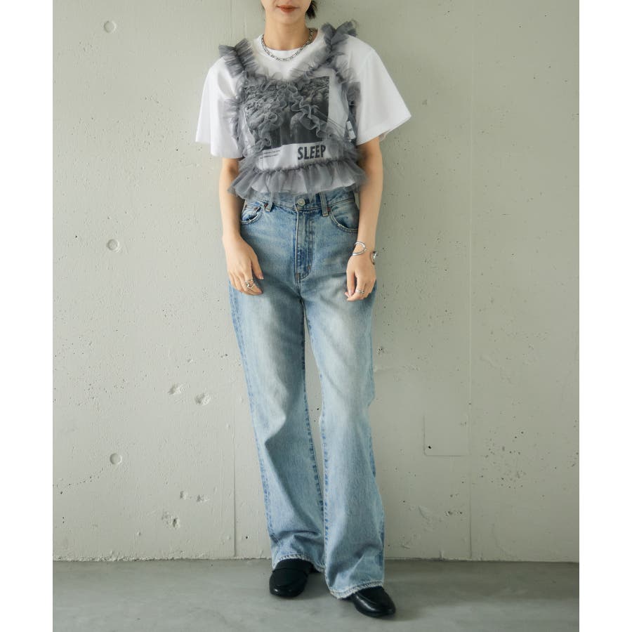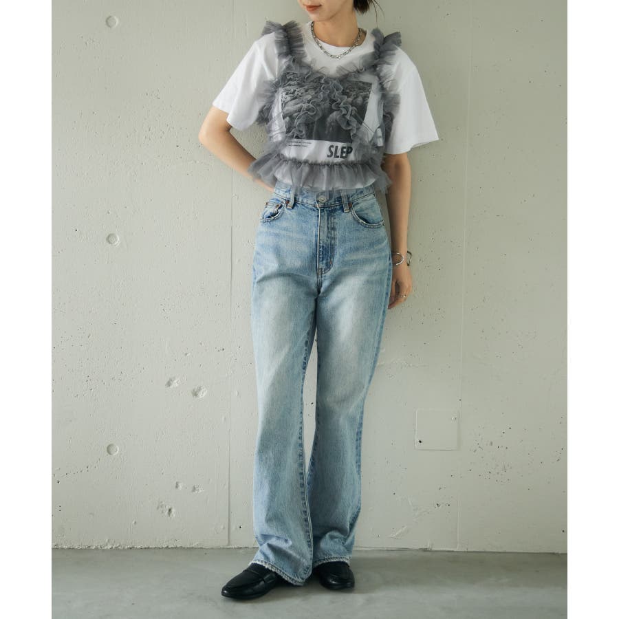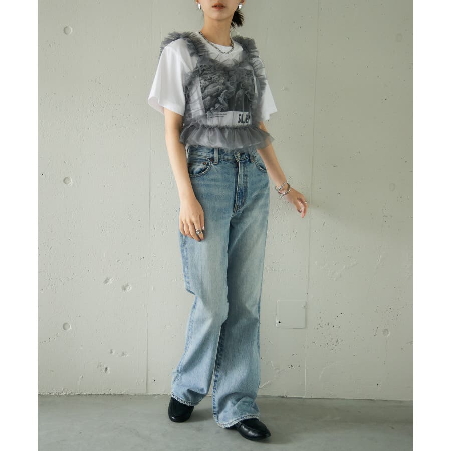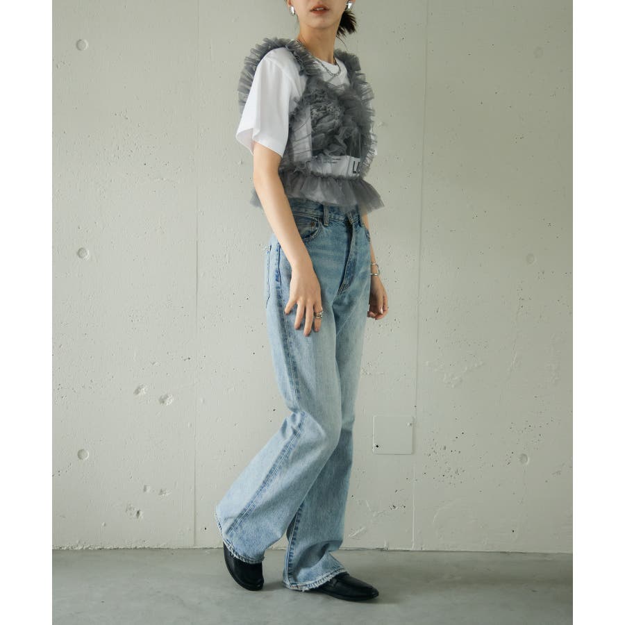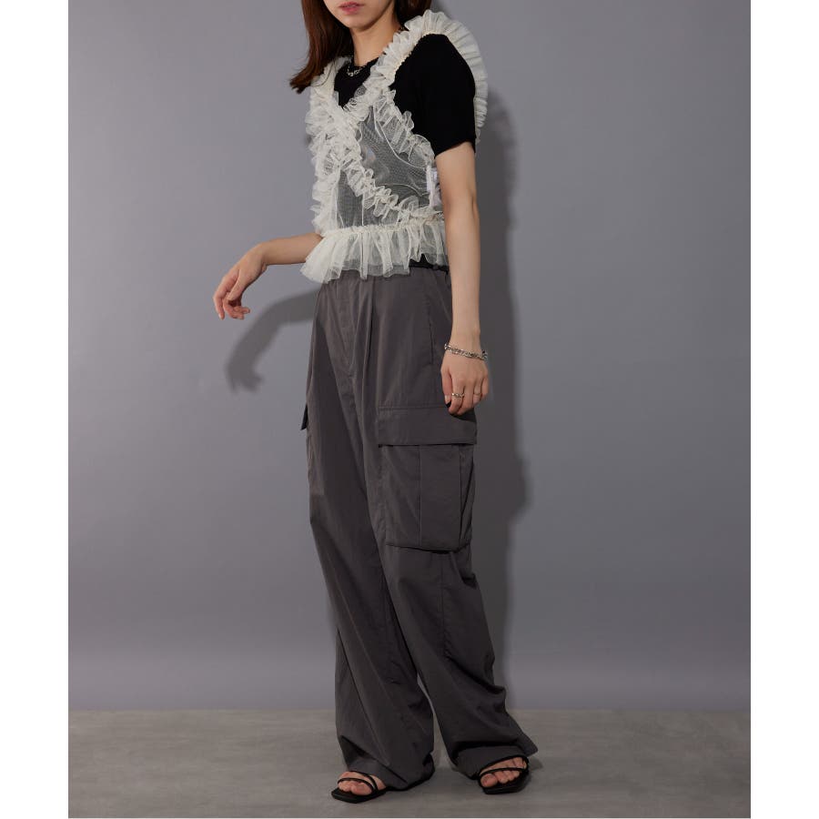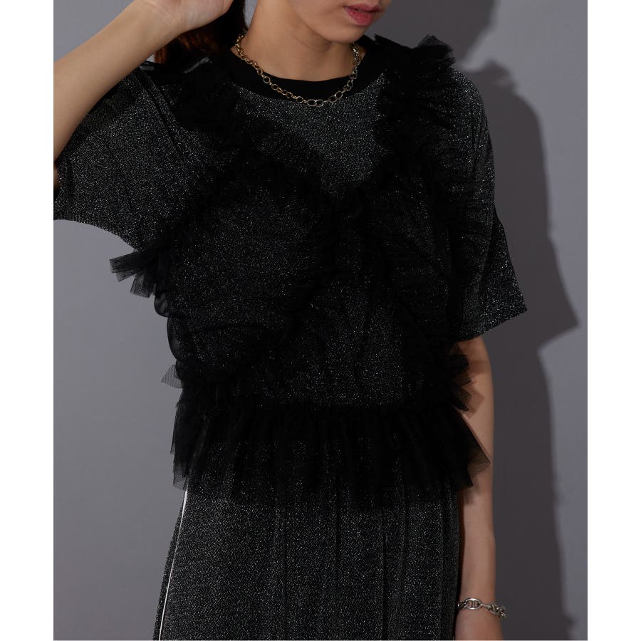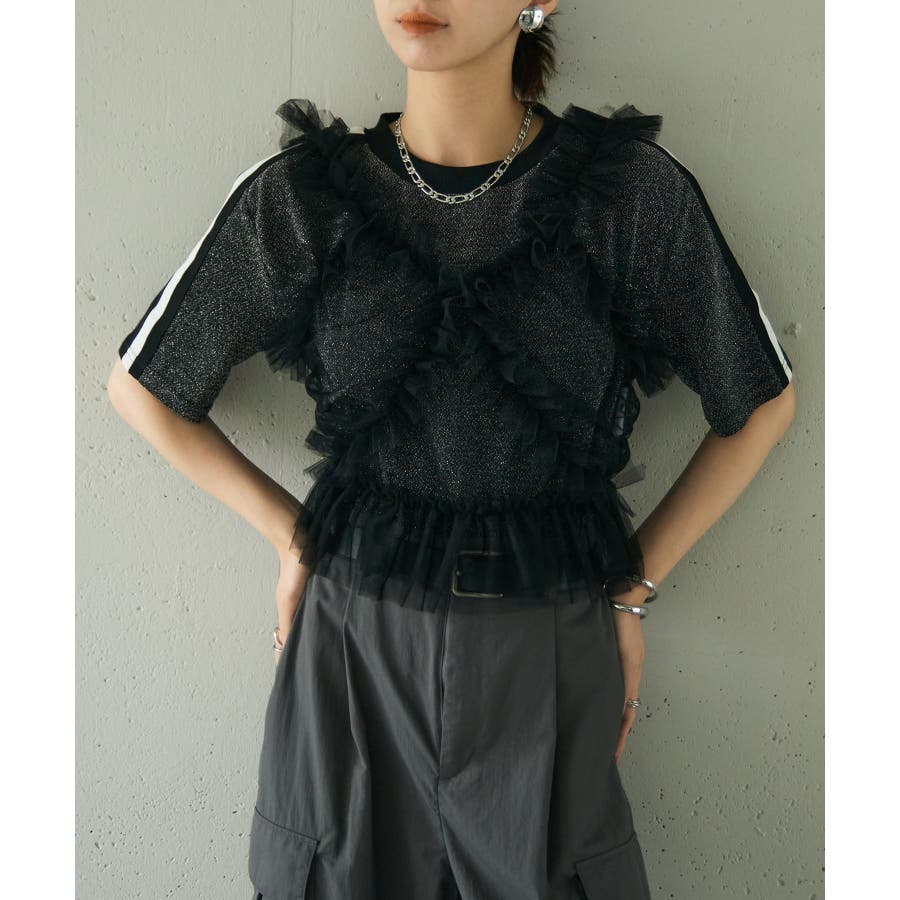 軽やかで透明感のあるチュール素材が印象的な、フリルビスチェ。