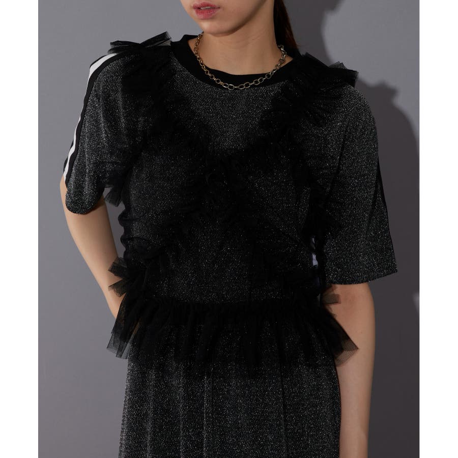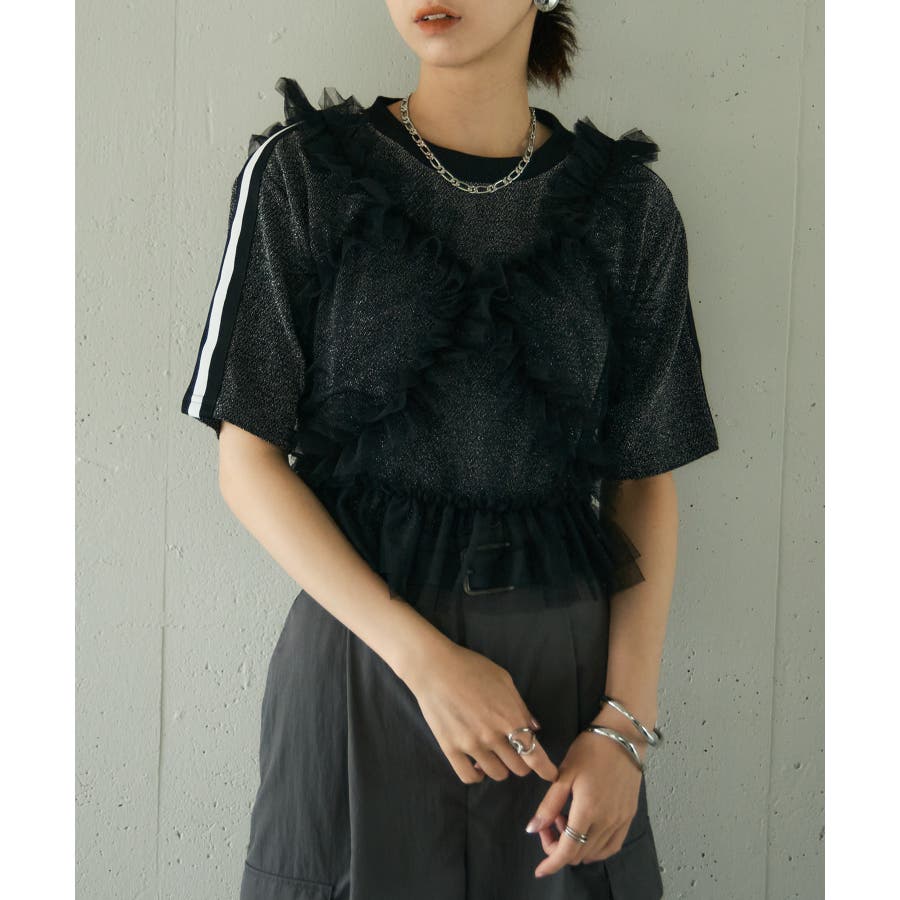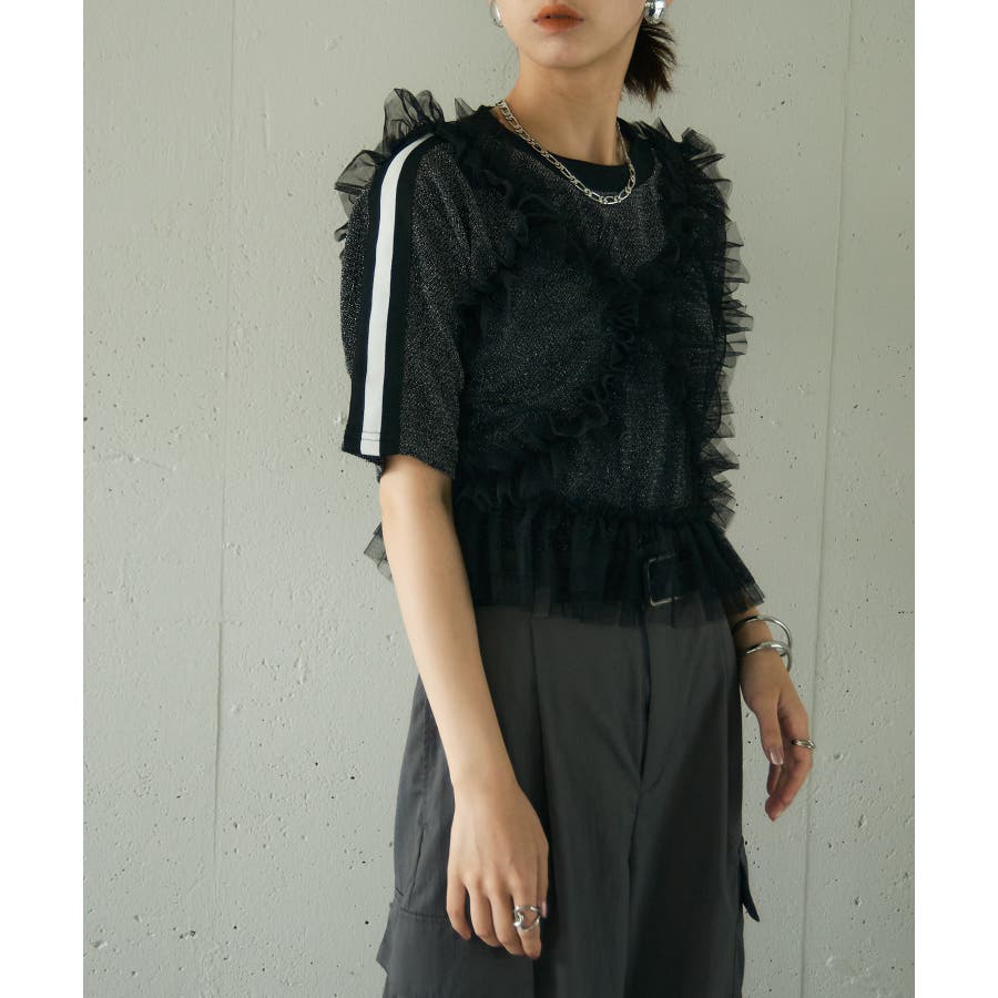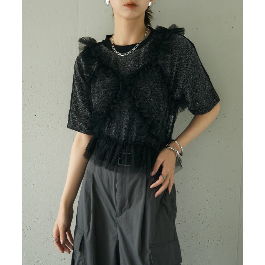 ふんわりとしたフリルが華やかさを演出。さりげないシアー感が肌を美しく見せてくれます。