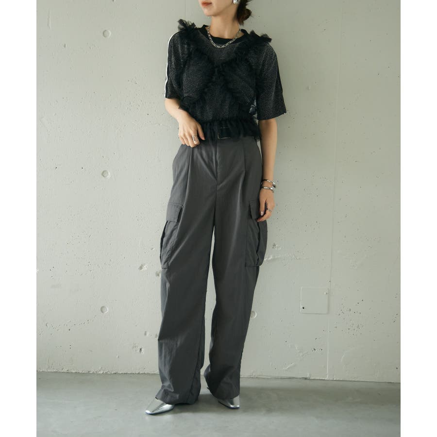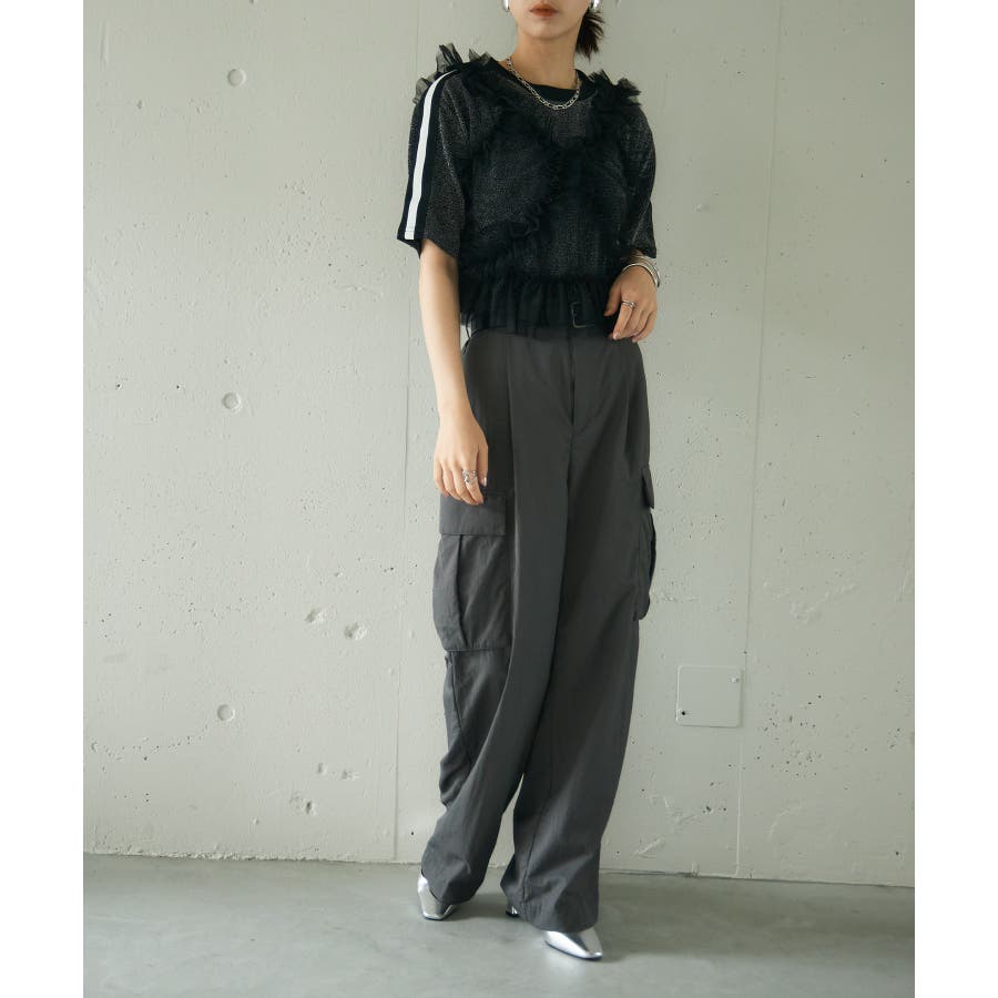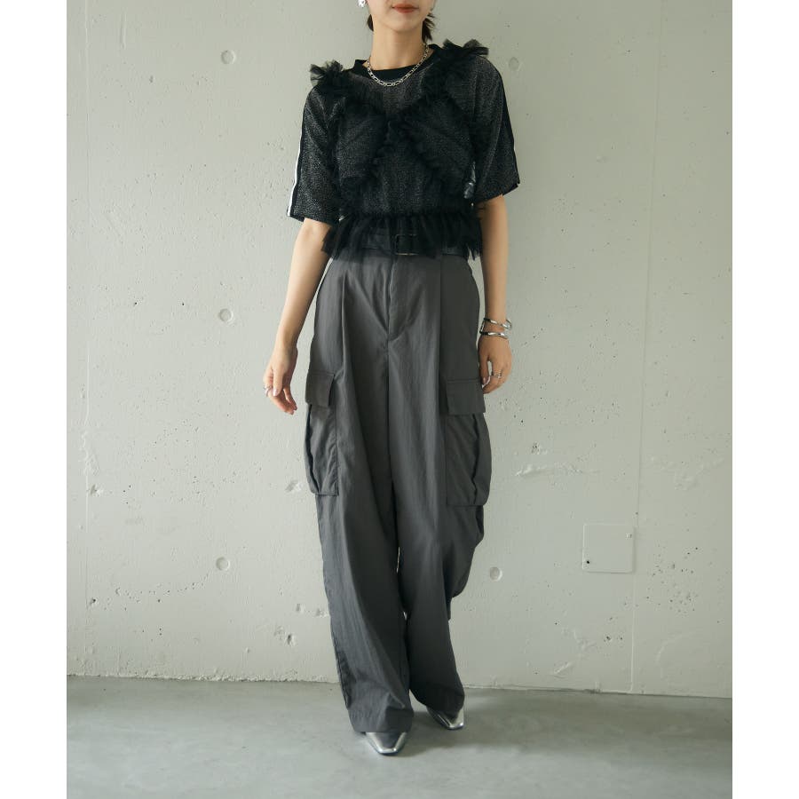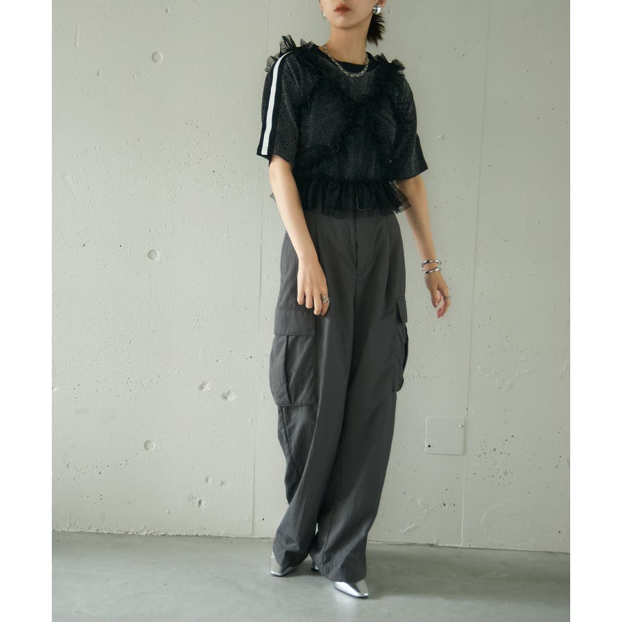 ふんわりとしたフリルが華やかさを演出。さりげないシアー感が肌を美しく見せてくれます。