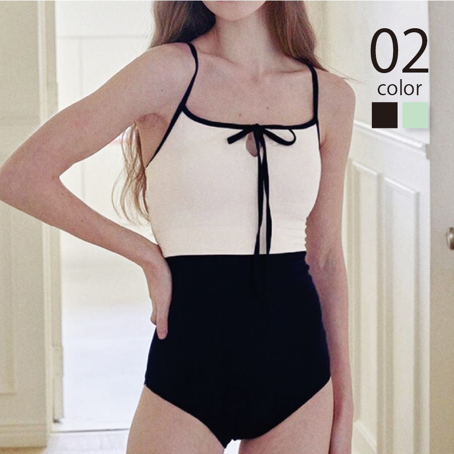 ・バイカラーデザインが目を引く、オシャレで個性的なワンピース水着