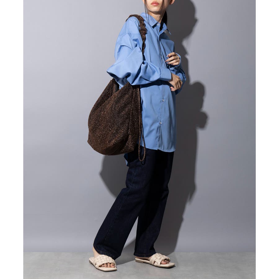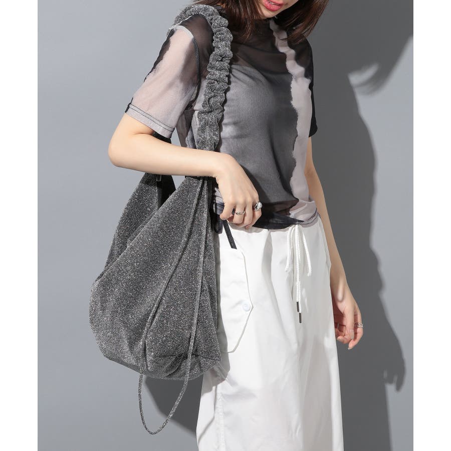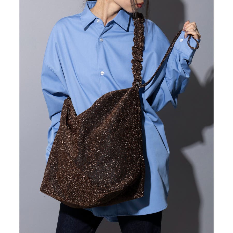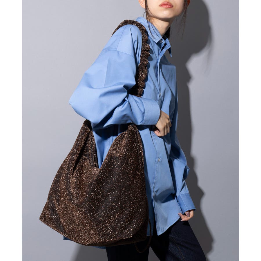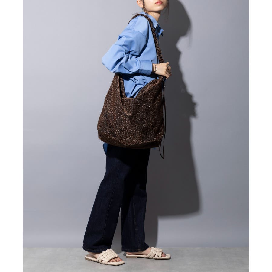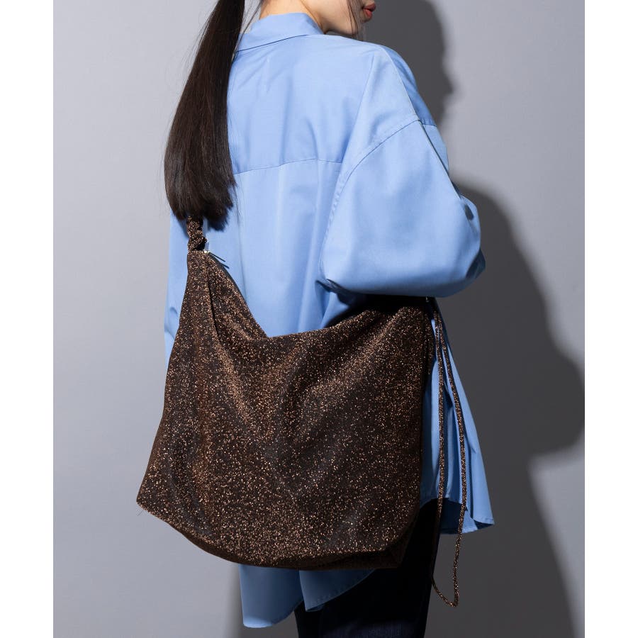 ラメ感のある生地と、デイリーユースで使いやすいシンプルなデザインが魅力のショルダーバッグ。