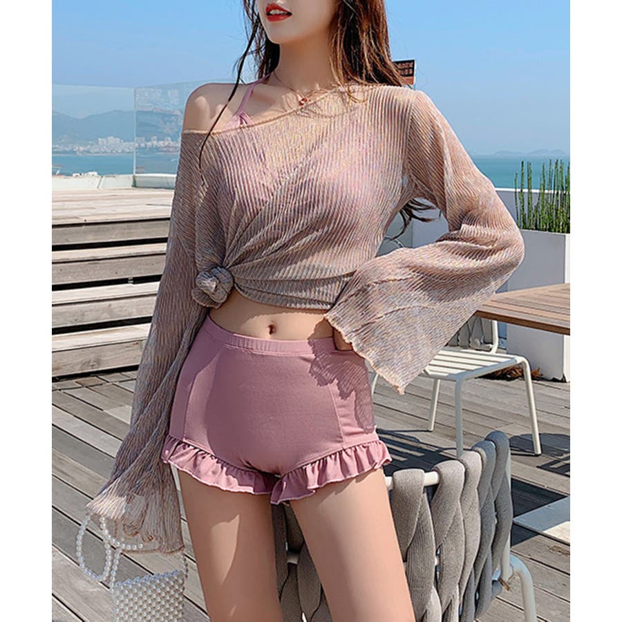 【SETUP7】シアーラメトップス+フリルデザインハイウエスト水着 SCCH52…