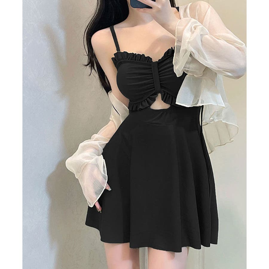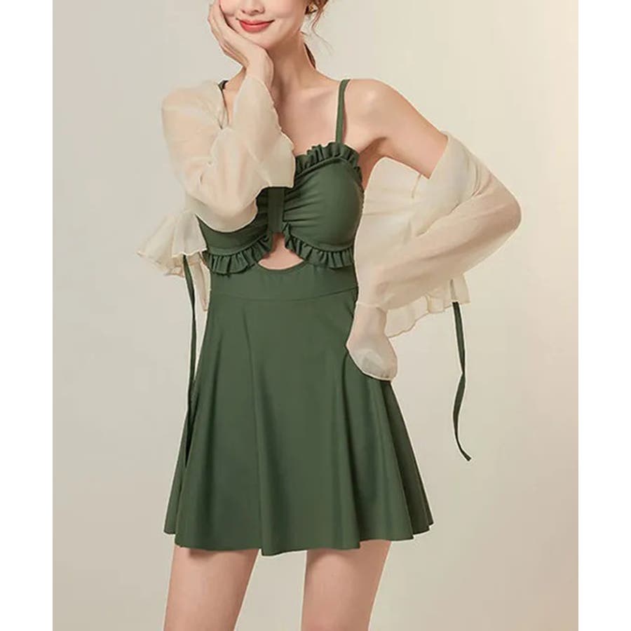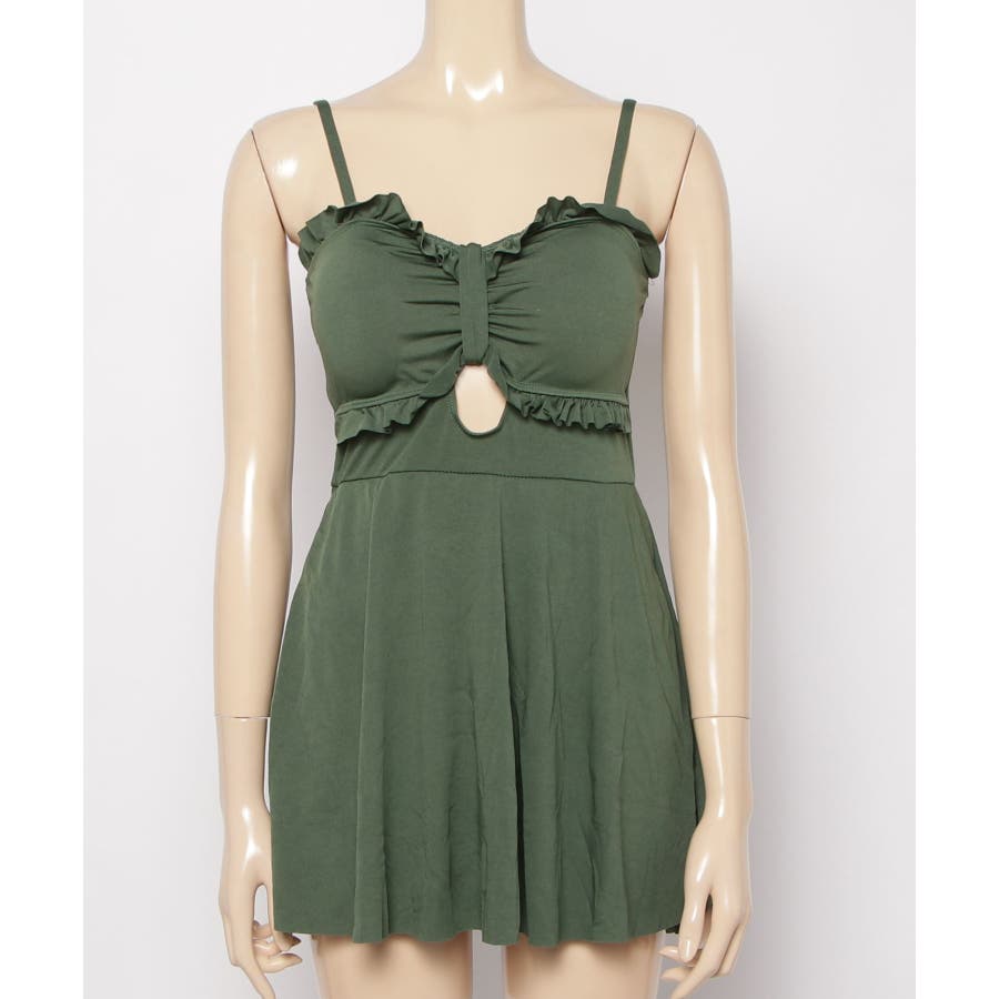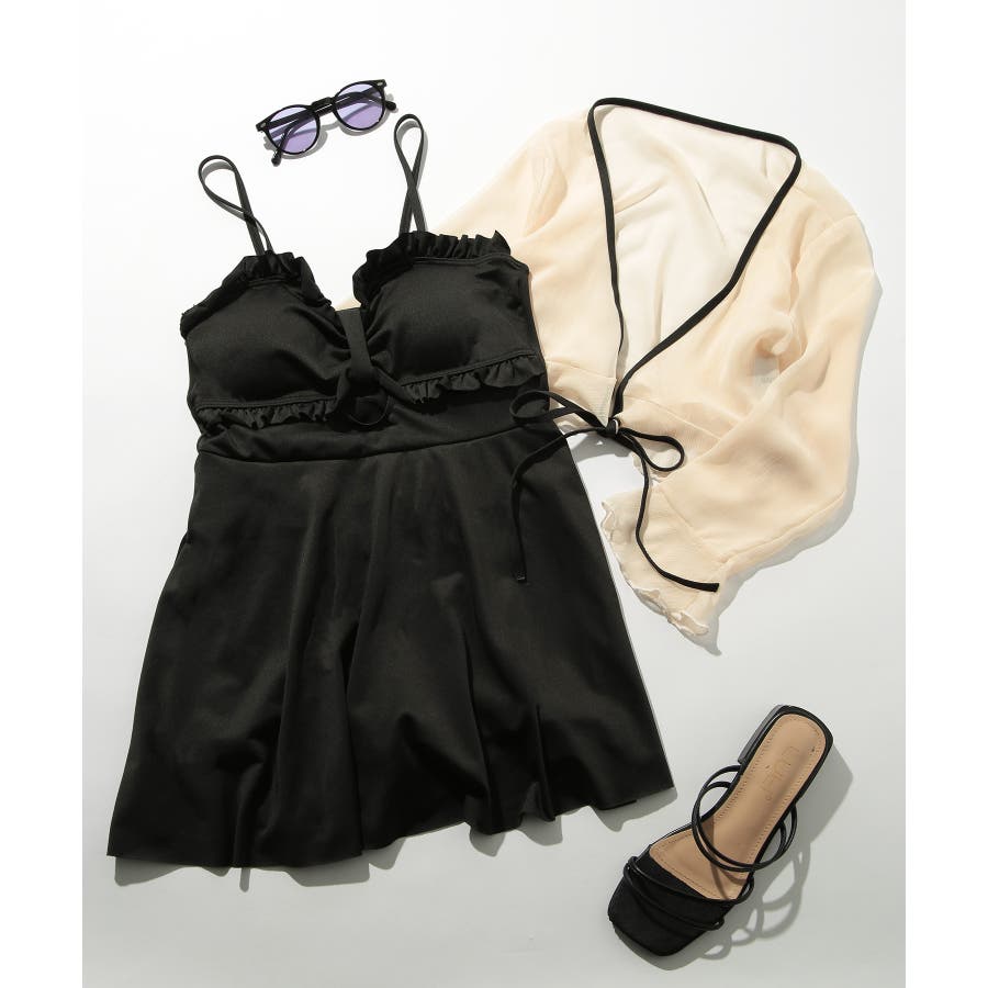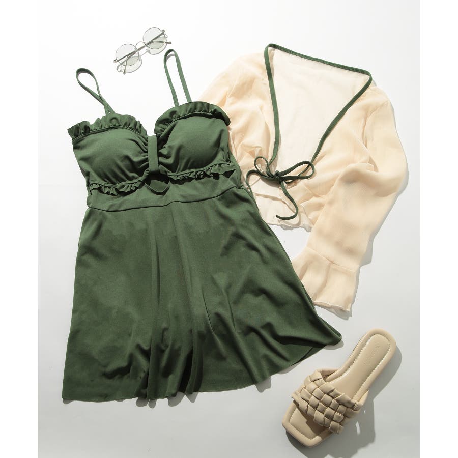 ・ボディーをお洒落にカバーリングできるワンピースタイプのスイムウェアはふんだんにフリルのディテールデザインが施されて大人可愛い1枚。