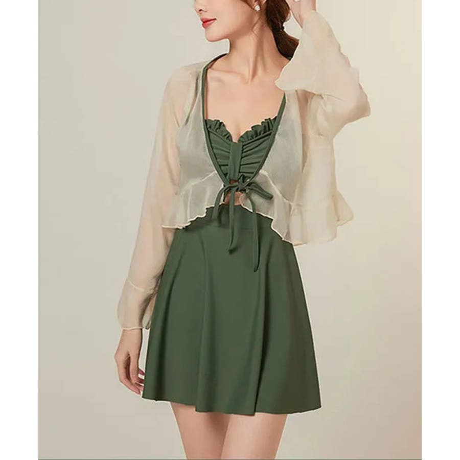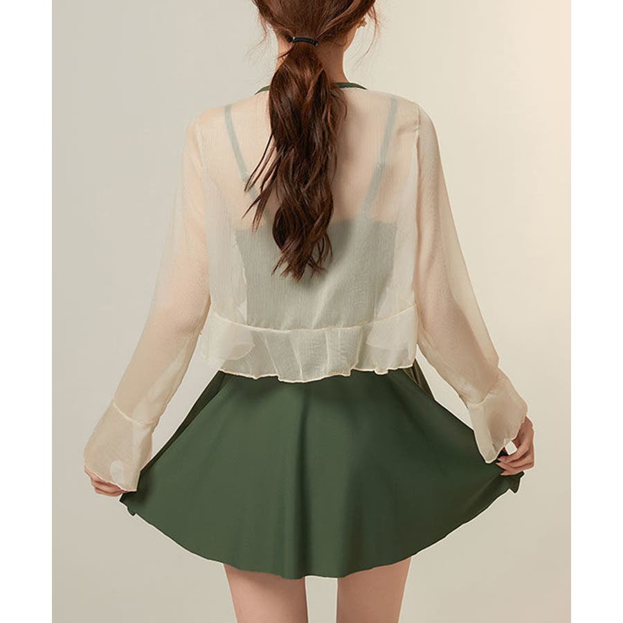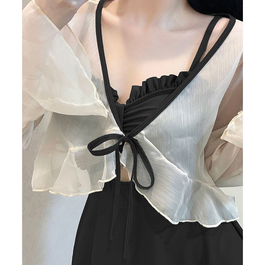 シアーなテクスチャーがひらひらと舞うようなシャツボレロとセットになったスイムウェアが登場!