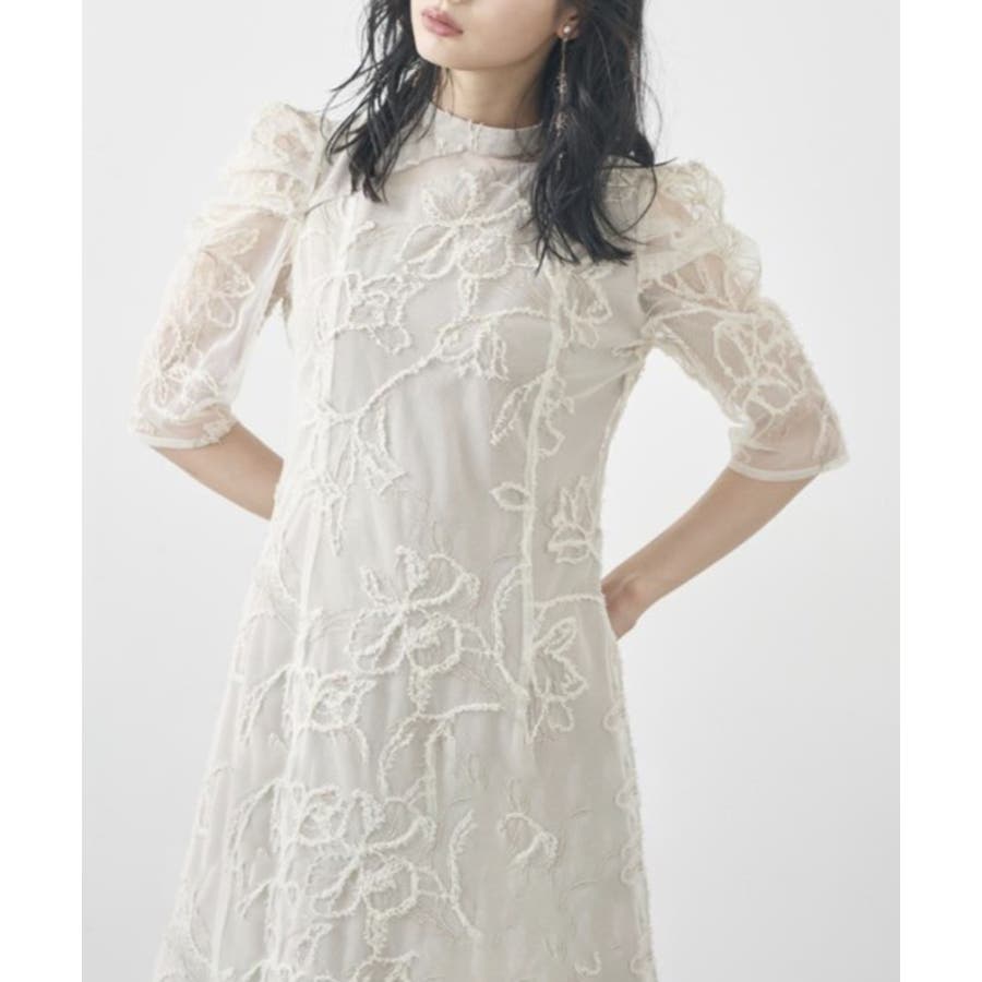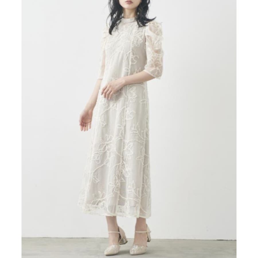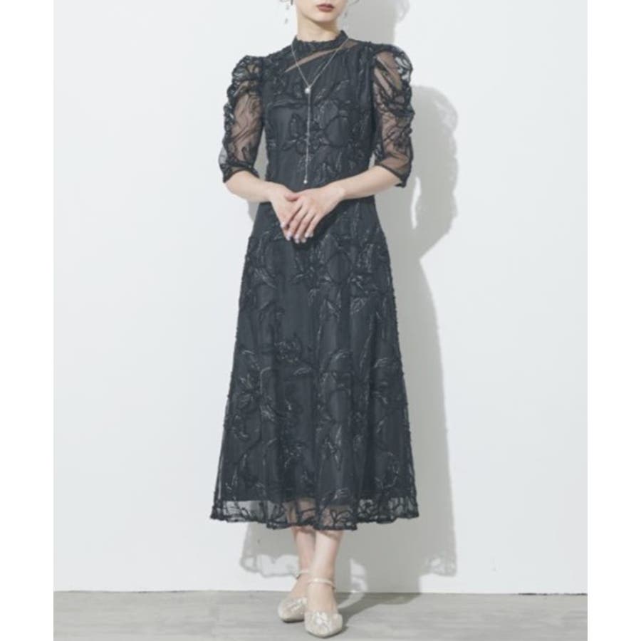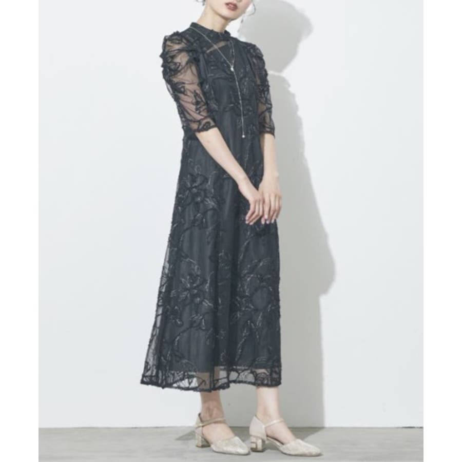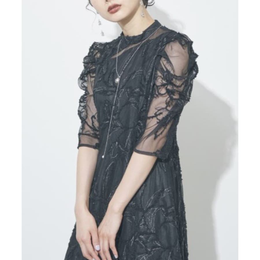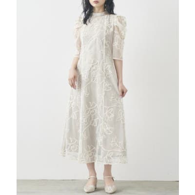【metoi】カッティング風フリンジ刺繍ワンピースドレス
