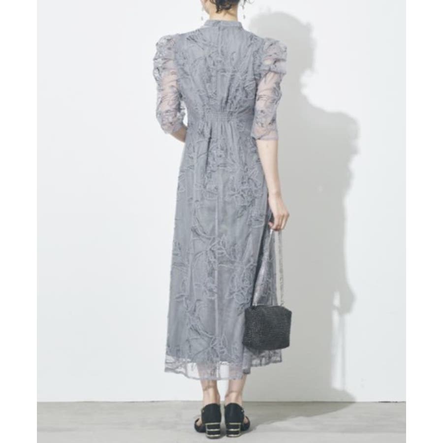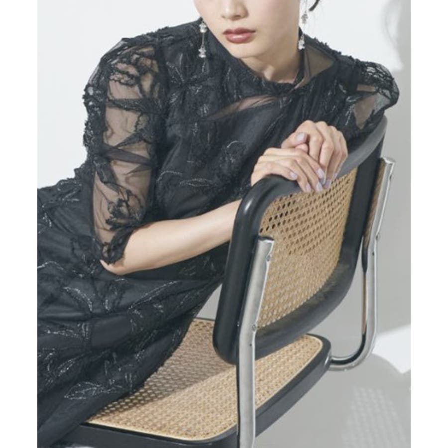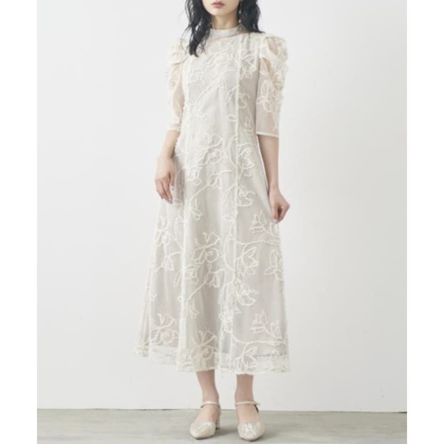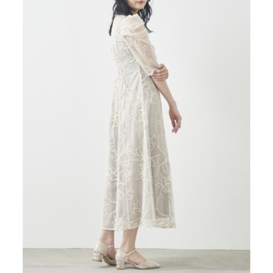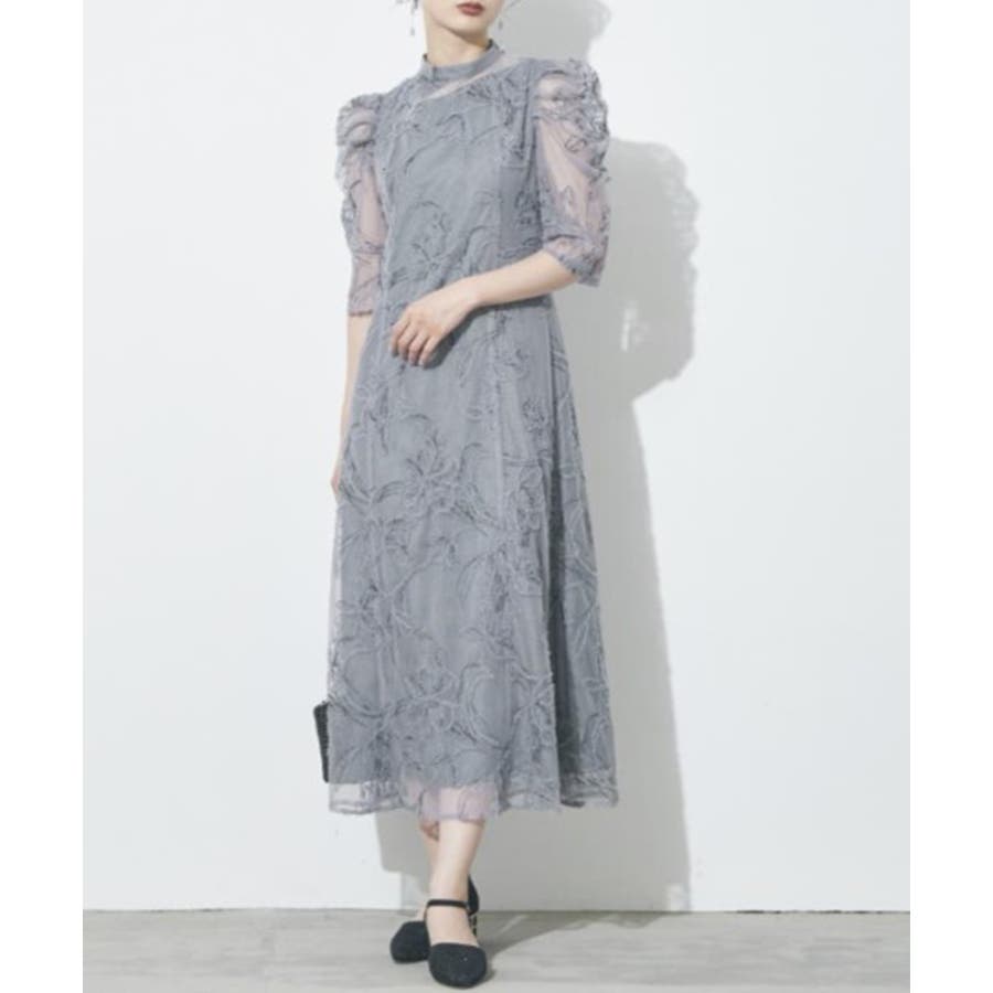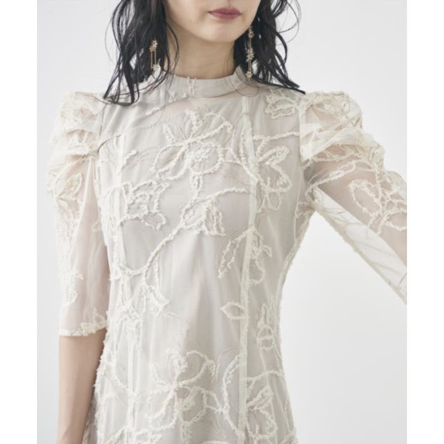 【metoi】カッティング風フリンジ刺繍ワンピースドレス