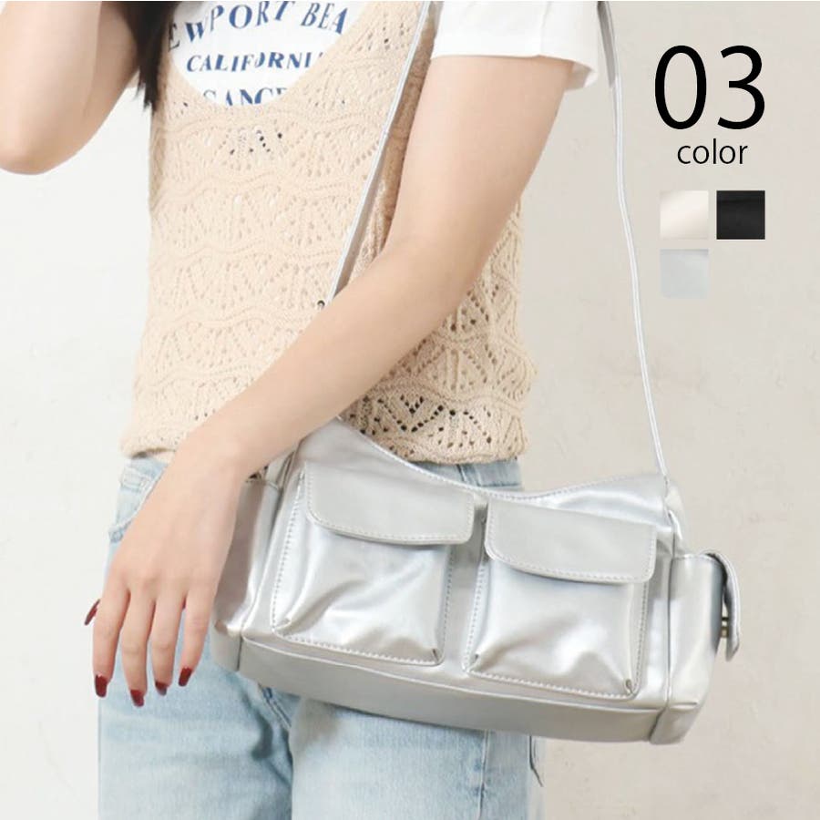 肩掛けと斜め掛けの2wayで使える、トレンドのアウトポケットバッグ。