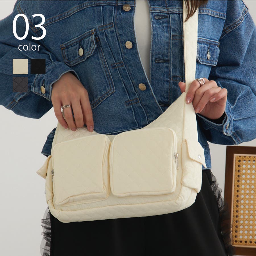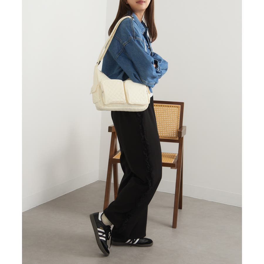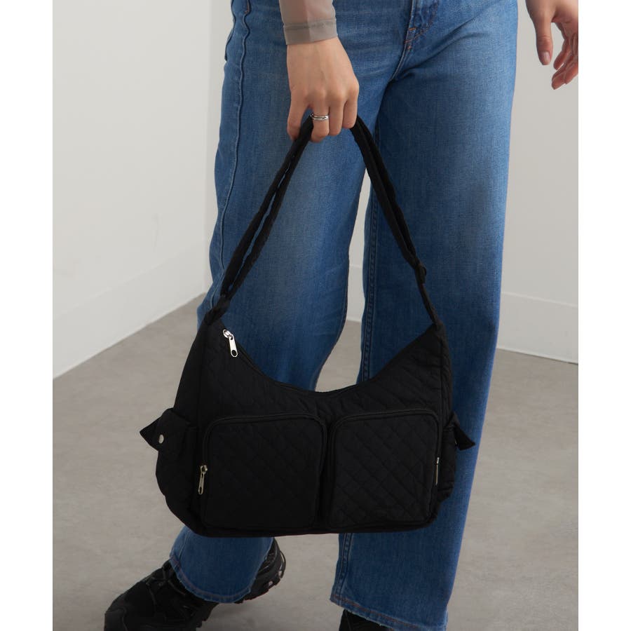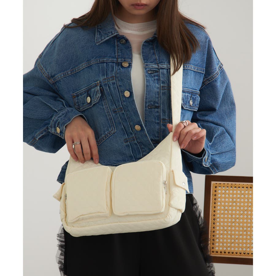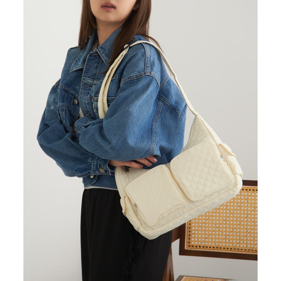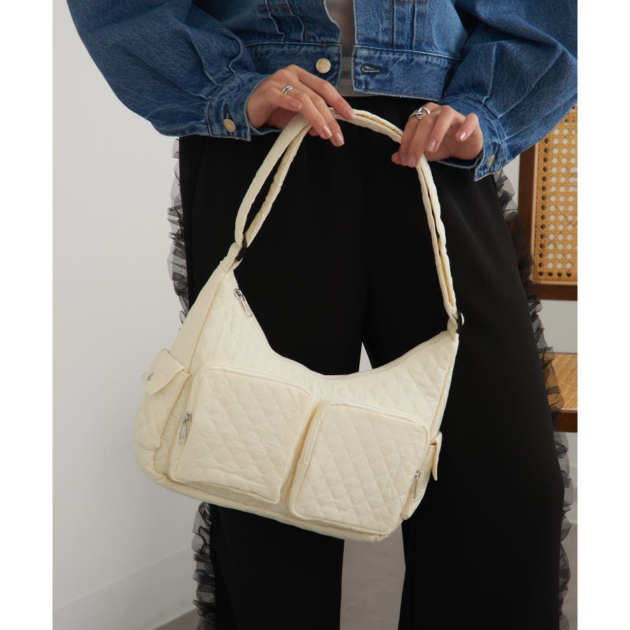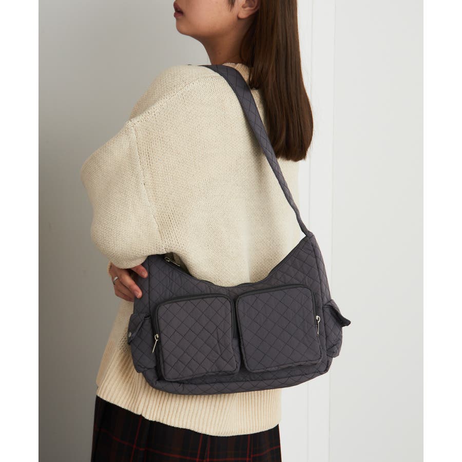 キルティング生地と立体感のあるポケットが可愛らしい、トレンド感あふれるバッグ。