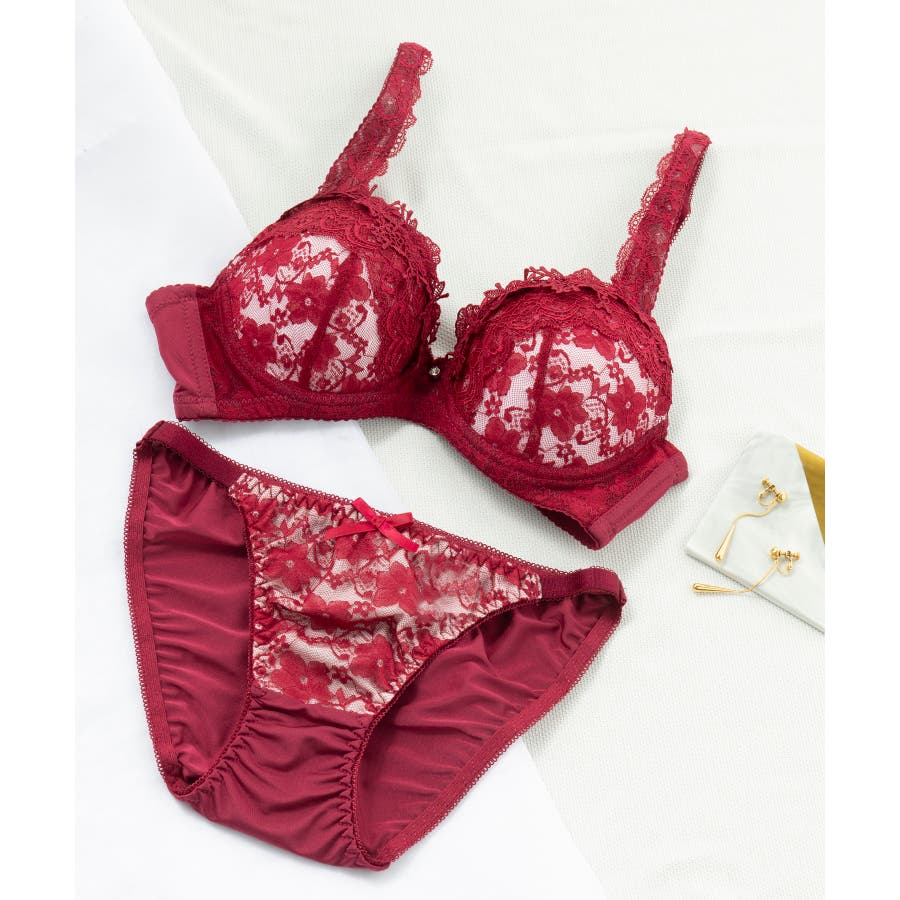 ショーツはブラとおそろいのレースデザインで統一感のある仕上がり。