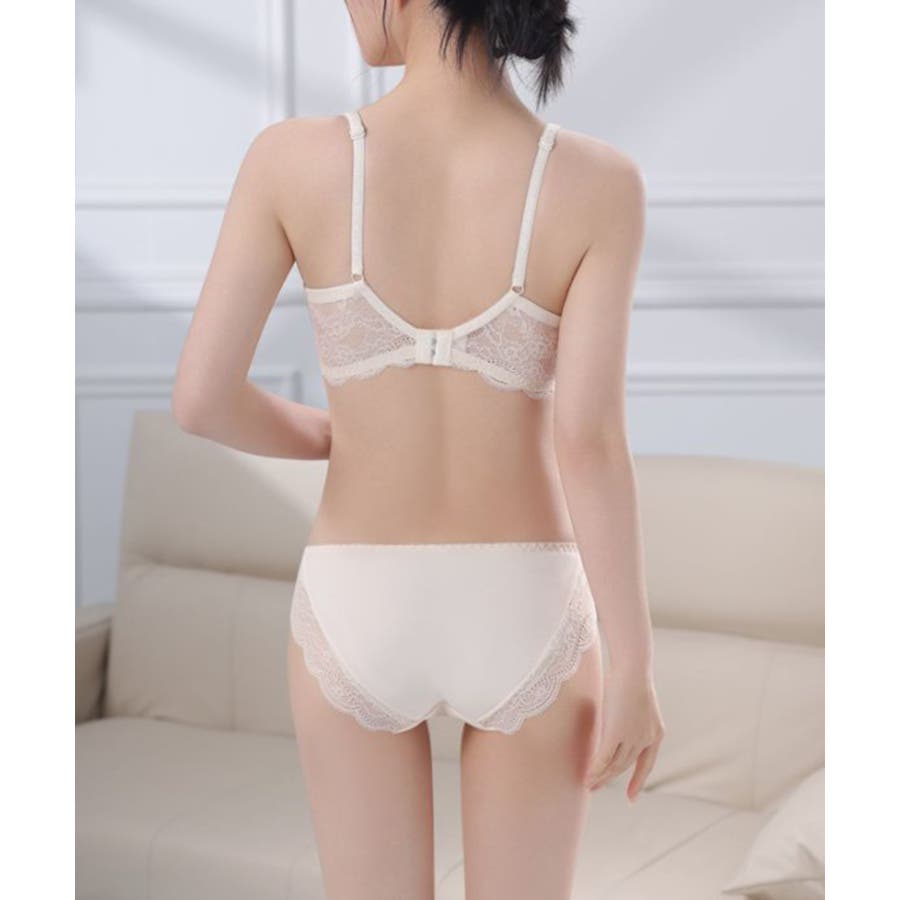 ブラジャーとお揃いのレースデザインが施されたショーツは、脚口もレース仕上げで、華やかさと快適な履き心地を両立。