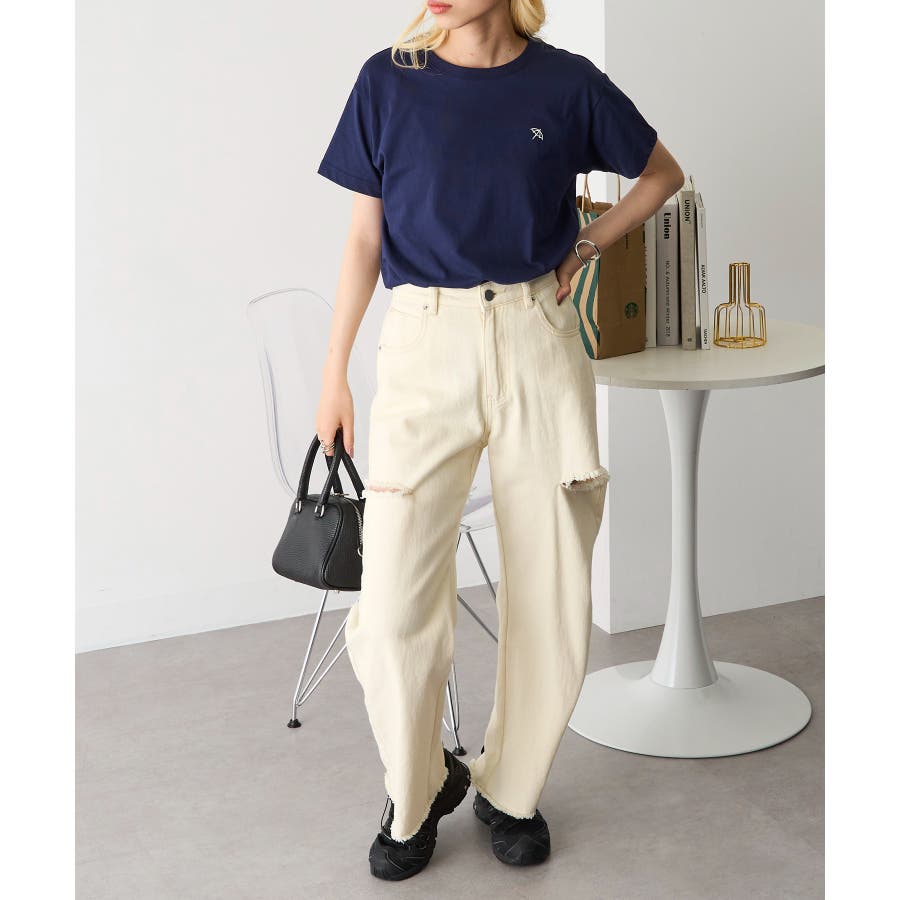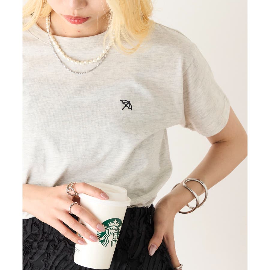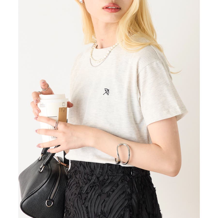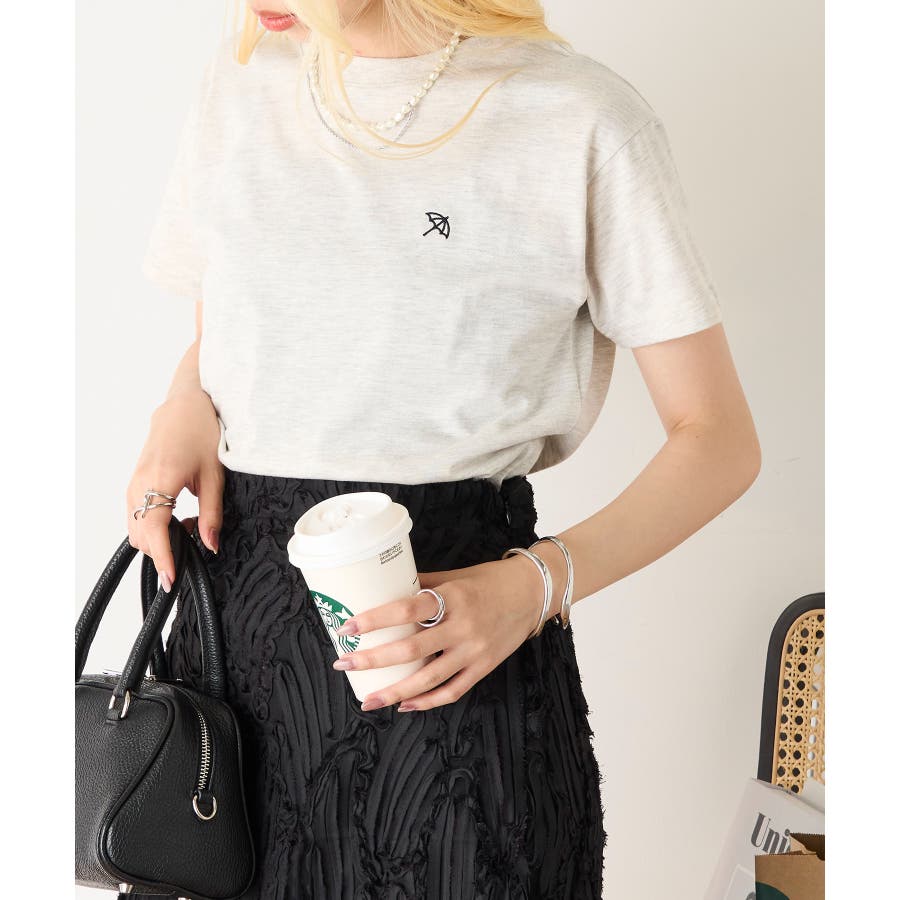 胸元のワンポイントがコーディネートのアクセントに