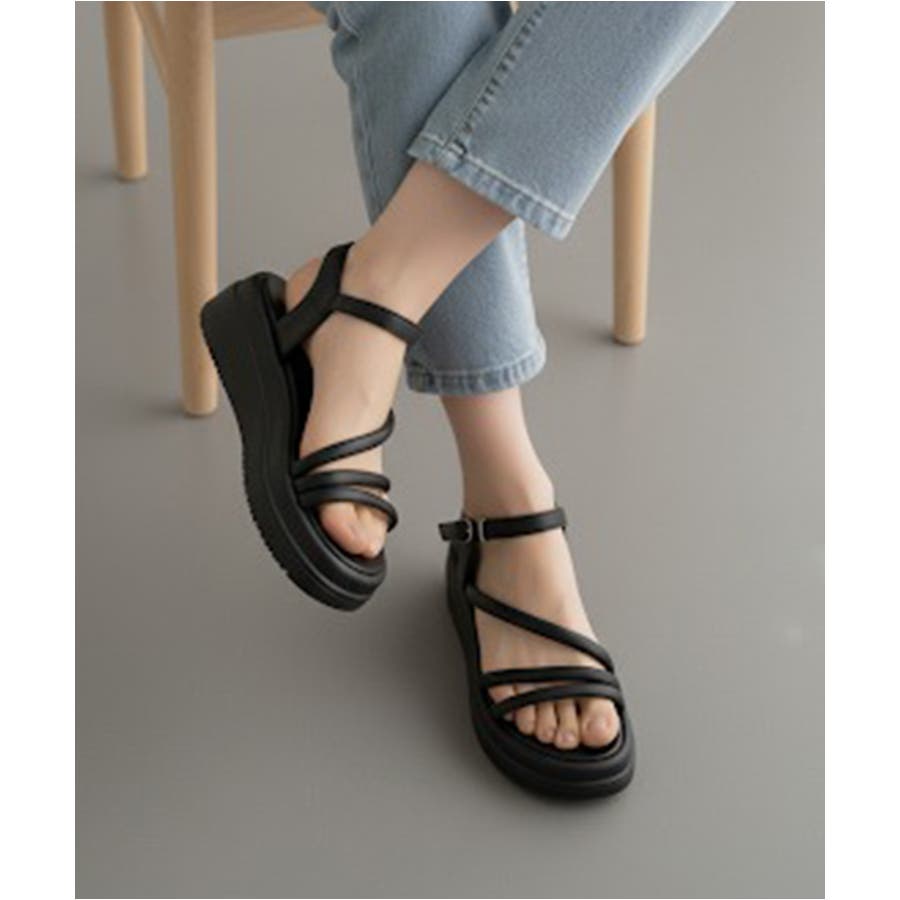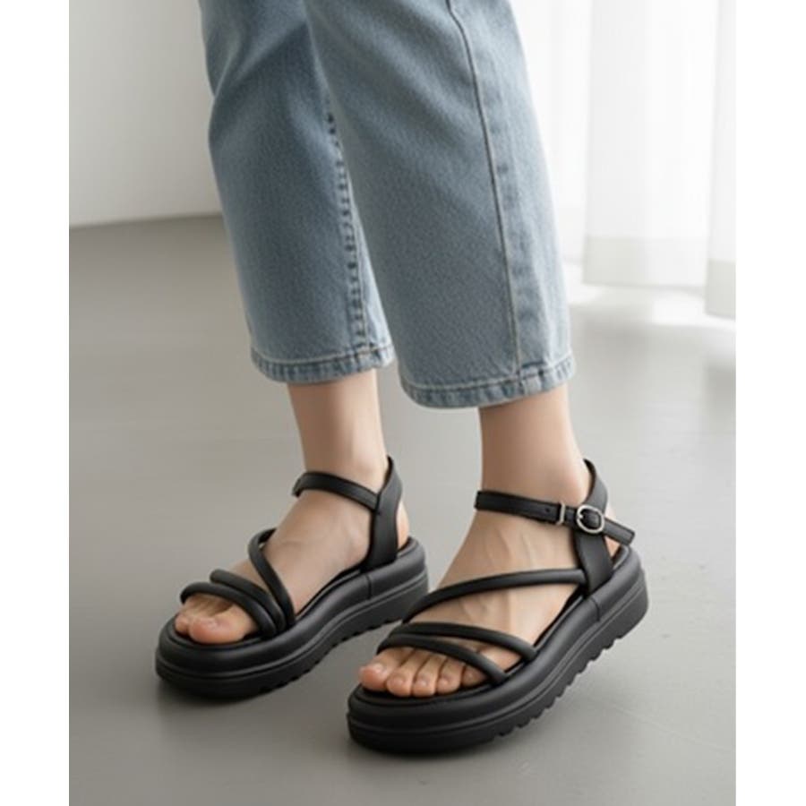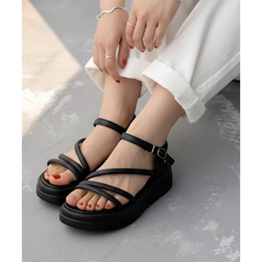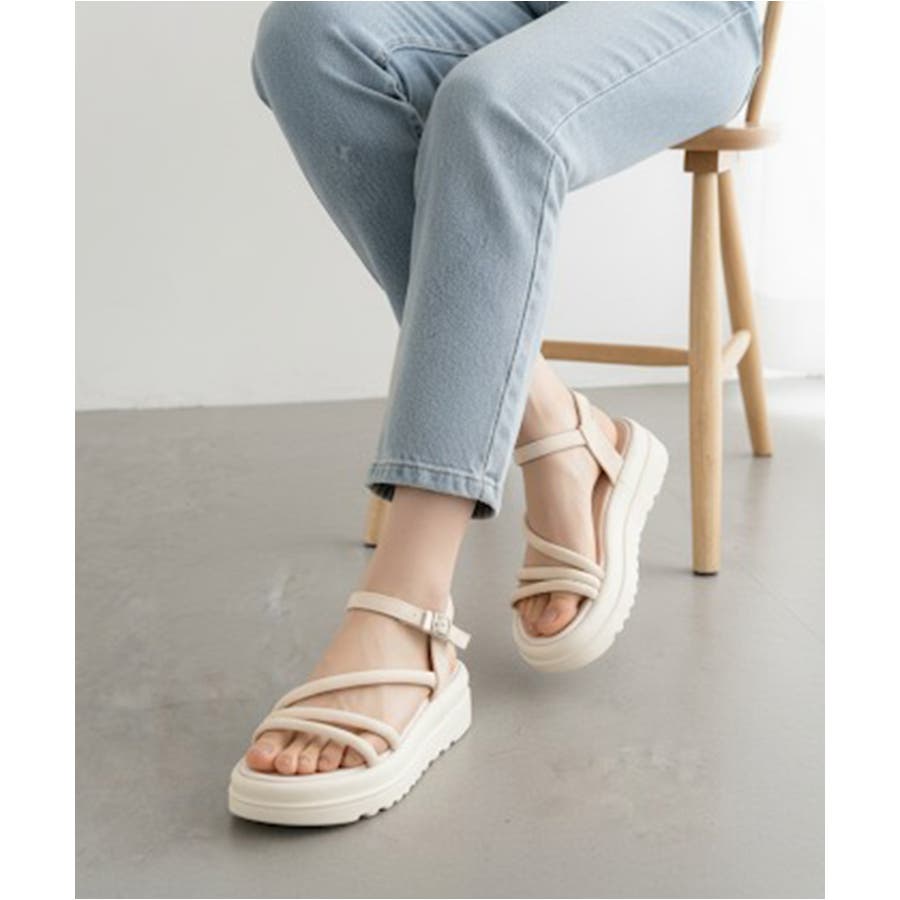 細めのストラップが足元をすっきりと華奢に見せ、どんなボトムともバランス良く馴染みます。