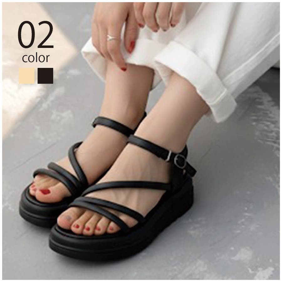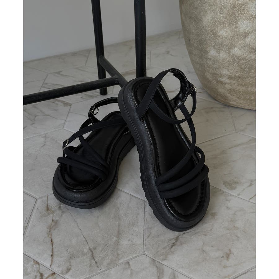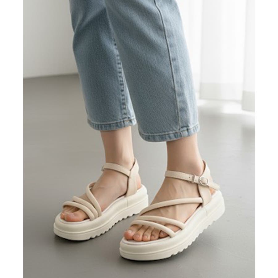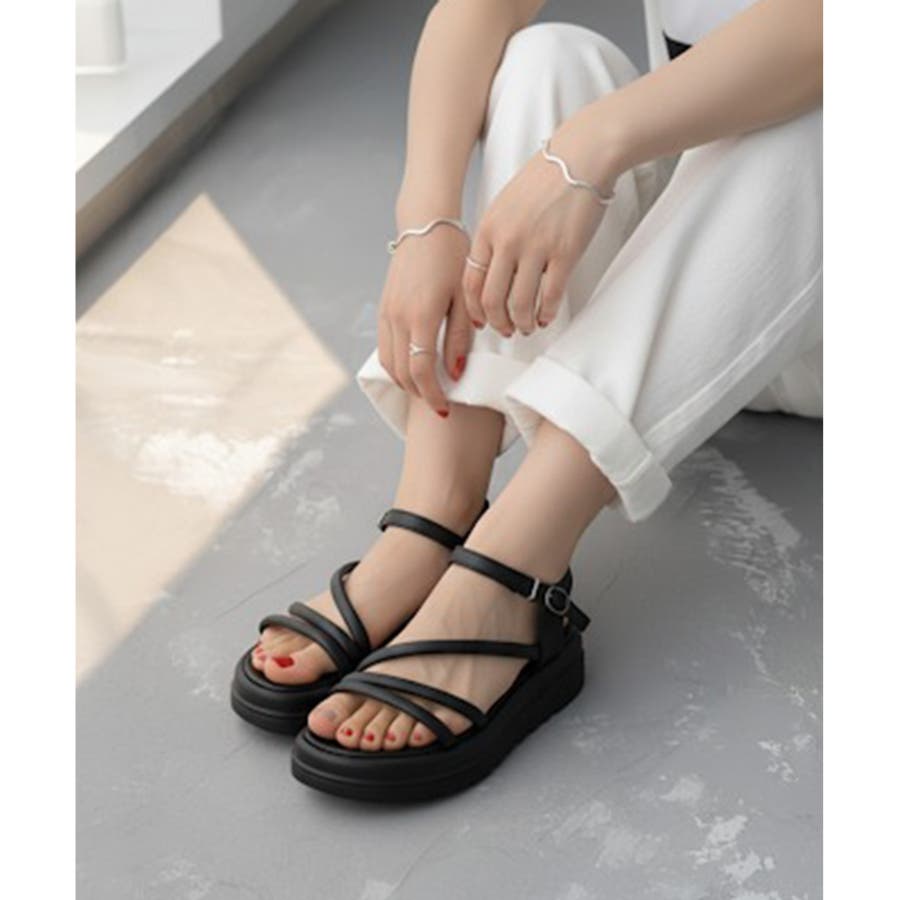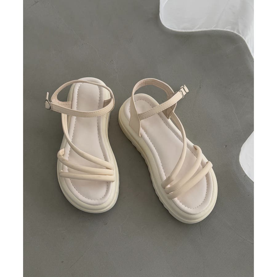 細めのストラップが足元をすっきりと華奢に見せ、どんなボトムともバランス良く馴染みます。