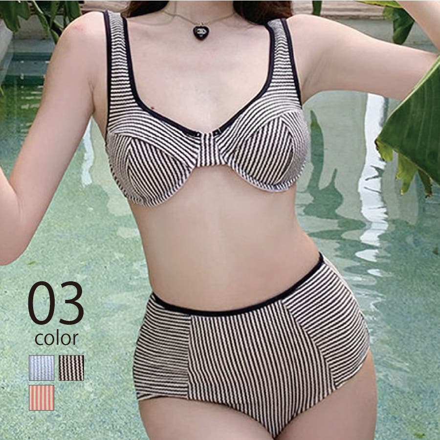 【SETUP7】配色ストライプビキニ 水着 スイムウェア KNF132