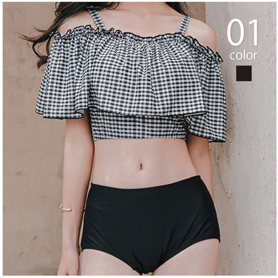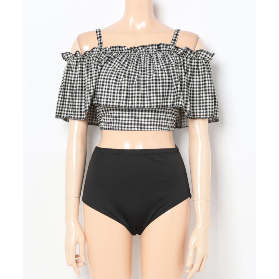 【SETUP7】ギンガムチェックオフショルダー水着 SNK