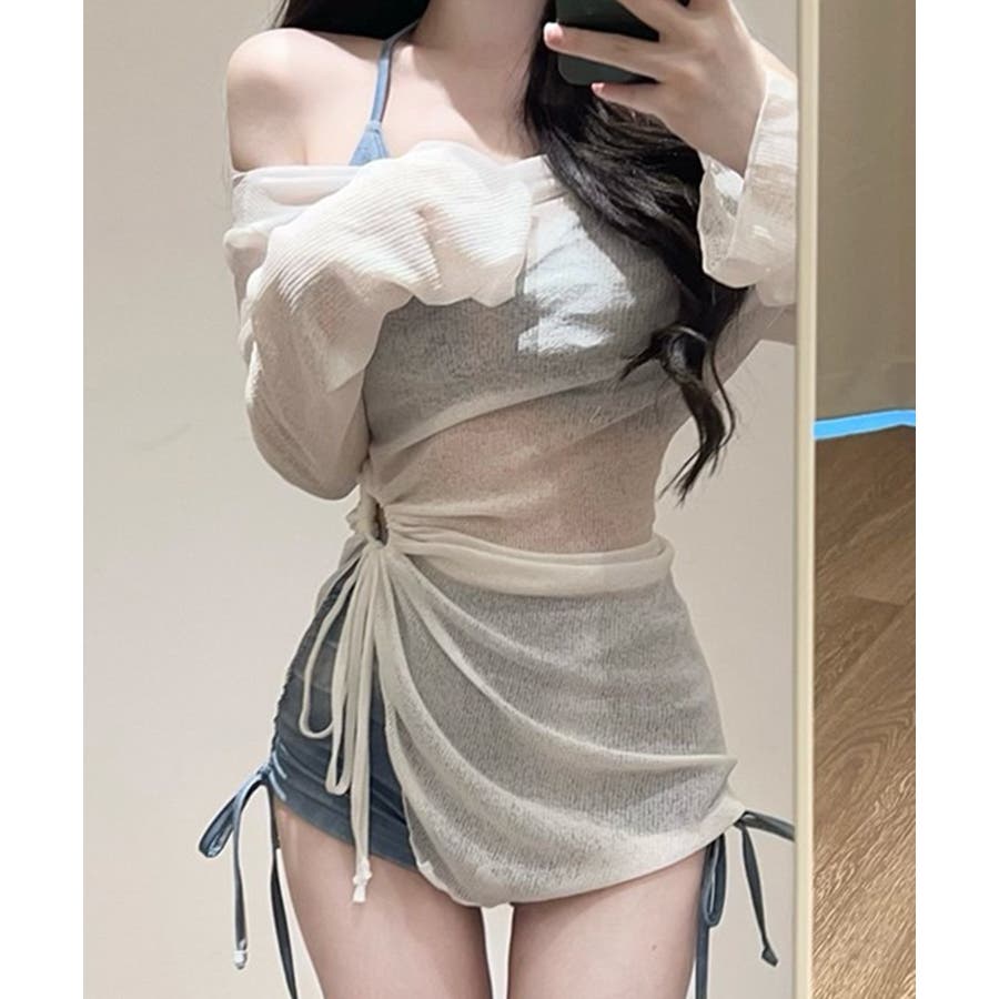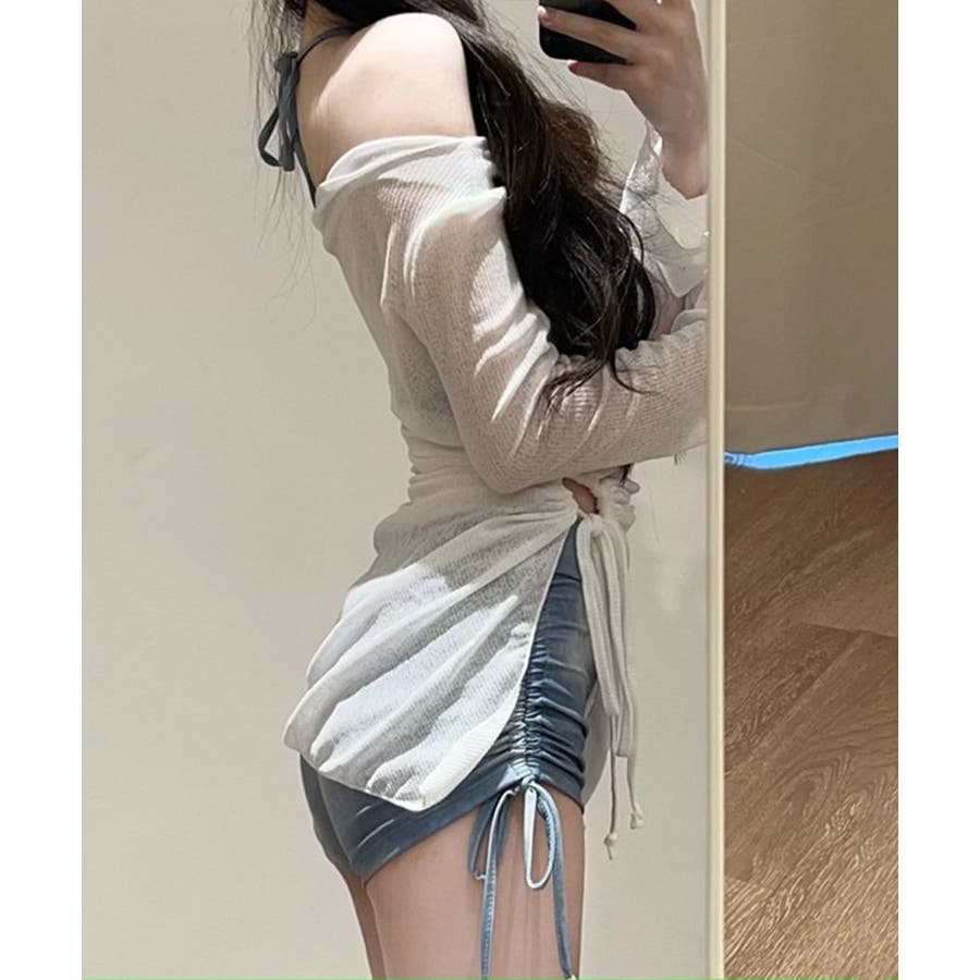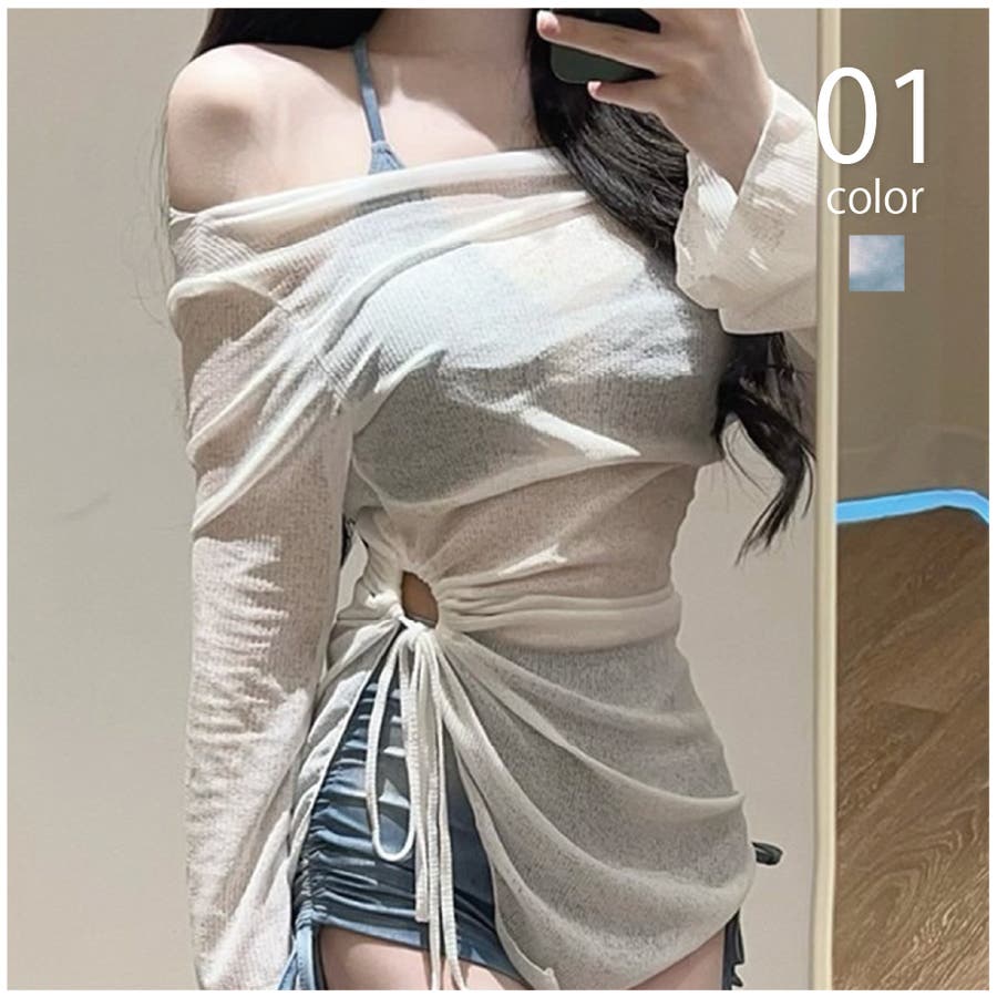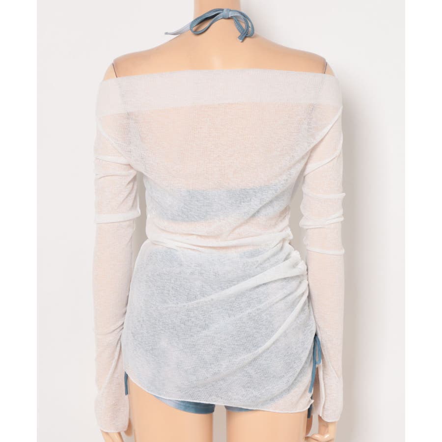 爽やかな色合いと、ヘルシーな肌見せバランスが魅力のアイテムです。