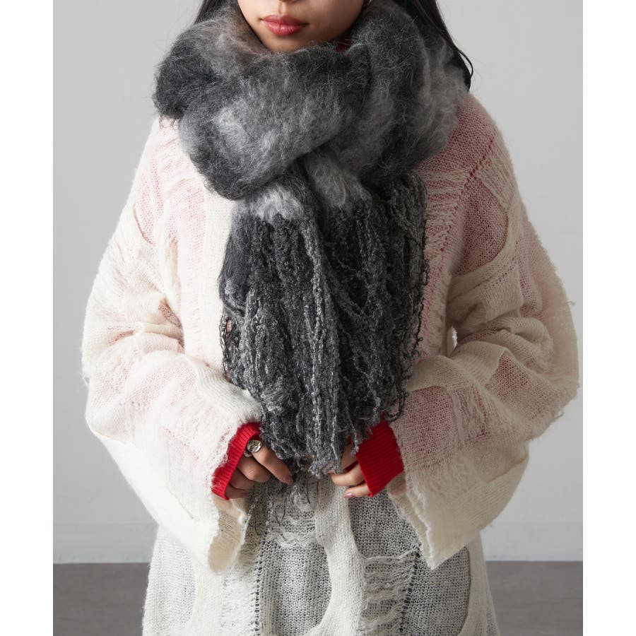 長めのフリンジが、巻いたときに程よいボリューム感と動きを生み出します。