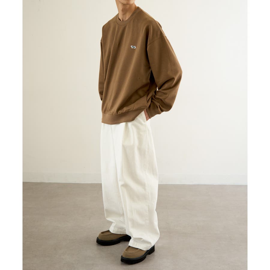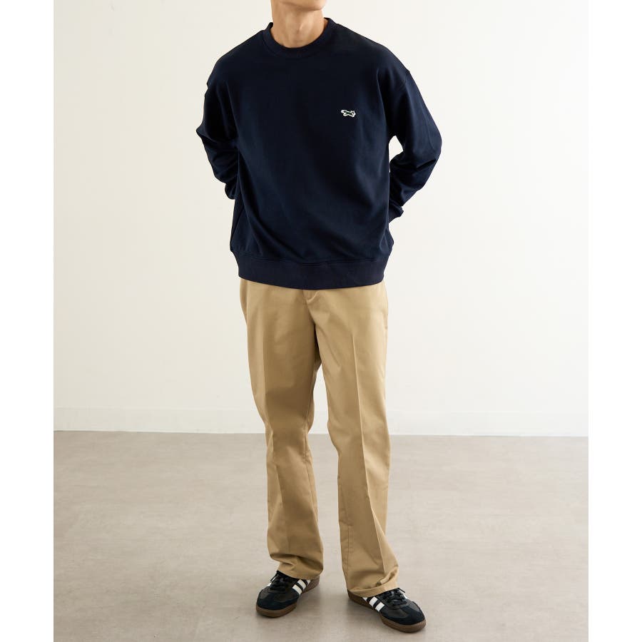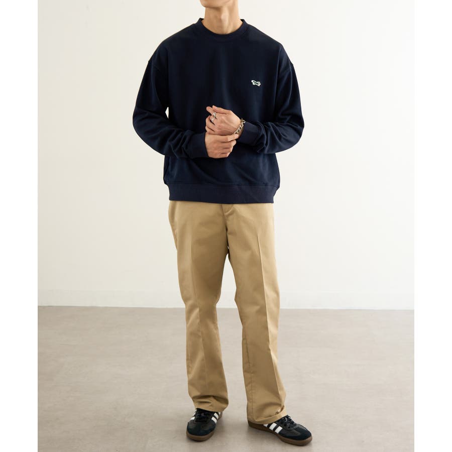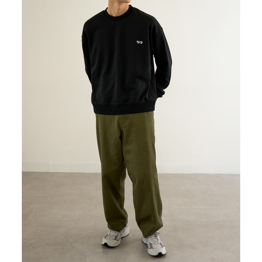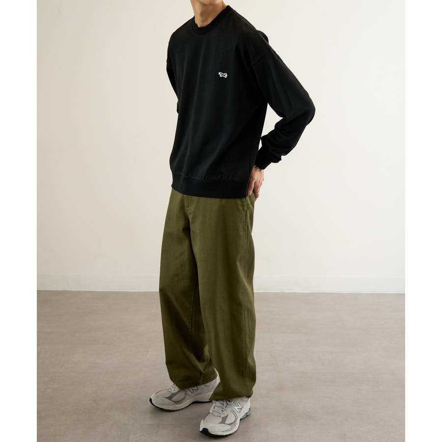 リラックス感のあるシルエットながら、フロントのワンポイントデザインがスタイルを引き締めてくれます。