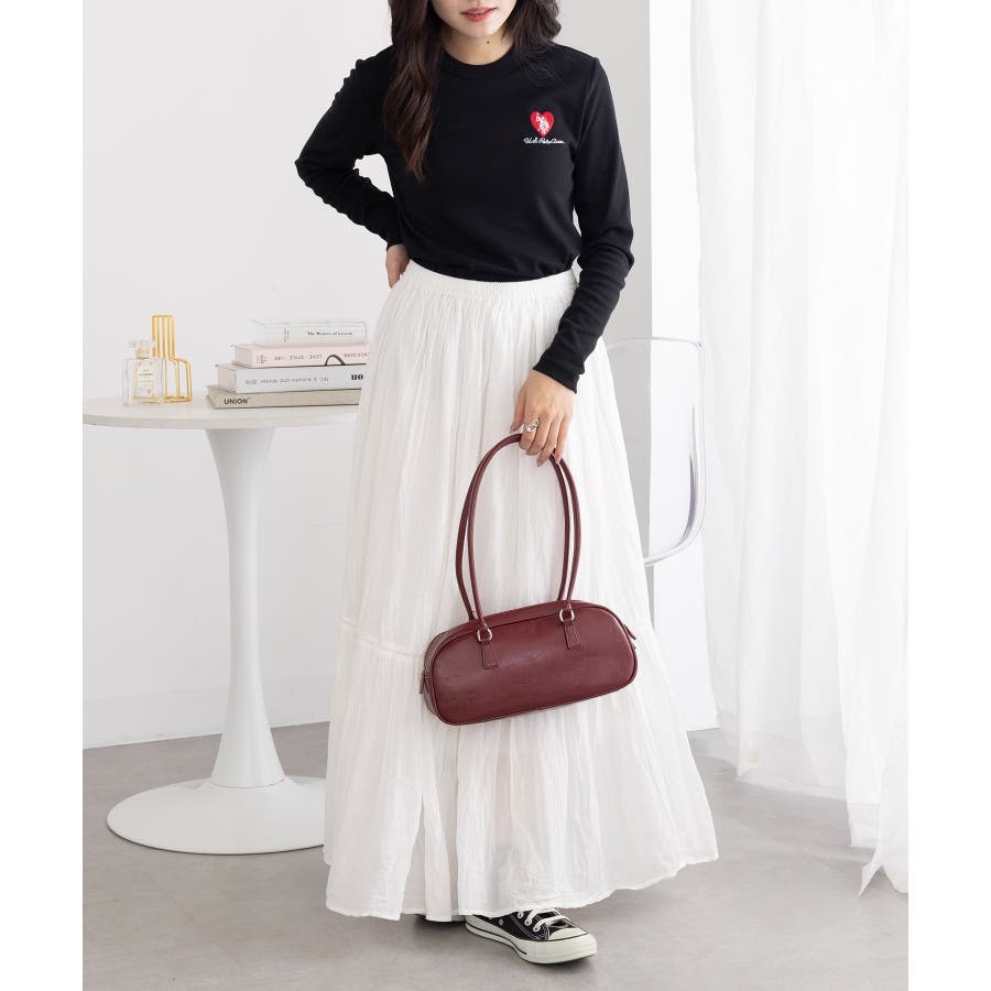 ・プリーツスカートと合わせれば、ガーリーなムード漂うお出かけコーデに。
