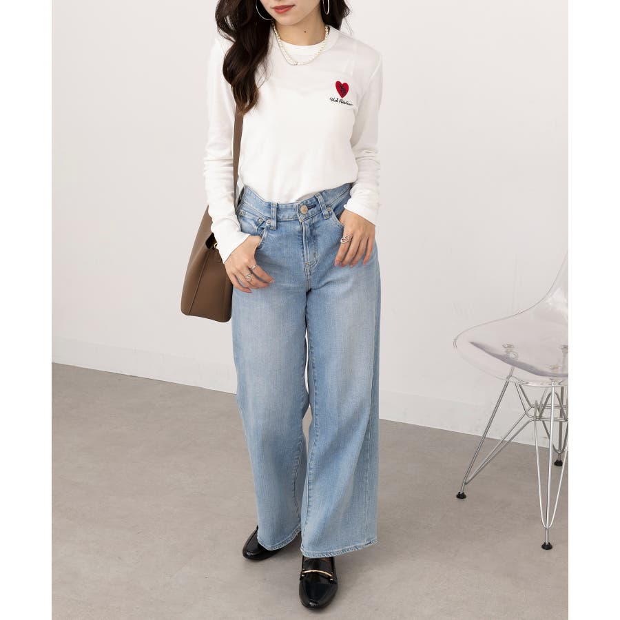 ・デニムと合わせて、シンプルながらも刺繍が映えるカジュアルスタイルに。