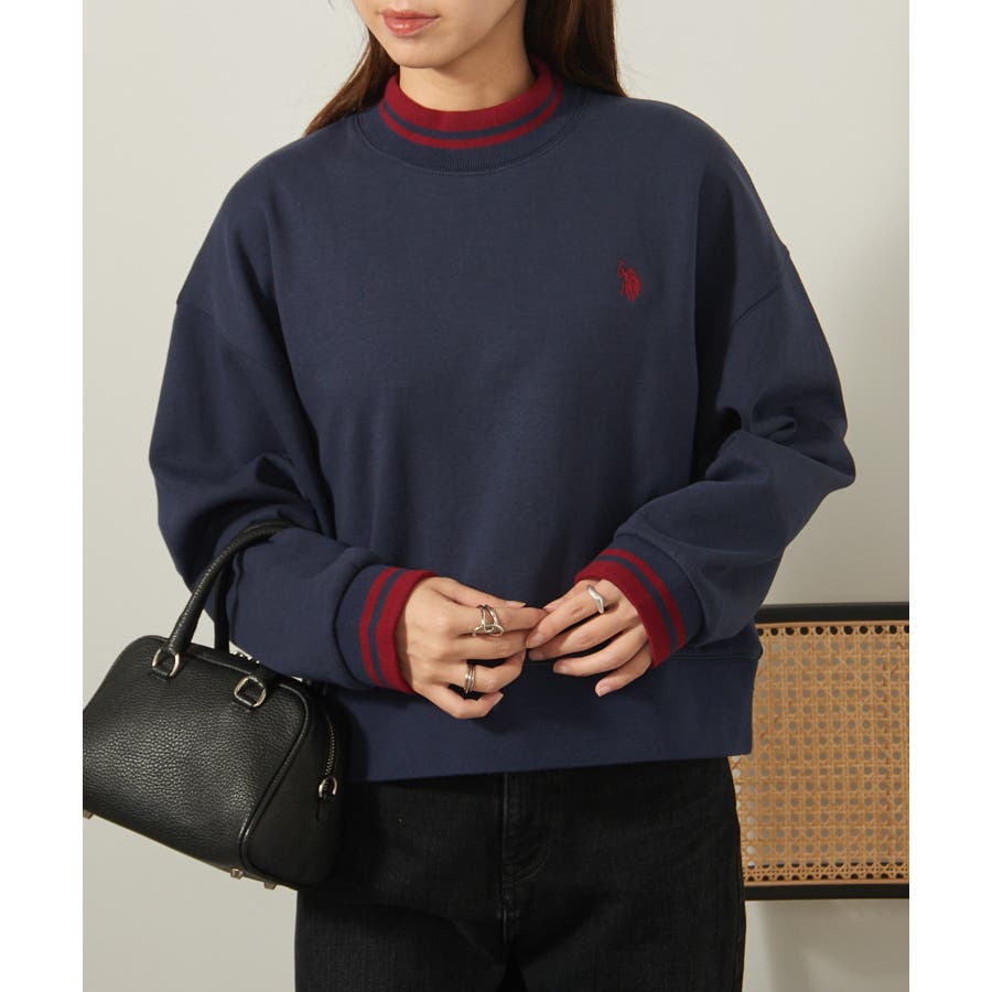 【ワイン】【U.S. POLO ASSN.】モックネックショート丈スウェット