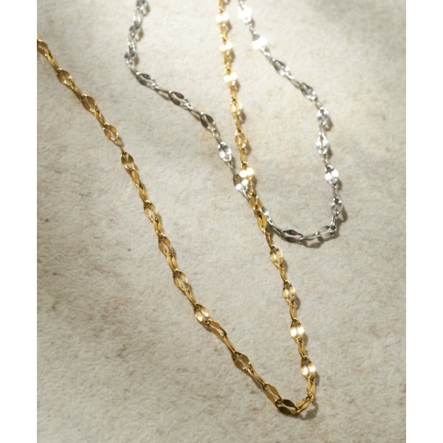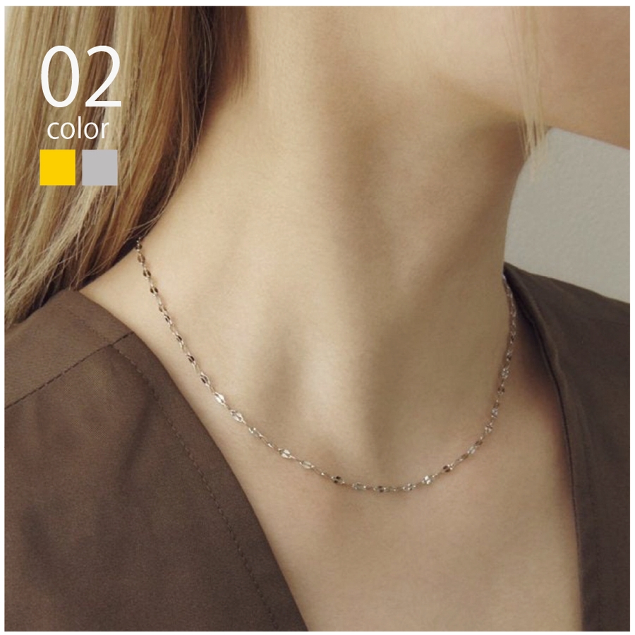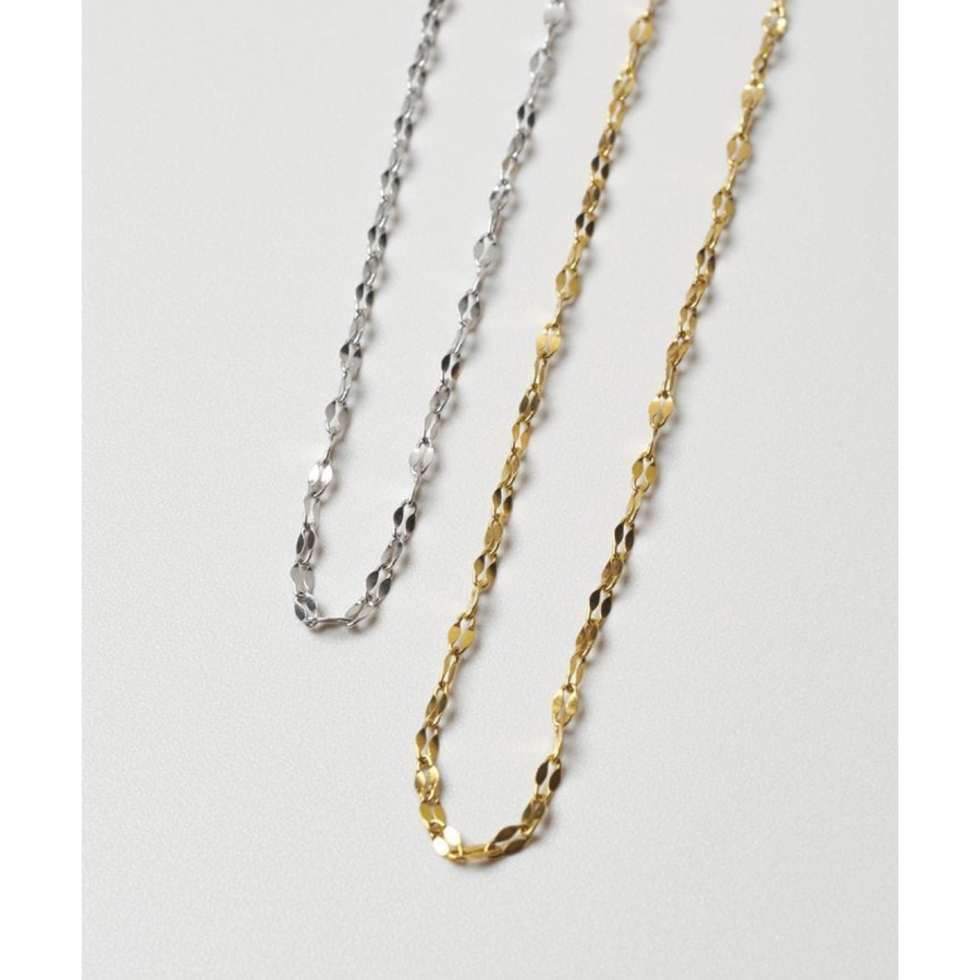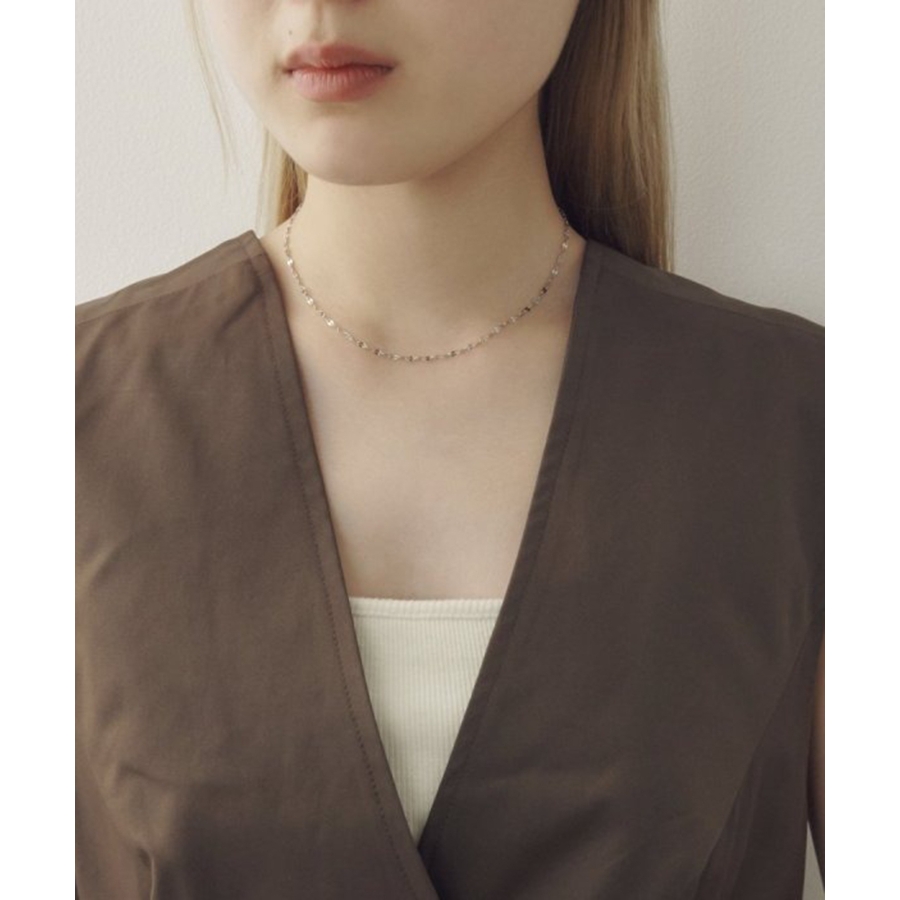 繊細に煌めくチェーンが、肌に自然に馴染みつつも存在感を演出します。
