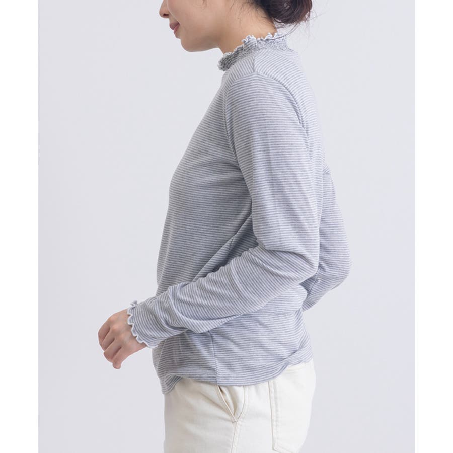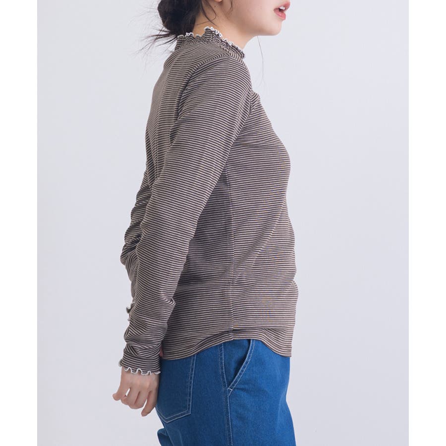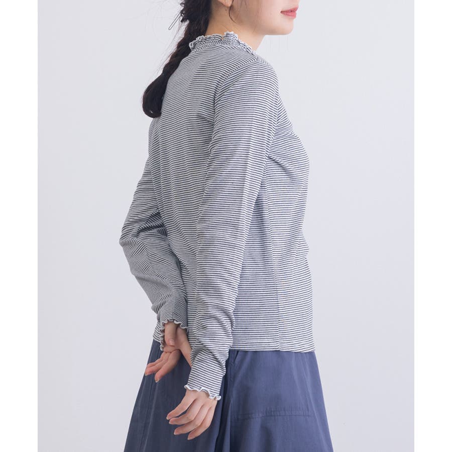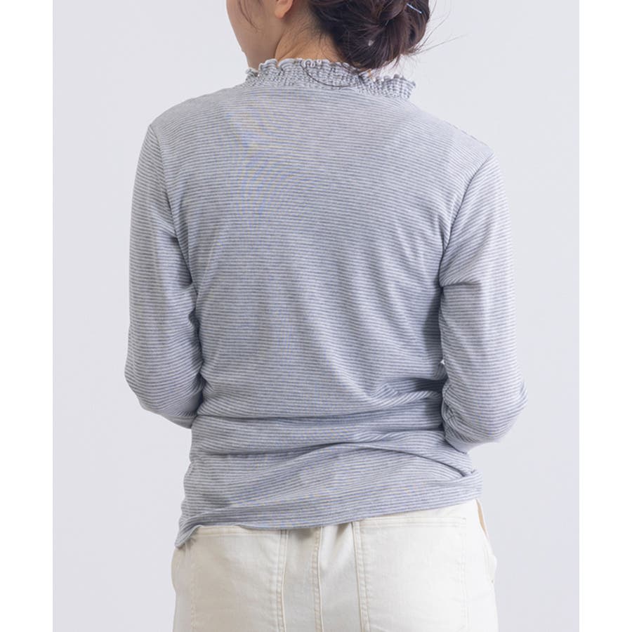 ・ジャケットやカーディガンのインナーとして着用すれば、首元のシャーリングがさりげないアクセントに。