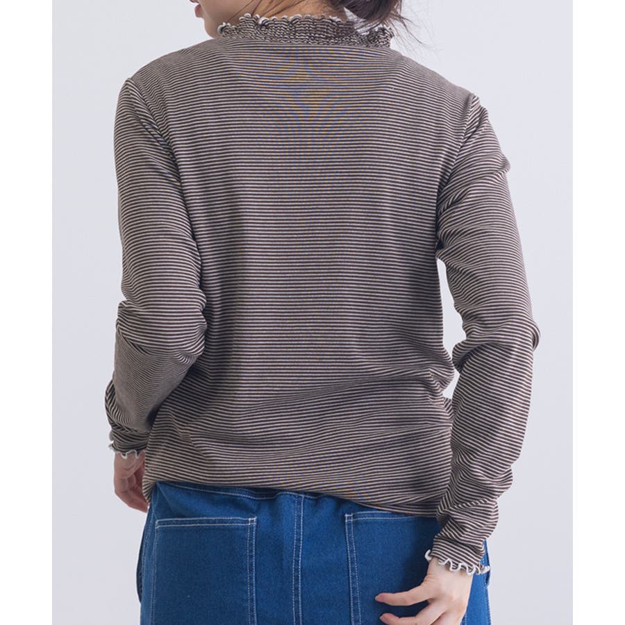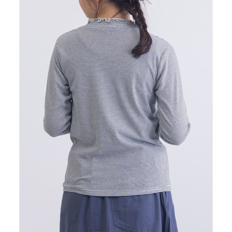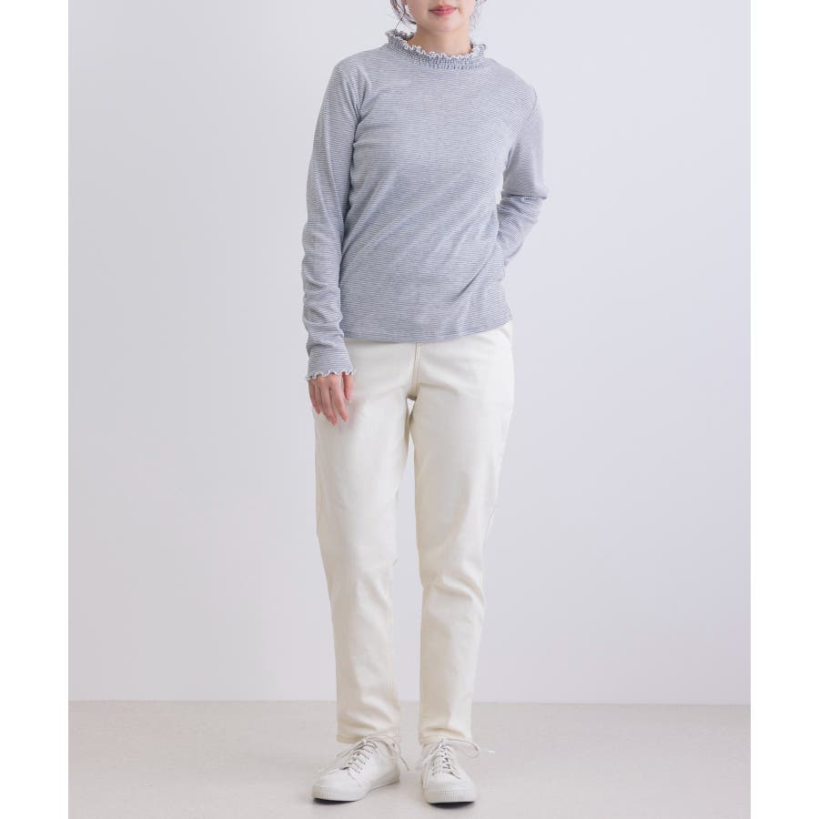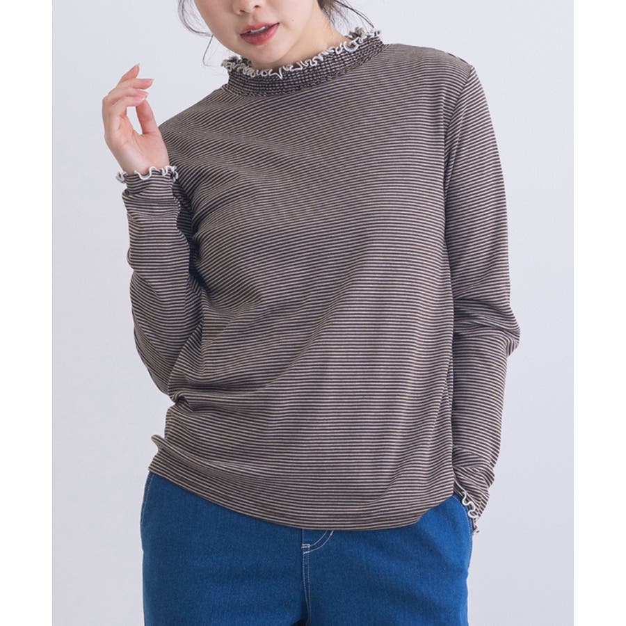 ・ジャケットやカーディガンのインナーとして着用すれば、首元のシャーリングがさりげないアクセントに。