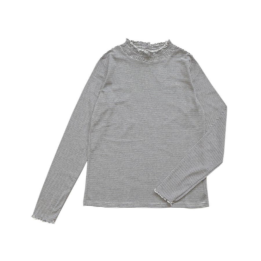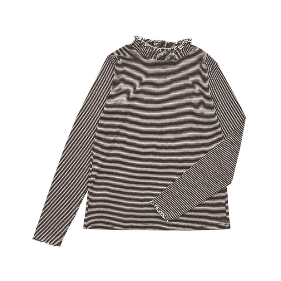 立体的なシャーリングデザインが目を惹くボーダーハイネックが登場。