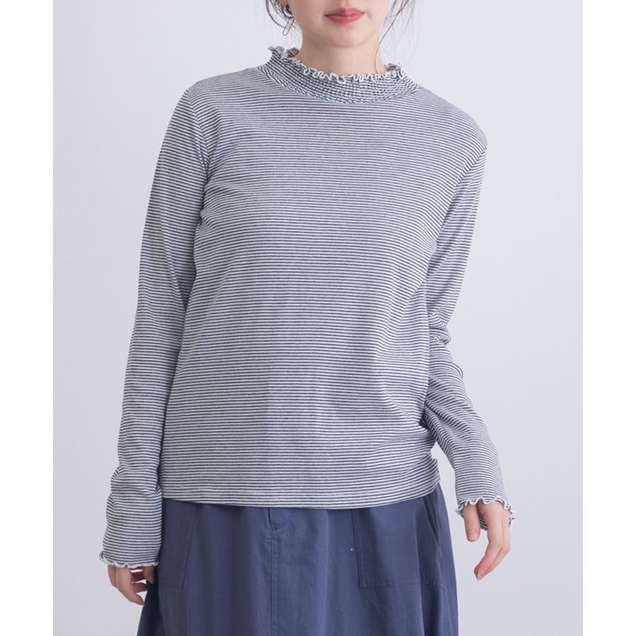 伸縮性抜群のボーダーハイネック