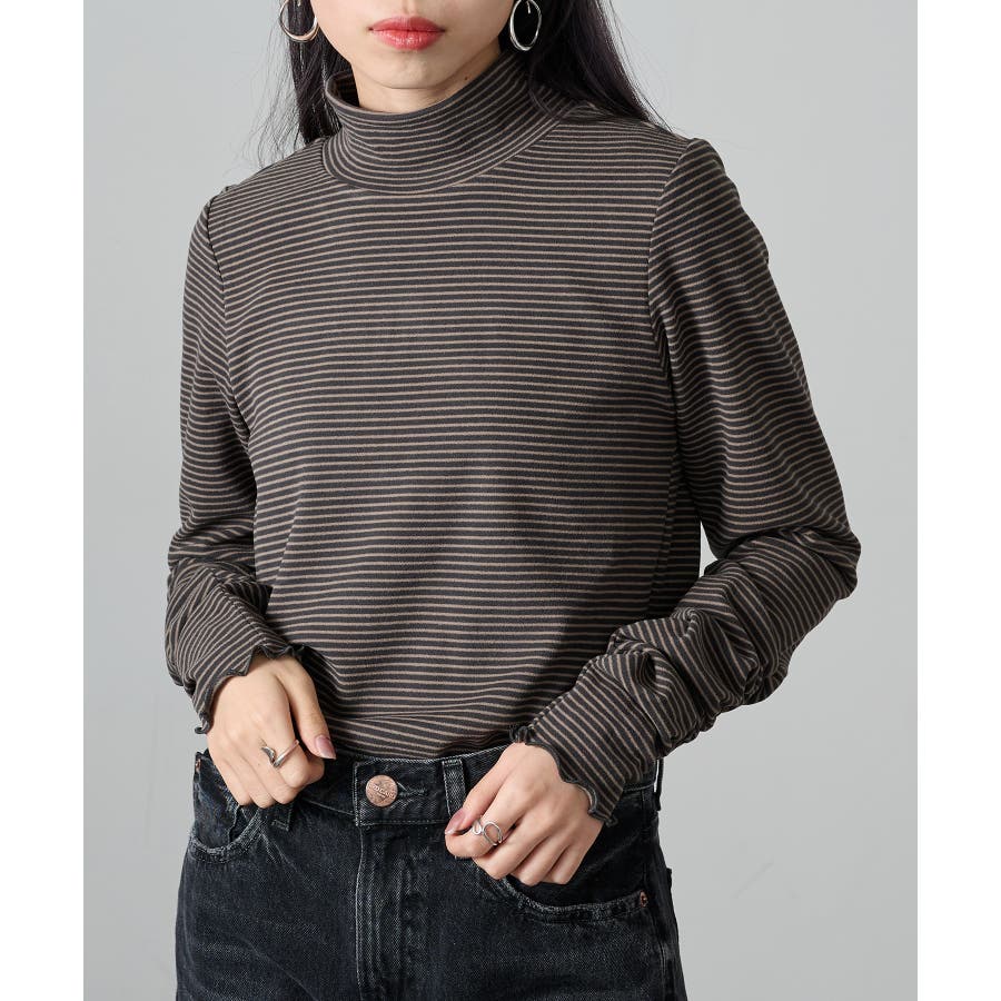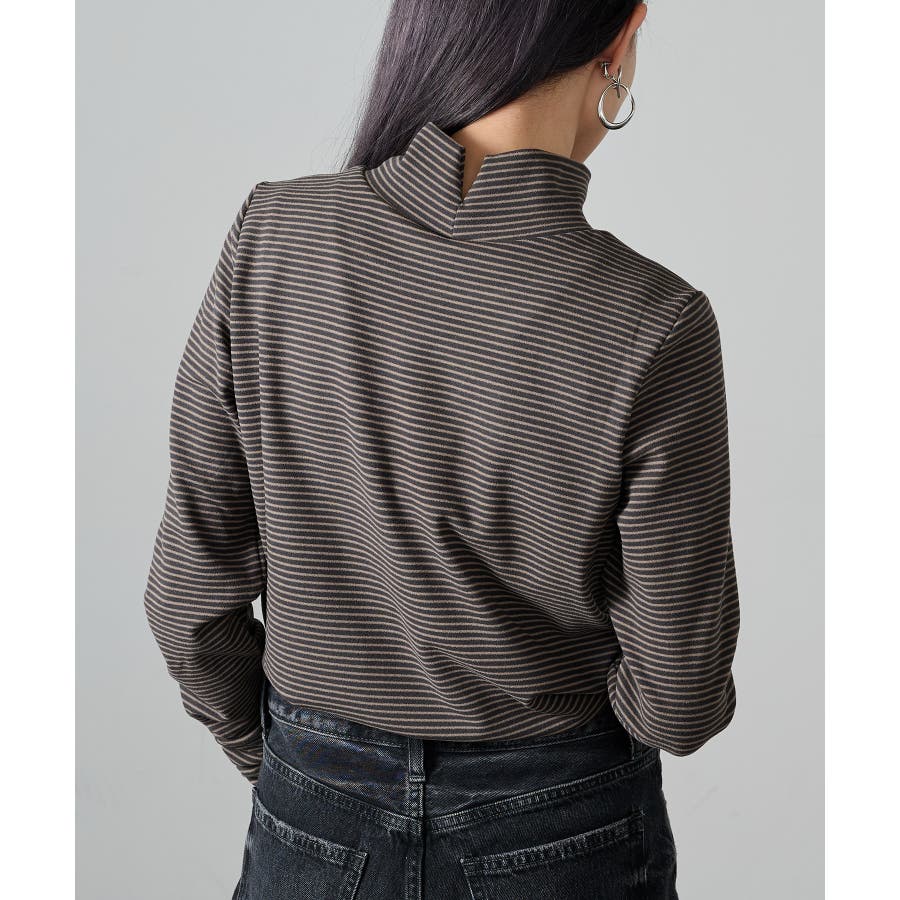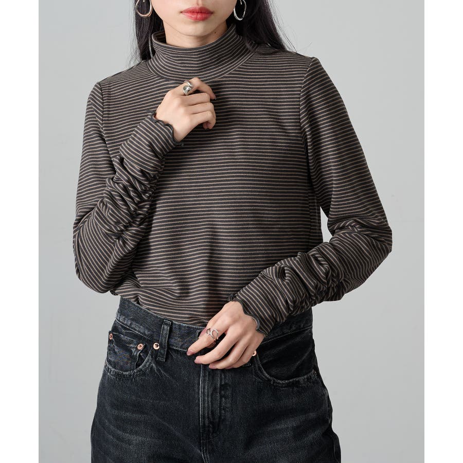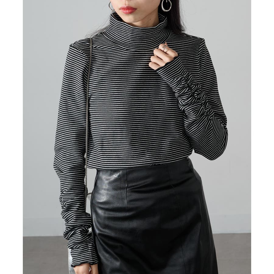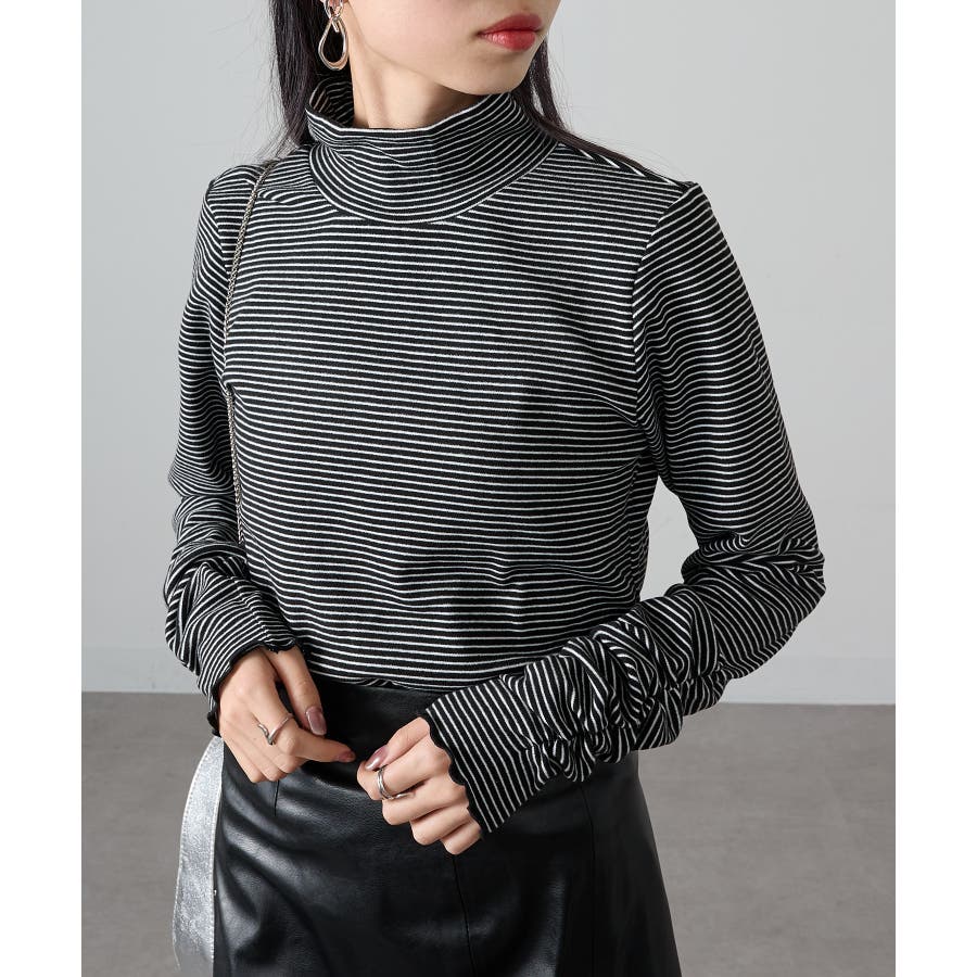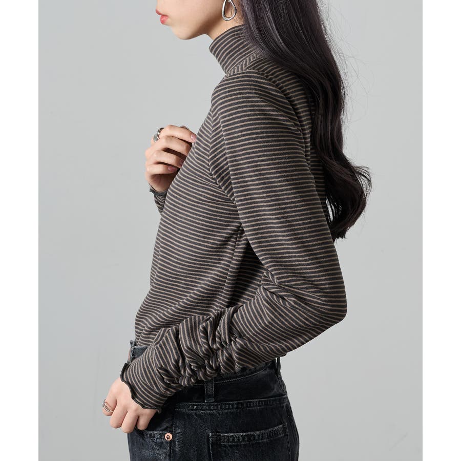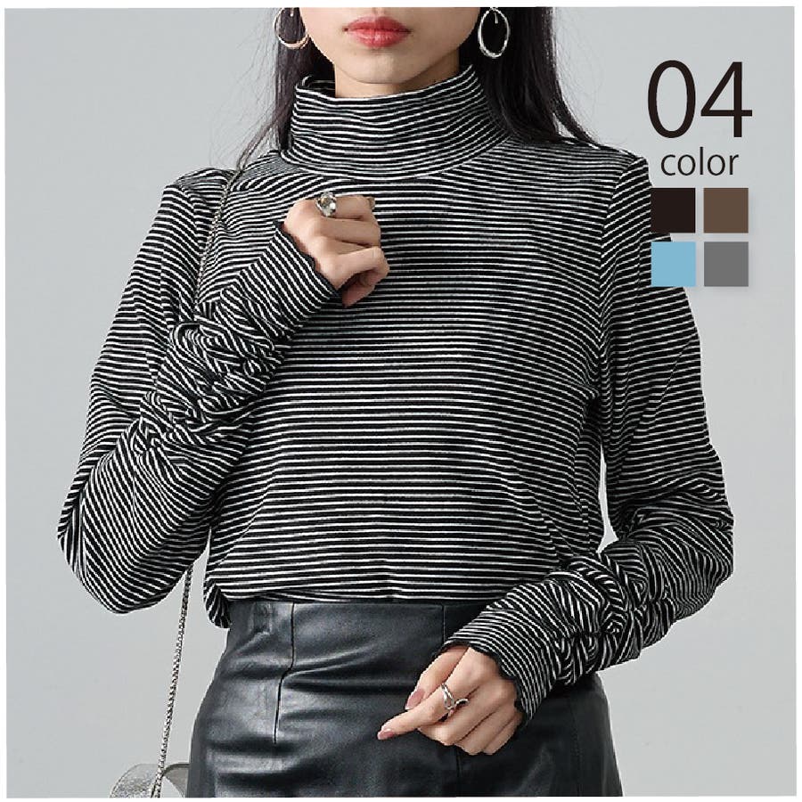 秋冬の定番として人気の高い、ボーダー柄のタートルネックトップスです。