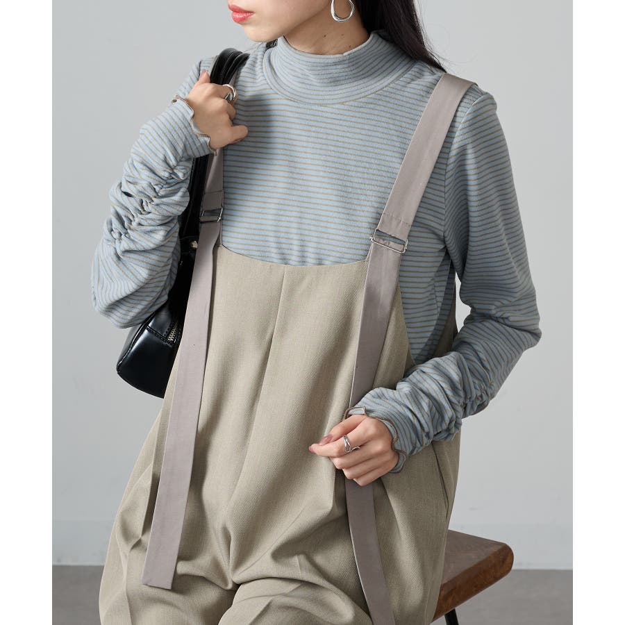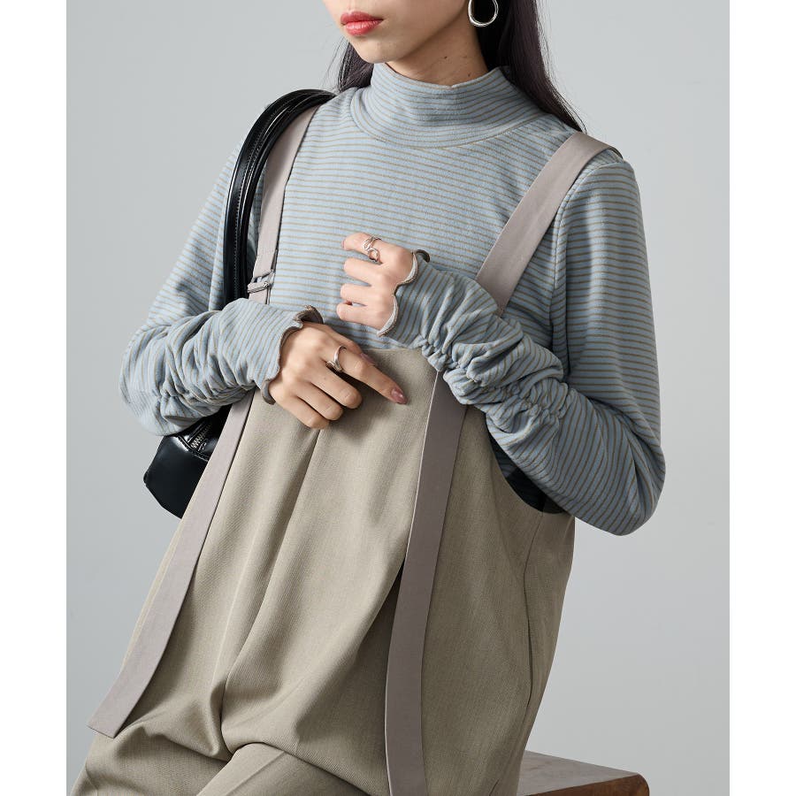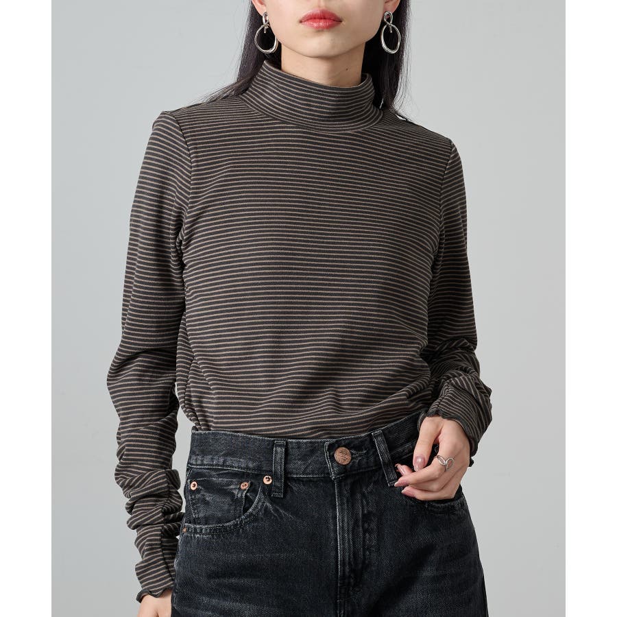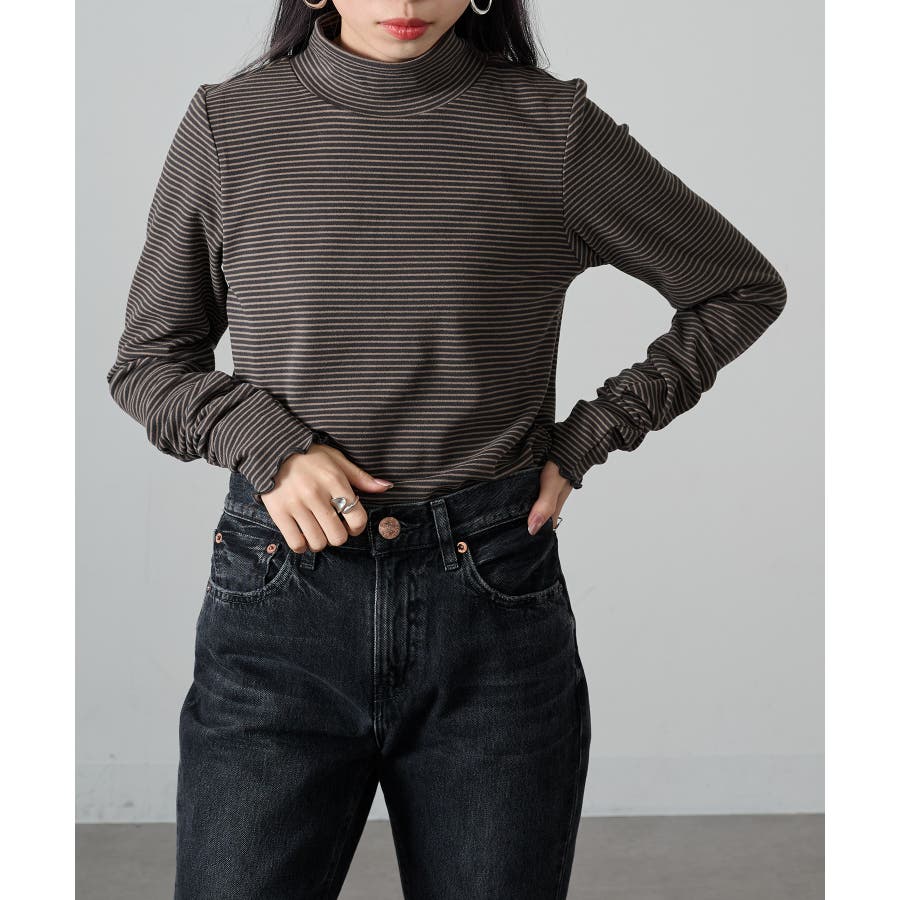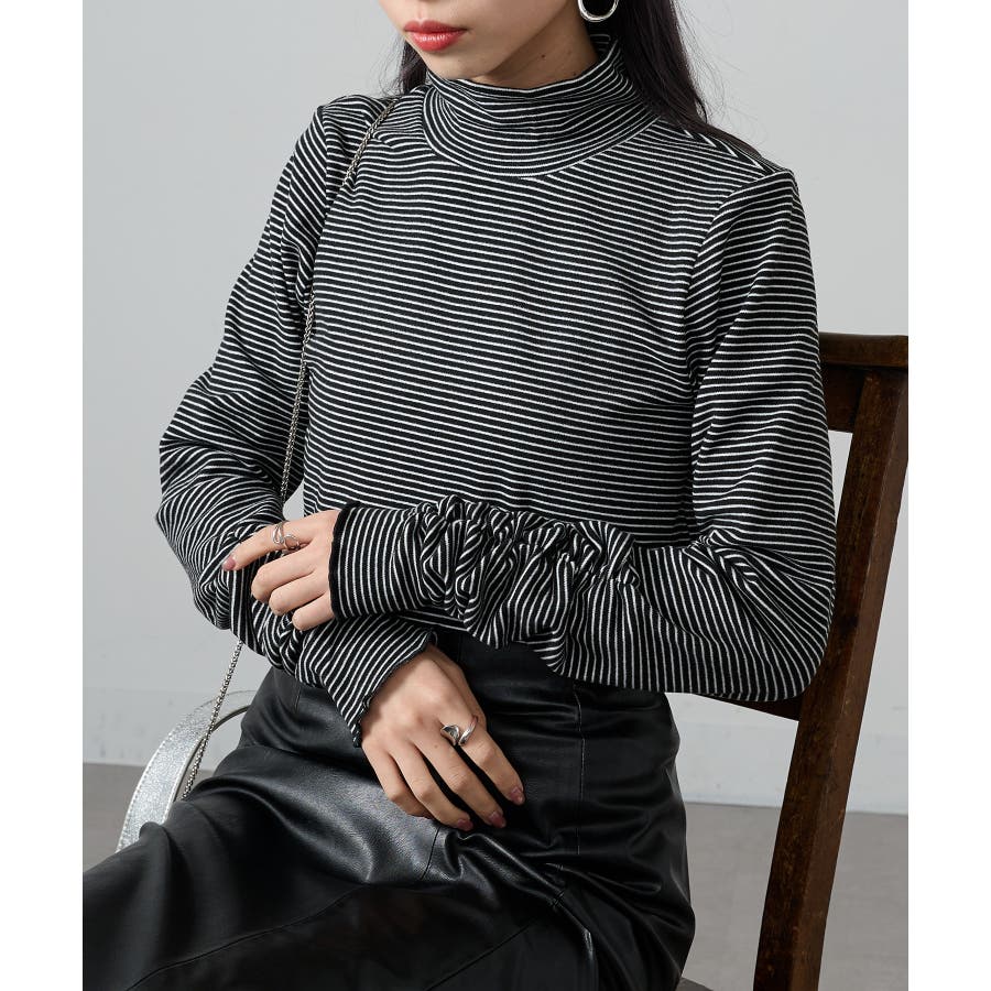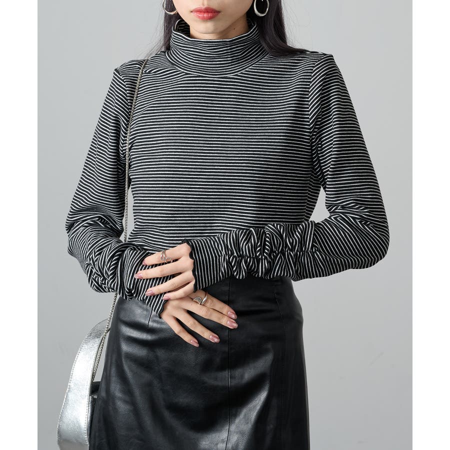 秋冬の定番として人気の高い、ボーダー柄のタートルネックトップスです。