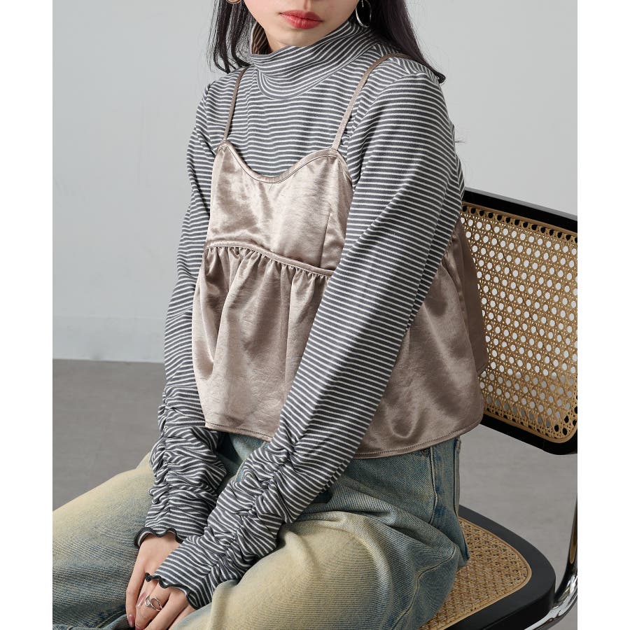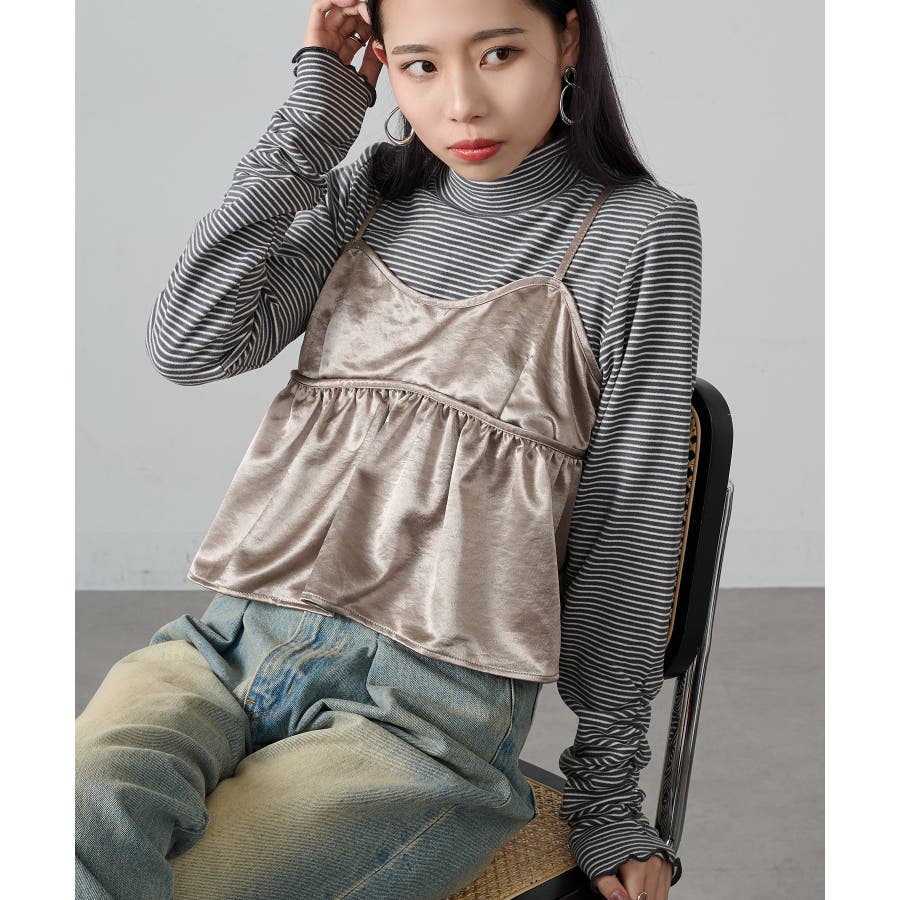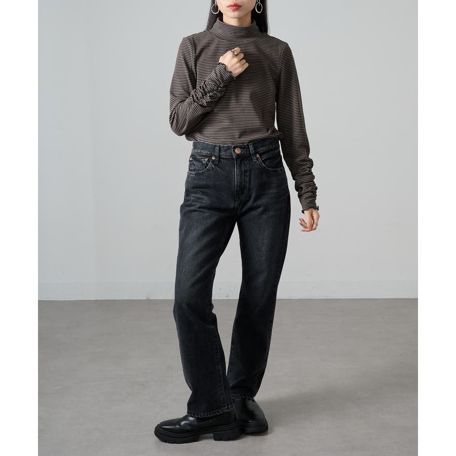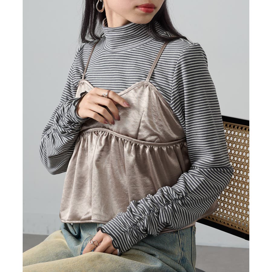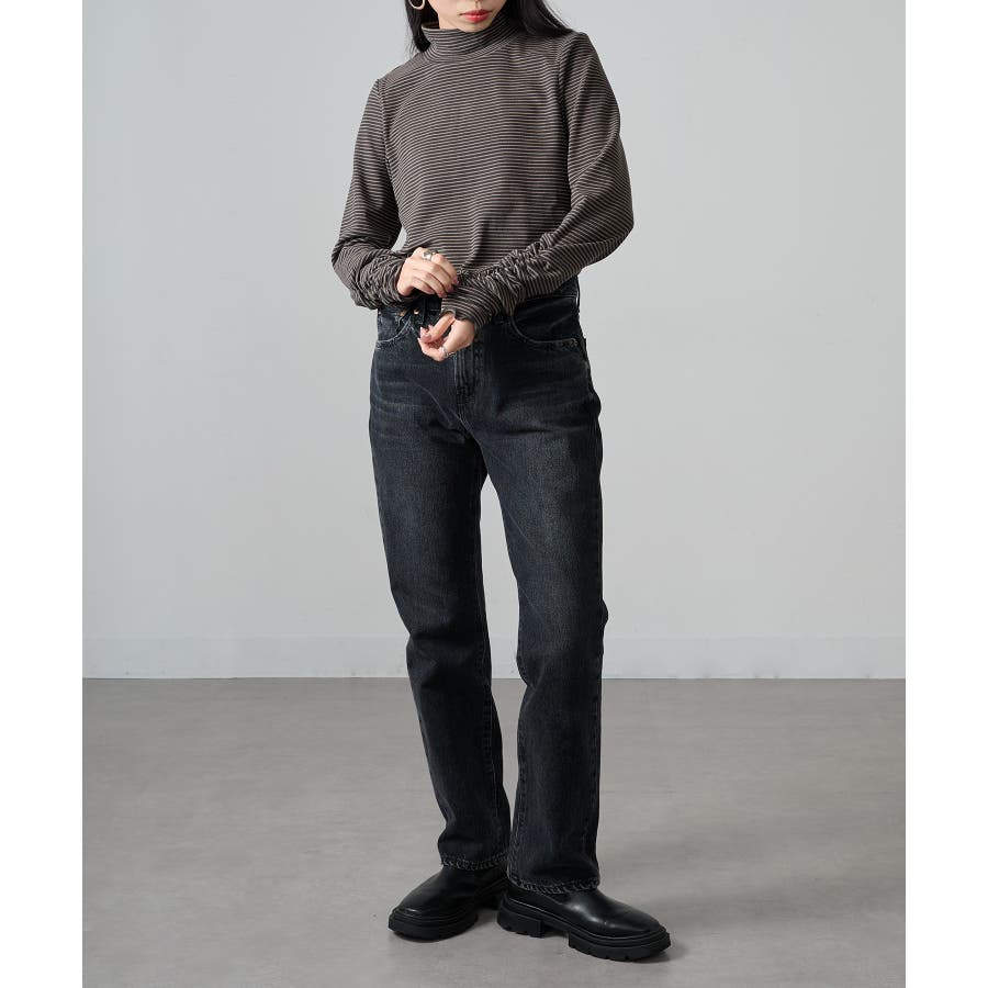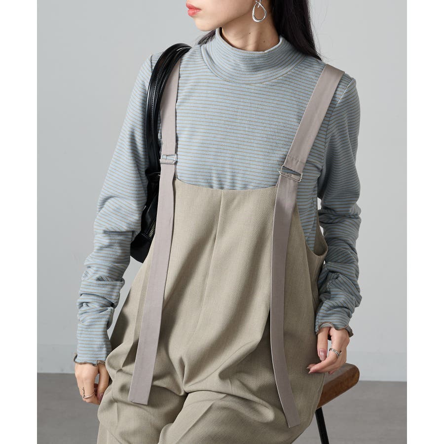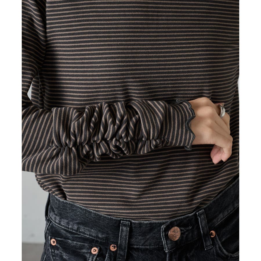 秋冬の定番として人気の高い、ボーダー柄のタートルネックトップスです。