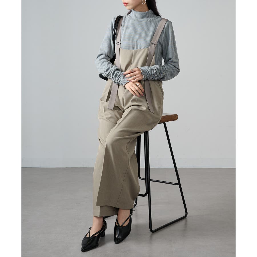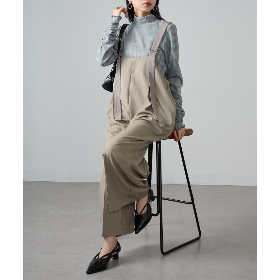 ・ワントーンコーデやシンプルなニット、スウェットのインナーとして、ボーダー柄とネックを覗かせるレイヤードスタイルに。