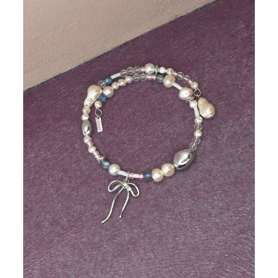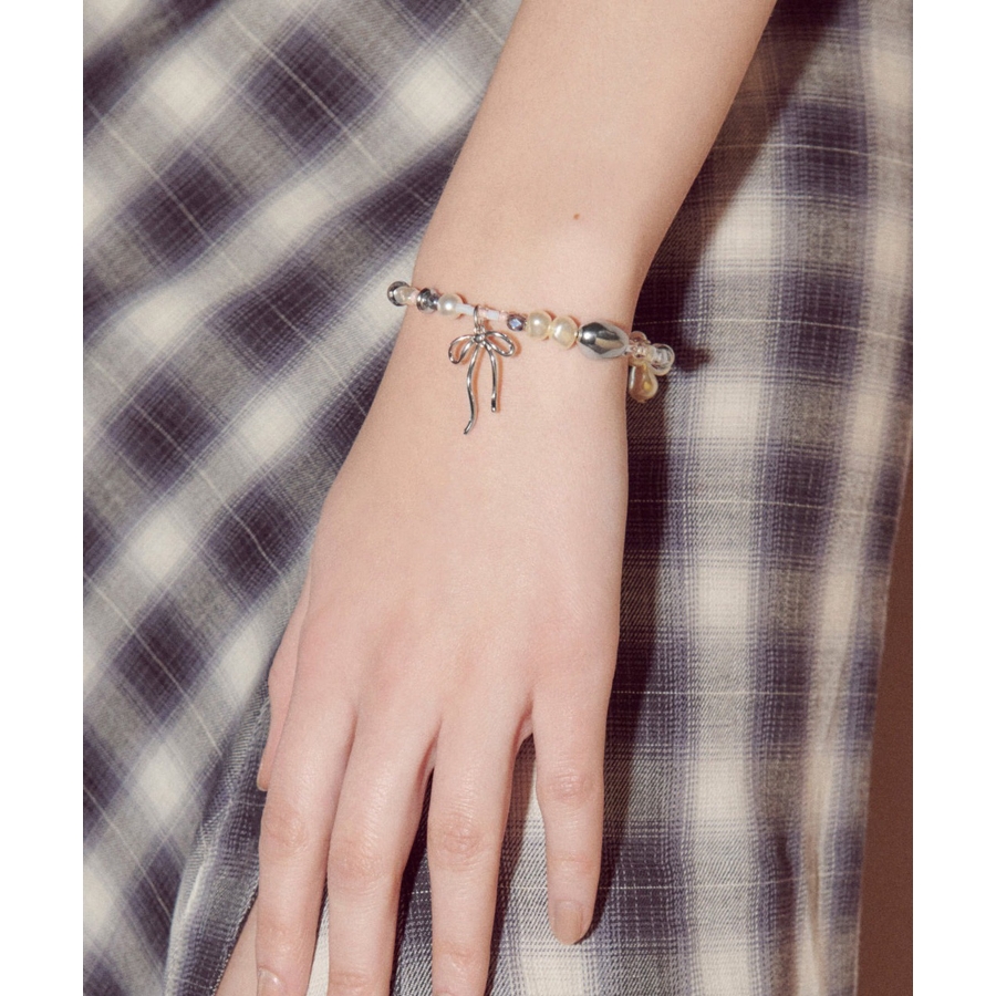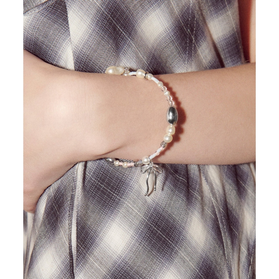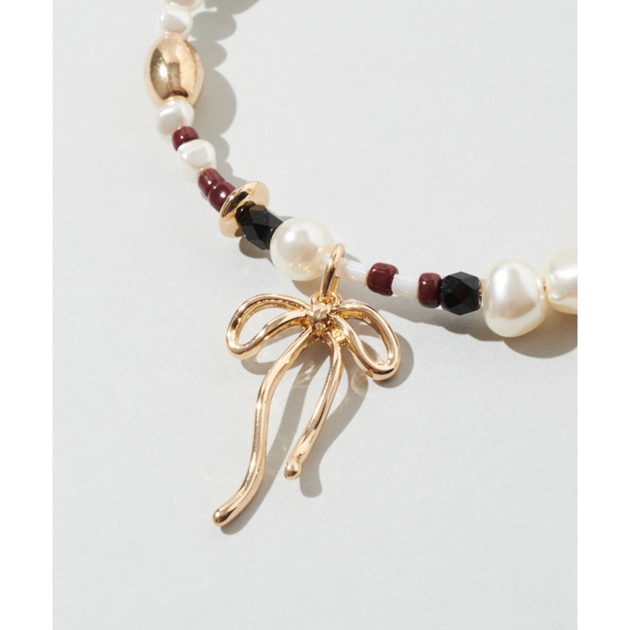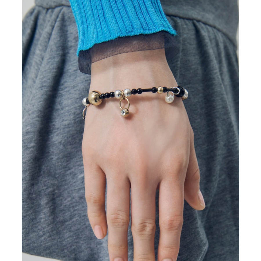 パールやビーズをあしらったバングルに、さまざまなモチーフのチャームを組み合わせたデザイン。