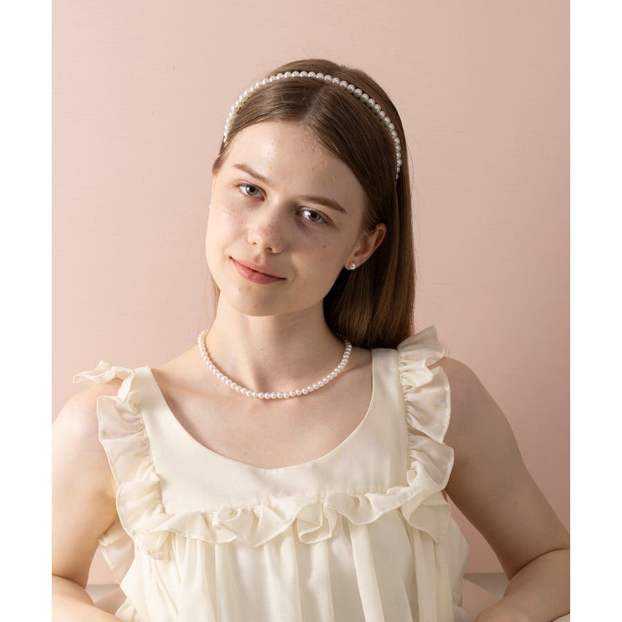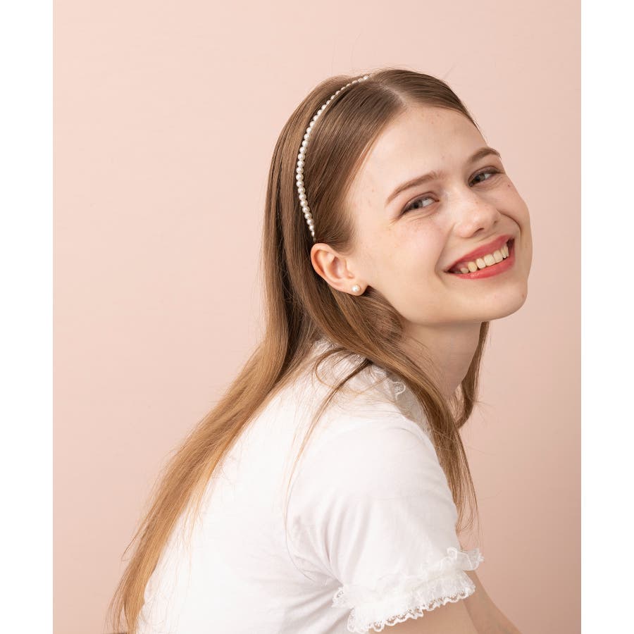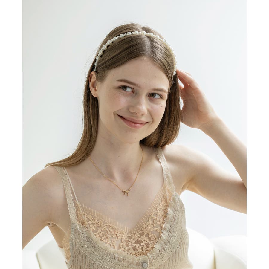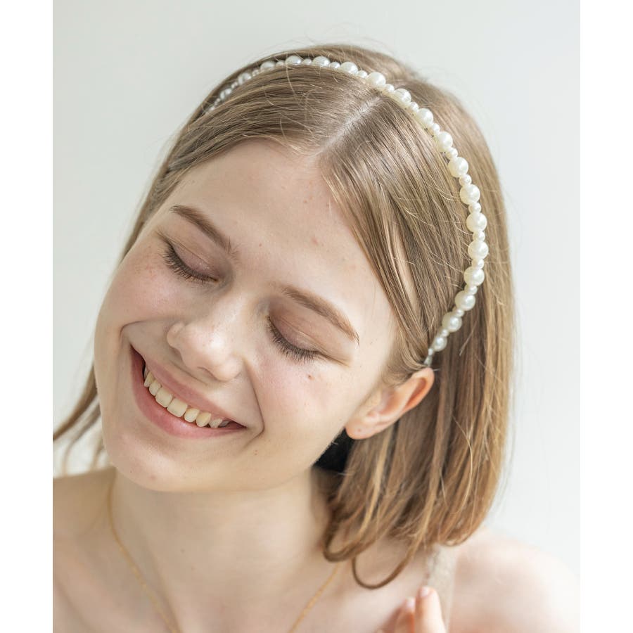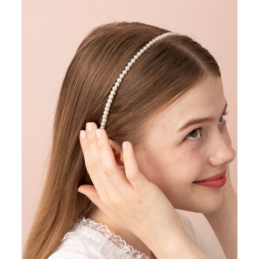 パールをあしらったカチューシャがヘアスタイルを華やかに演出