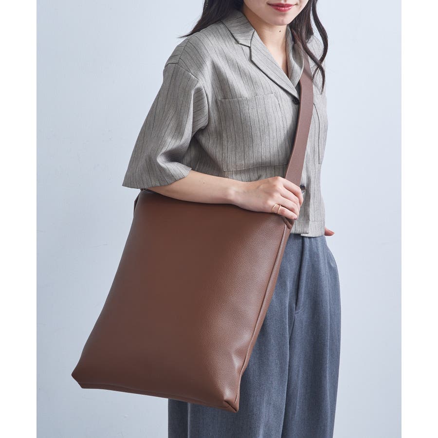 端正なスクエアフォルムが目を惹くトートバッグ。